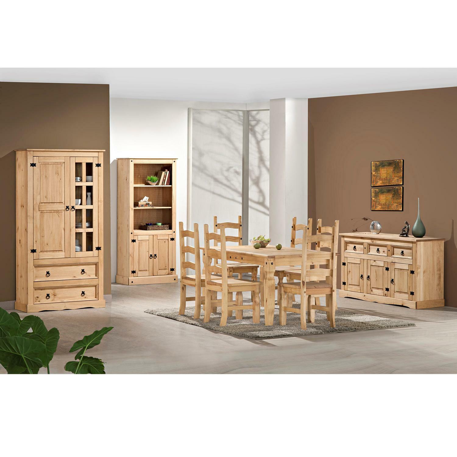 materiál masiv borovice voskovaná v medovém odstínu 3 malé zásuvky, 3 dvířka, 1 police, kovové ozdobné úchytky vhodný doplněk nástavec CORONA 16465 součást sestavy Corona