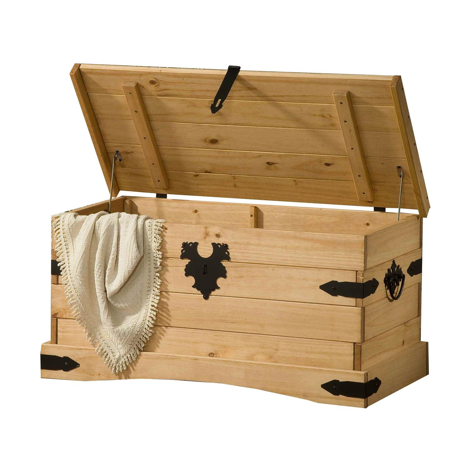 materiál masiv borovice voskovaná v medovém odstínu kovové ozdobné úchytky a petlice součást sestavy Corona