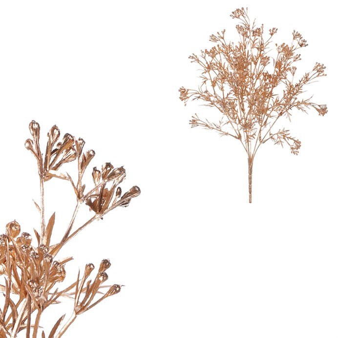 Nechť je pro vás skvělou inspirací k vysněné vánoční výzdobě umělá kvetoucí travina v matném zlatém dekoru, jenž se hodí právě pro toto kouzelné období. Vysoce realistická kopie živé rostliny nabízí trvalou krásu bez potřeby jakékoli údržby. S možností opakovaného použití bez rizika uvadnutí získáte úžasnou trvalou výzdobu, kterou můžete používat tak dlouho, dokud vy sami budete chtít. Umělou travinu můžete snadno kombinovat s dalšími ozdobami, případně jinými barevnými variantami, což vám otevírá bezpočet kreativních možností při aranžování vánoční dekorace. Její elegantní tvar a unikátní barevné provedení se snoubí v dokonalou harmonii, vytvářející neopakovatelnou ozdobu pro vaše sváteční prostředí.