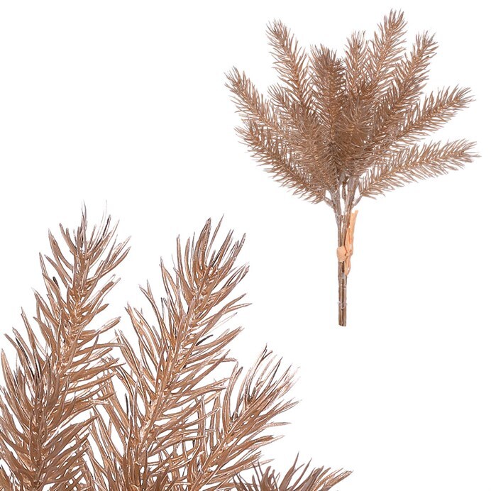 Plánujete oživit vaši sbírku vánočních ozdob o jednoduchý dekorační prvek, se kterým bude tvoření vysněné sváteční výzdoby hračkou? Pak u vás nesmí chybět právě tato umělá smrková větvička v měděné barvě. Jako dekorace díky svému univerzálnímu použití se hodí pro výzdobu místa, dle vaší volby a nabízí nejrůznější variace výzdoby podle fantazie a schopností. Tento produkt je svým vzhledem věrnou kopií a přináší na místo prvek přírodní krásy, ale současně nikdy neuvadne a zůstane stále jako čerstvě utržená větvička ze stromu. Nabízíme je i ve spoustě jiných barvených provedeních, takže se nabízí velké množství kombinací a inspirace pro skutečně působivou vánoční výzdobu.