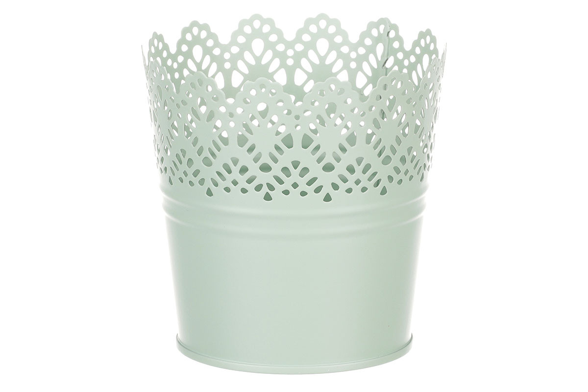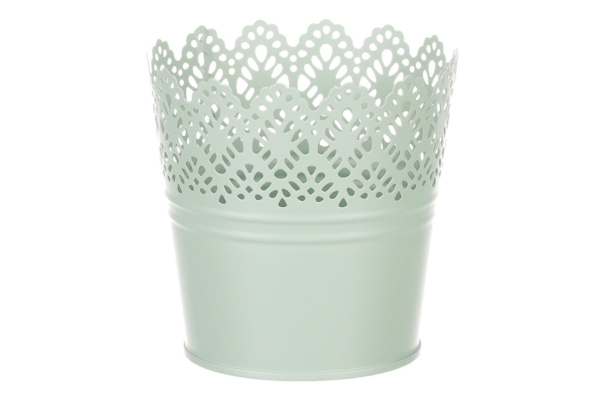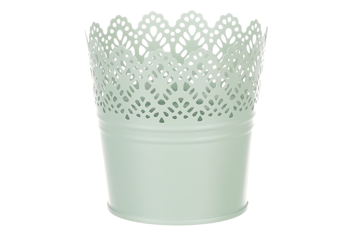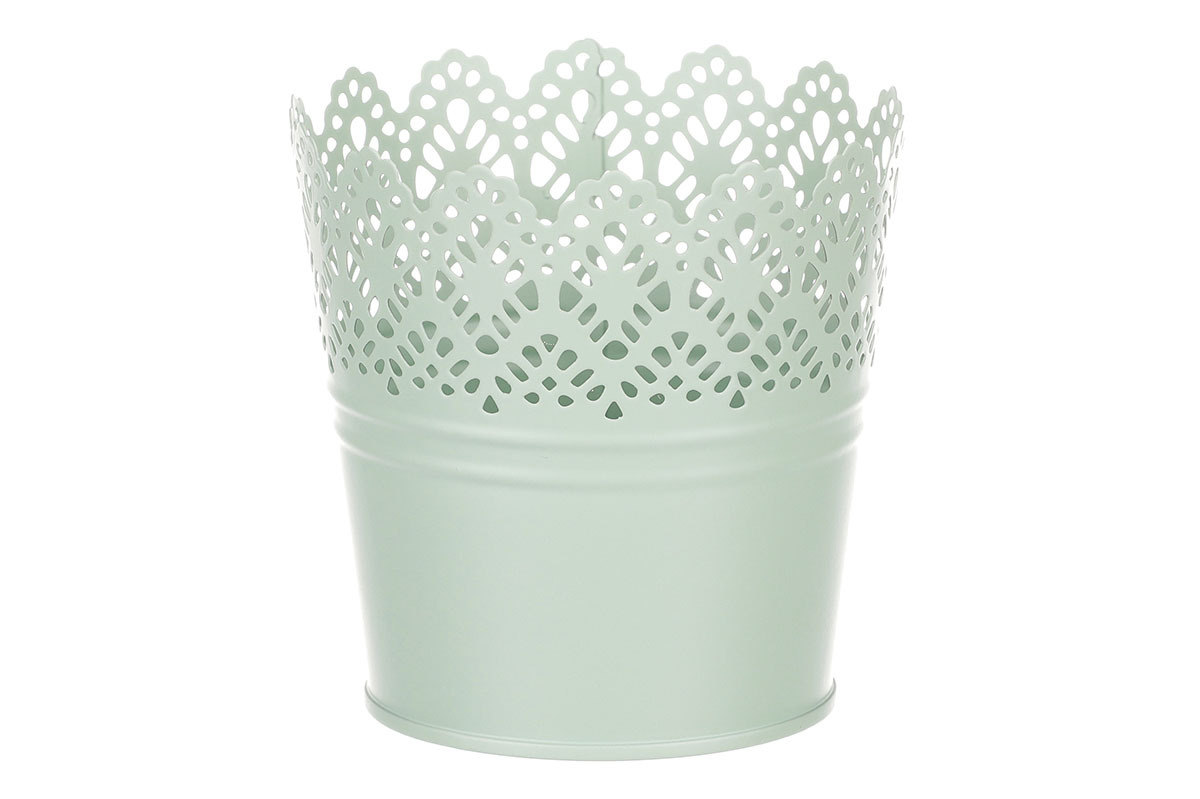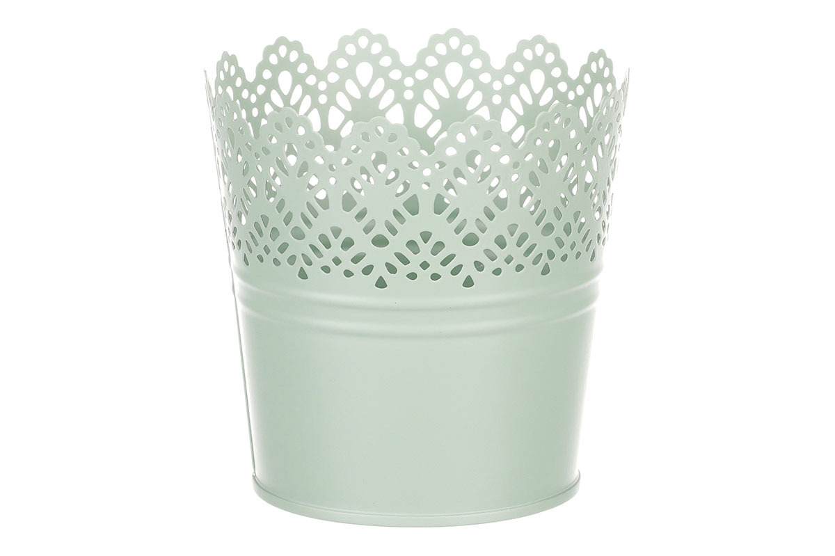 Chcete si udělat radost nevšedním vyzdobením vašeho oblíbeného prostoru květinami, a dochází vám nápady do čeho je vsadit? Zkuste sáhnout po této jedinečné dekoraci v podobě kovového obalu v zeleném dekoru s krajkovým okrajem a nebudete litovat. Díky svému tvaru a vzhledu se tento kovový obal stane okouzlujícím doplňkem pro vaše květiny. Kombinace krásných rostlin zasazených do takto zdobené a tvarované dekorace spolu vytvoří jedinečnou kompozici. Při pohledu na tuto vámi vytvořenou krásu budete na sebe hrdí a mít skvělý pocit z dobře odvedené práce. Přineste si do svého domova prvek originality s tímto nevšedním kovovým obalem na květiny, který okouzlí každého obdivovatele rostlin a skvěle oživí váš prostor.