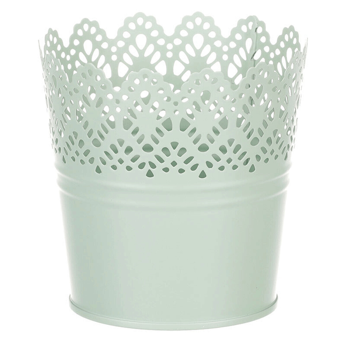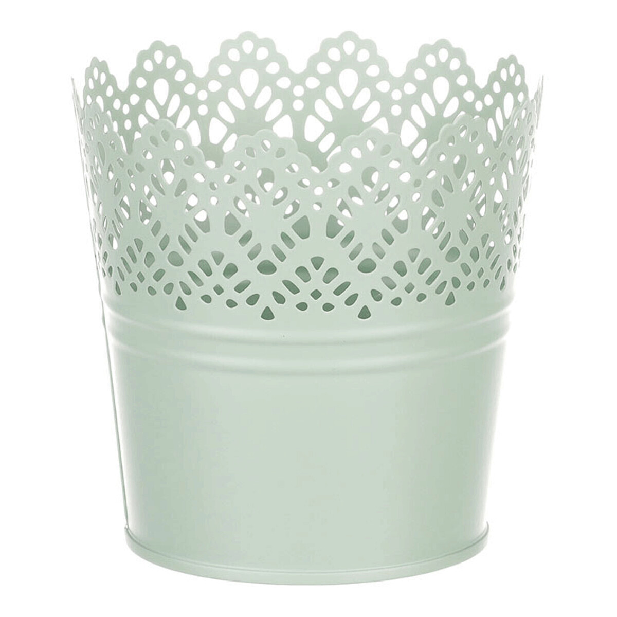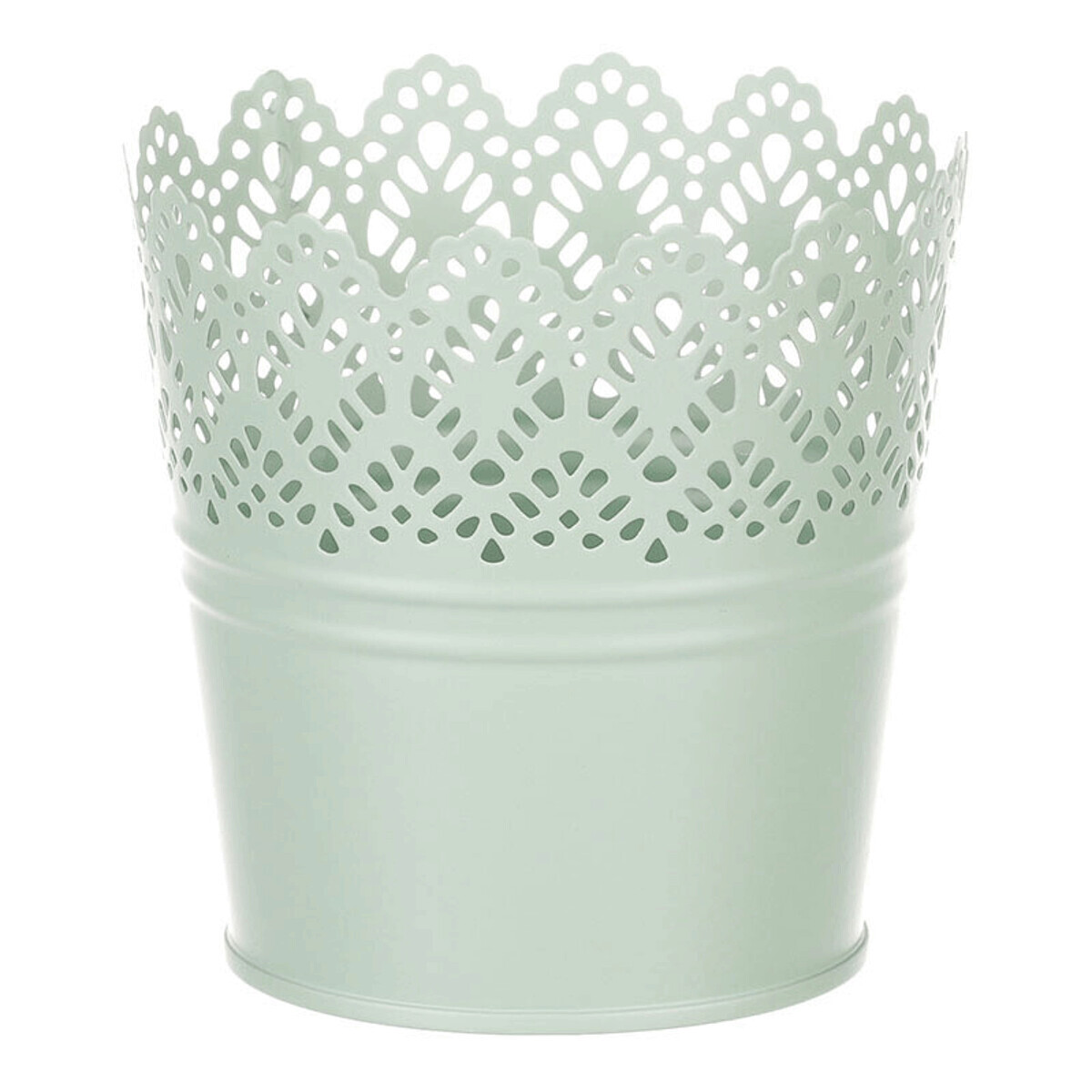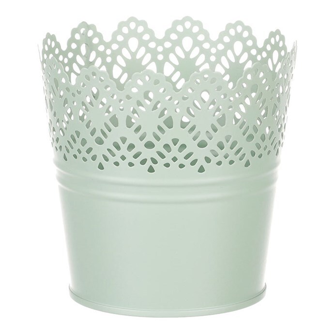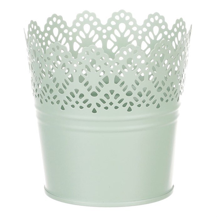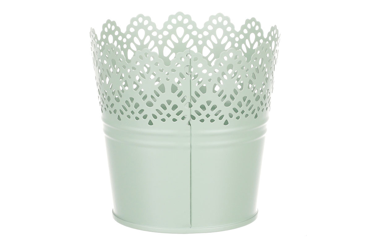 Chcete si udělat radost nevšedním vyzdobením vašeho oblíbeného prostoru květinami, a dochází vám nápady do čeho je vsadit? Zkuste sáhnout po této jedinečné dekoraci v podobě kovového obalu v zeleném dekoru s krajkovým okrajem a nebudete litovat. Díky svému tvaru a vzhledu se tento kovový obal stane okouzlujícím doplňkem pro vaše květiny. Kombinace krásných rostlin zasazených do takto zdobené a tvarované dekorace spolu vytvoří jedinečnou kompozici. Při pohledu na tuto vámi vytvořenou krásu budete na sebe hrdí a mít skvělý pocit z dobře odvedené práce. Přineste si do svého domova prvek originality s tímto nevšedním kovovým obalem na květiny, který okouzlí každého obdivovatele rostlin a skvěle oživí váš prostor.