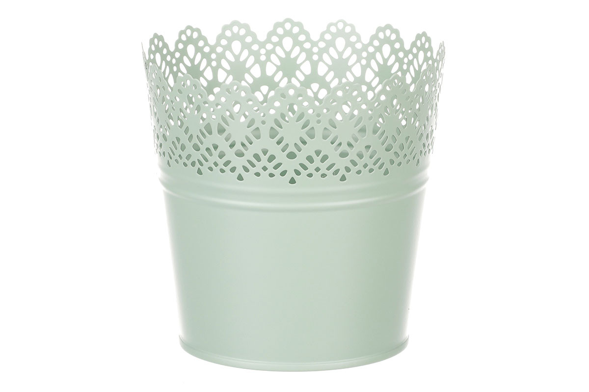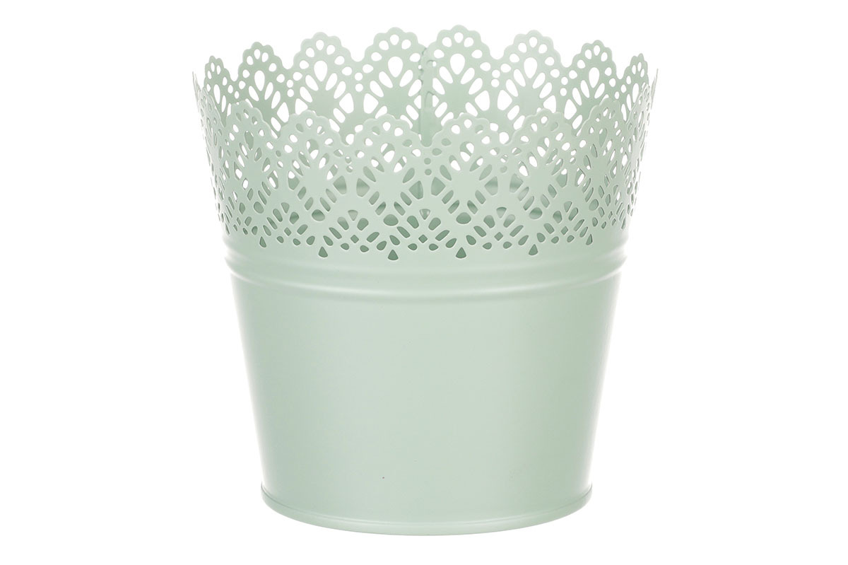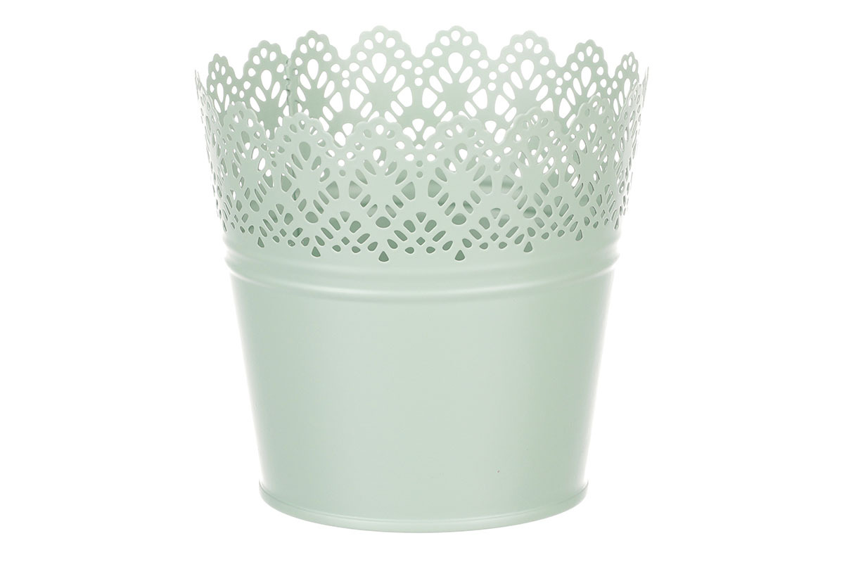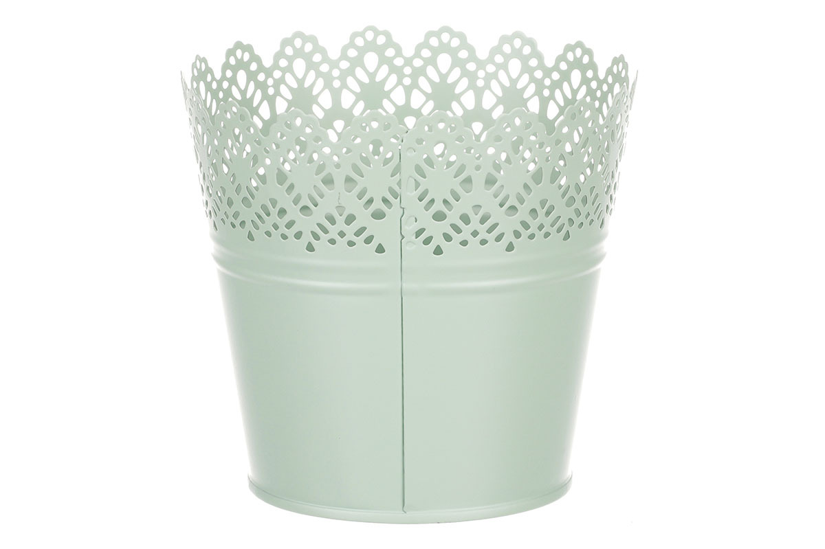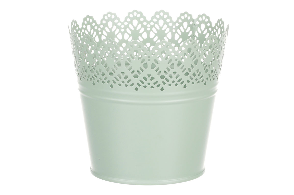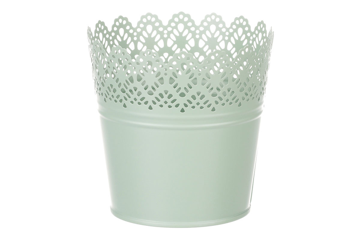 Chcete si udělat radost nevšedním vyzdobením vašeho oblíbeného prostoru květinami, a dochází vám nápady do čeho je vsadit? Zkuste sáhnout po této jedinečné dekoraci v podobě kovového obalu v zeleném dekoru s krajkovým okrajem a nebudete litovat. Díky svému tvaru a vzhledu se tento kovový obal stane okouzlujícím doplňkem pro vaše květiny. Kombinace krásných rostlin zasazených do takto zdobené a tvarované dekorace spolu vytvoří jedinečnou kompozici. Při pohledu na tuto vámi vytvořenou krásu budete na sebe hrdí a mít skvělý pocit z dobře odvedené práce. Přineste si do svého domova prvek originality s tímto nevšedním kovovým obalem na květiny, který okouzlí každého obdivovatele rostlin a skvěle oživí váš prostor.