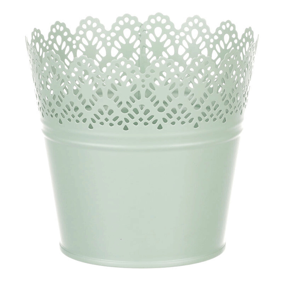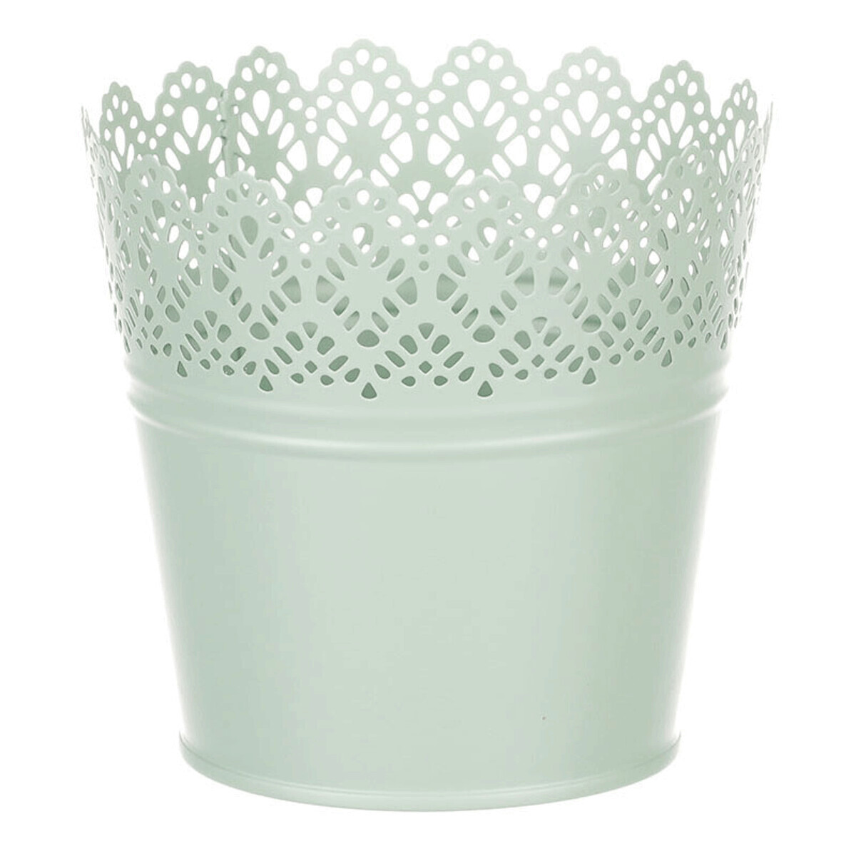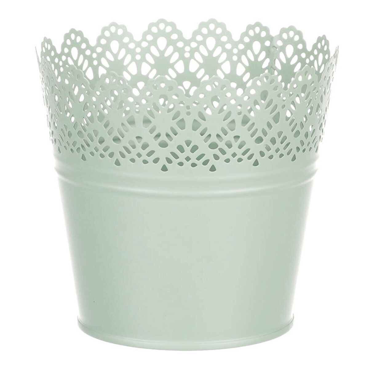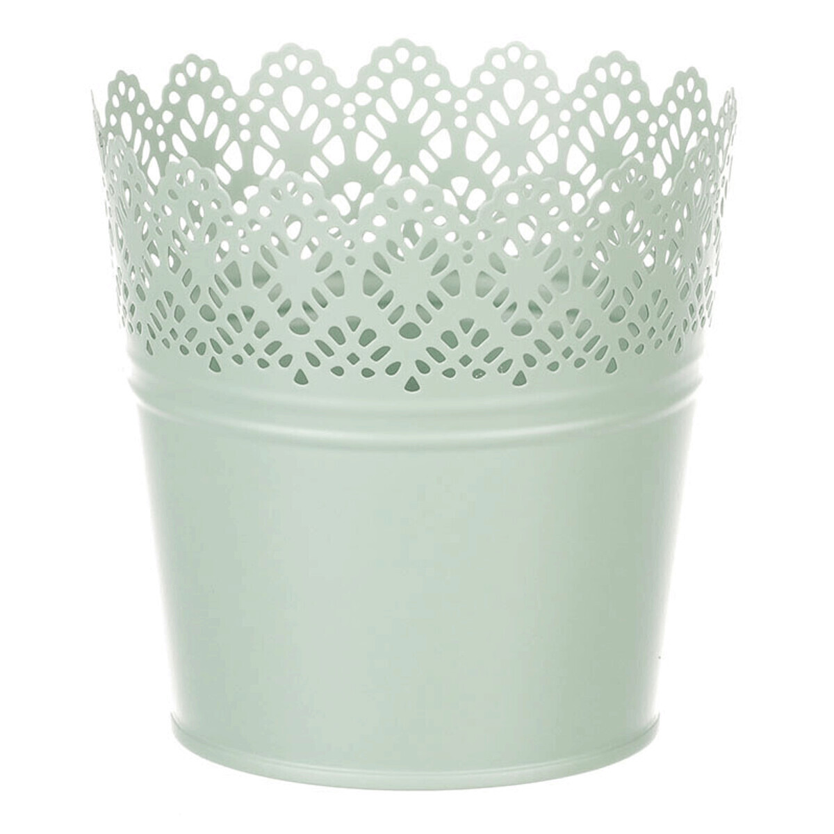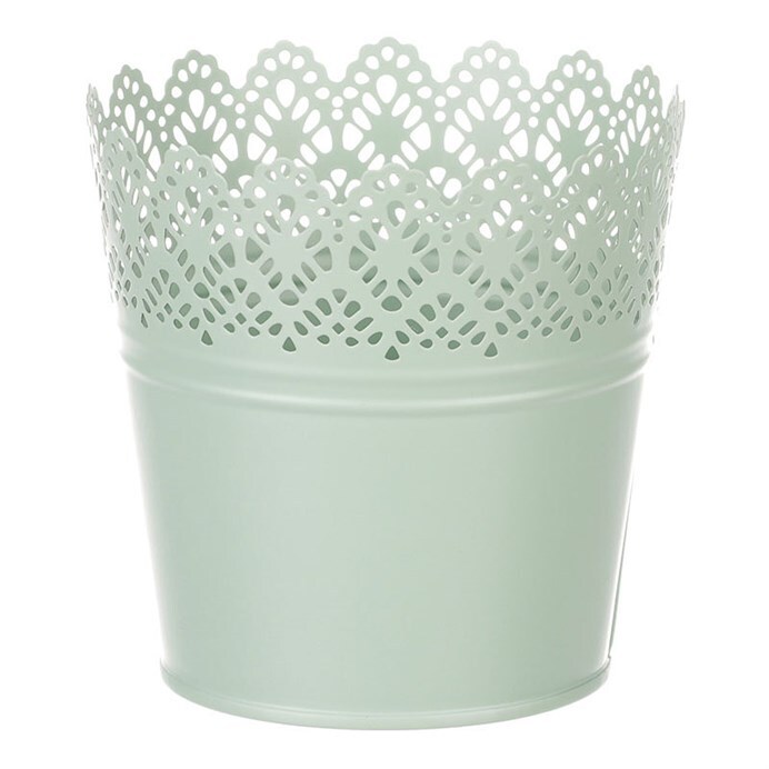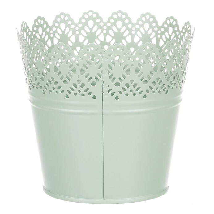 Chcete si udělat radost nevšedním vyzdobením vašeho oblíbeného prostoru květinami, a dochází vám nápady do čeho je vsadit? Zkuste sáhnout po této jedinečné dekoraci v podobě kovového obalu v zeleném dekoru s krajkovým okrajem a nebudete litovat. Díky svému tvaru a vzhledu se tento kovový obal stane okouzlujícím doplňkem pro vaše květiny. Kombinace krásných rostlin zasazených do takto zdobené a tvarované dekorace spolu vytvoří jedinečnou kompozici. Při pohledu na tuto vámi vytvořenou krásu budete na sebe hrdí a mít skvělý pocit z dobře odvedené práce. Přineste si do svého domova prvek originality s tímto nevšedním kovovým obalem na květiny, který okouzlí každého obdivovatele rostlin a skvěle oživí váš prostor.