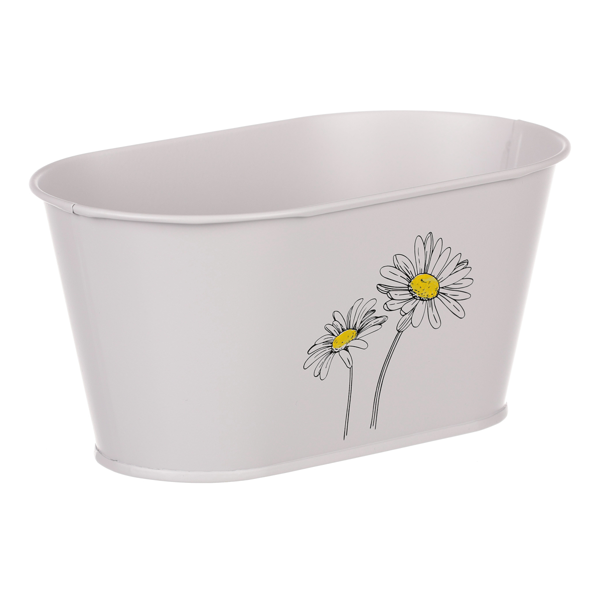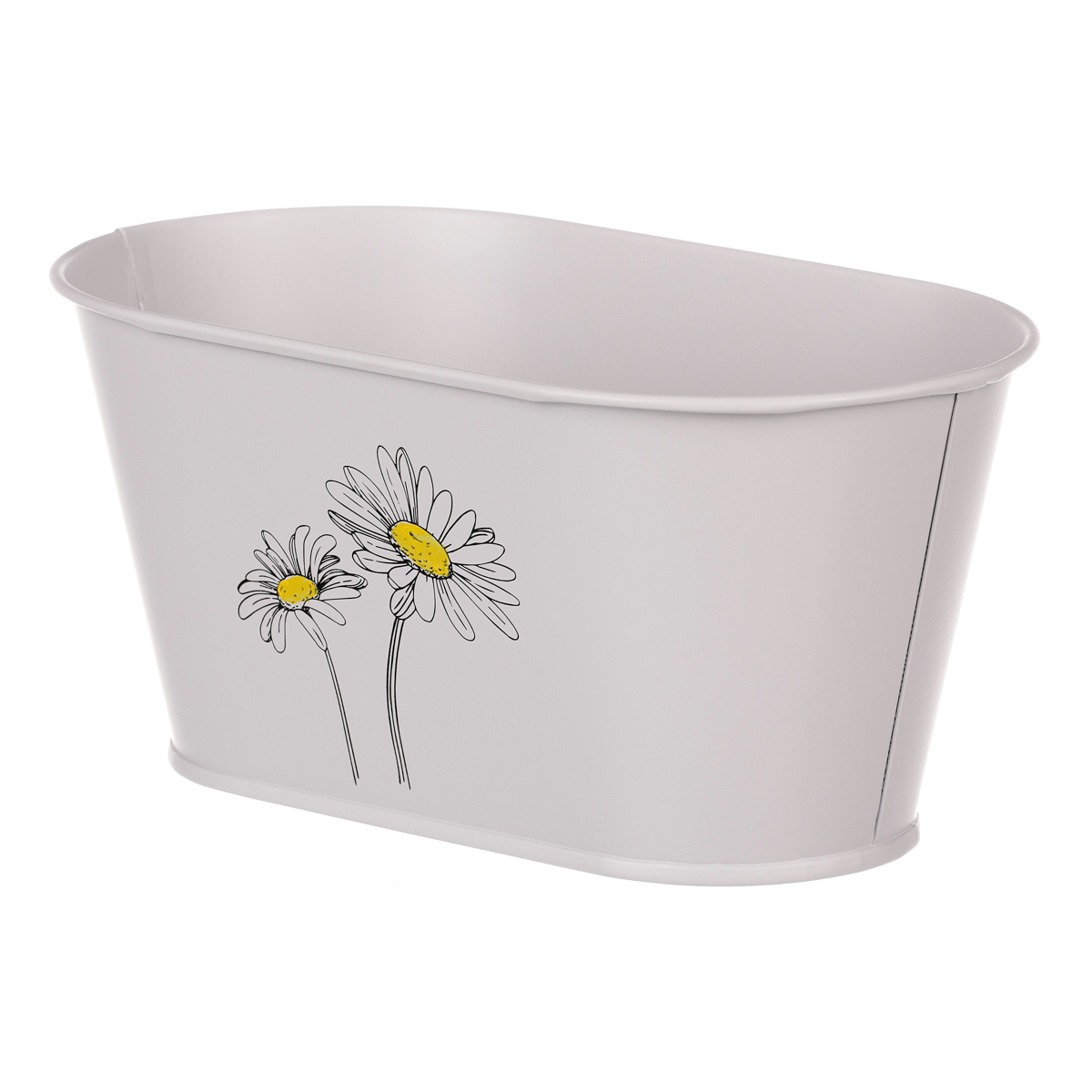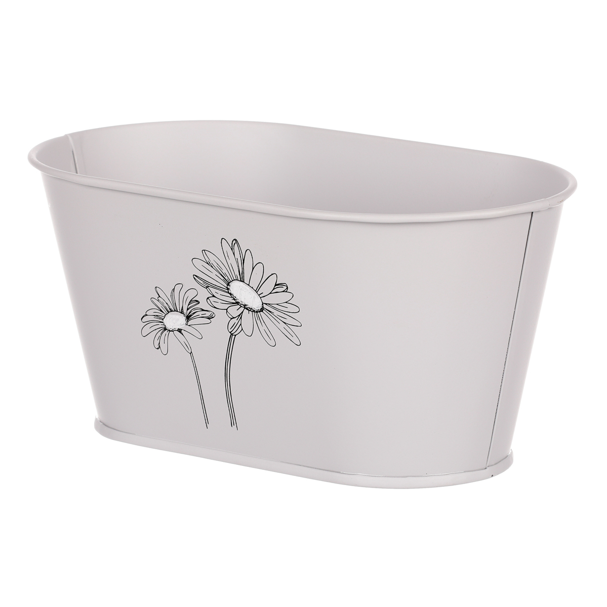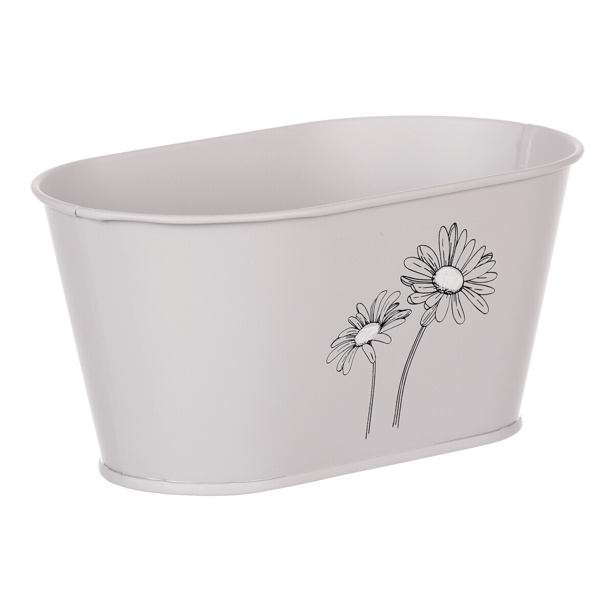 Chcete si udělat radost nevšedním vyzdobením vašeho oblíbeného prostoru květinami, a dochází vám nápady do čeho je vsadit? Zkuste sáhnout po této jedinečné dekoraci v podobě kovového truhlíku v šedém dekoru s motivem kopretin a nebudete litovat. Díky svému tvaru a vzhledu se tento kovový obal stane okouzlujícím doplňkem pro vaše květiny. Kombinace krásných rostlin zasazených do takto zdobené a tvarované dekorace spolu vytvoří jedinečnou kompozici. Při pohledu na tuto vámi vytvořenou krásu budete na sebe hrdí a mít skvělý pocit z dobře odvedené práce. Přineste si do svého domova prvek originality s tímto nevšedním kovovým obalem na květiny, který okouzlí každého obdivovatele rostlin a skvěle oživí váš prostor.