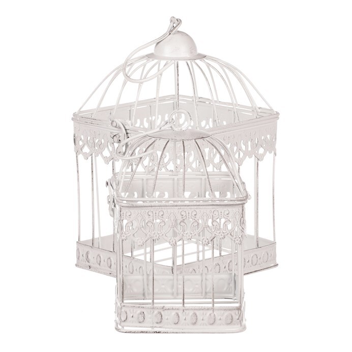 Tato bílá kovová klec je jako prázdné nepopsané plátno, které vám umožní vyjádřit svou kreativitu. S háčkem na vrcholu konstrukce ji můžete snadno pověsit na místo určení. Využijete tím ideálně volného místa v prostoru. Do klece můžete vkládat libovolné ozdobné předměty, květinové přízdoby a další dekorace. Klec má elegantní vzhled a má horní odklopnou část, která usnadňuje vkládání ozdobných věcí. Je k dispozici v sadě dvou různých velikostí. Může ozdobit váš interiér po celý rok a přinést do něj unikátní stylovou dekoraci. Mimo to je vhodná i pro venkovní prostory, jako jsou altánky, pergoly a další zastřešená místa.