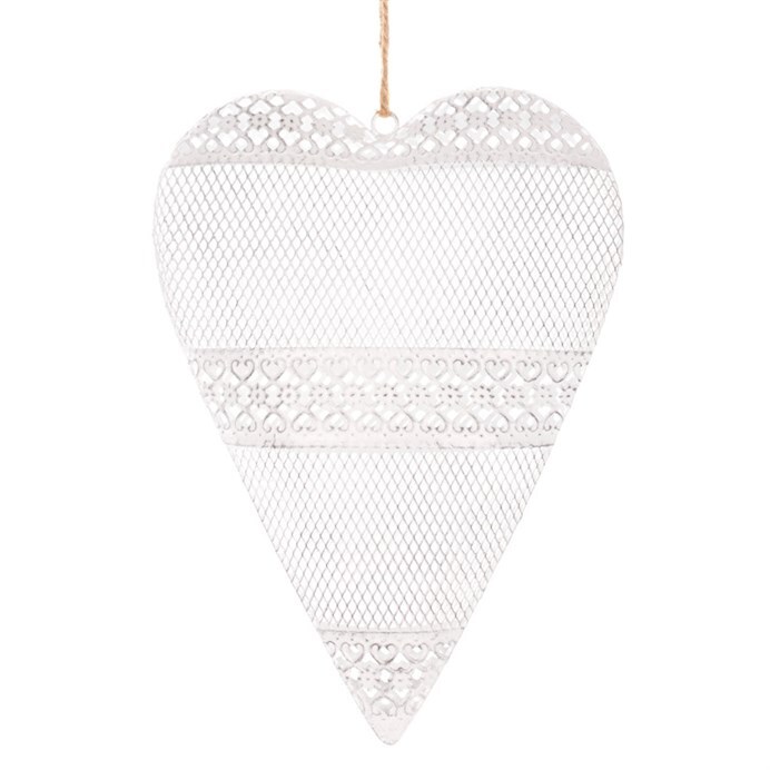 Velká kovová závěsná dekorace v podobě bílého srdce představuje mnohem více než jen vizuálně atraktivní ozdobu. Srdce je symbolem lásky, vášně a souznění, což tuto dekoraci činí mimořádně významnou. Jeho elegantní design a ozdobné provedení zvýrazňují krásu a jedinečnost srdce jako symbolu. Poutko na horní straně umožňuje provlečení provázku nebo řetízku. Vyberte mu takové místo, kde pro vás bude mít největší význam, a kde zároveň bude vynikat jeho půvab a význačnost. Taková dekorace může být výrazným prvkem ve vašem interiéru, ale také může sloužit jako nádherný dárek z lásky.