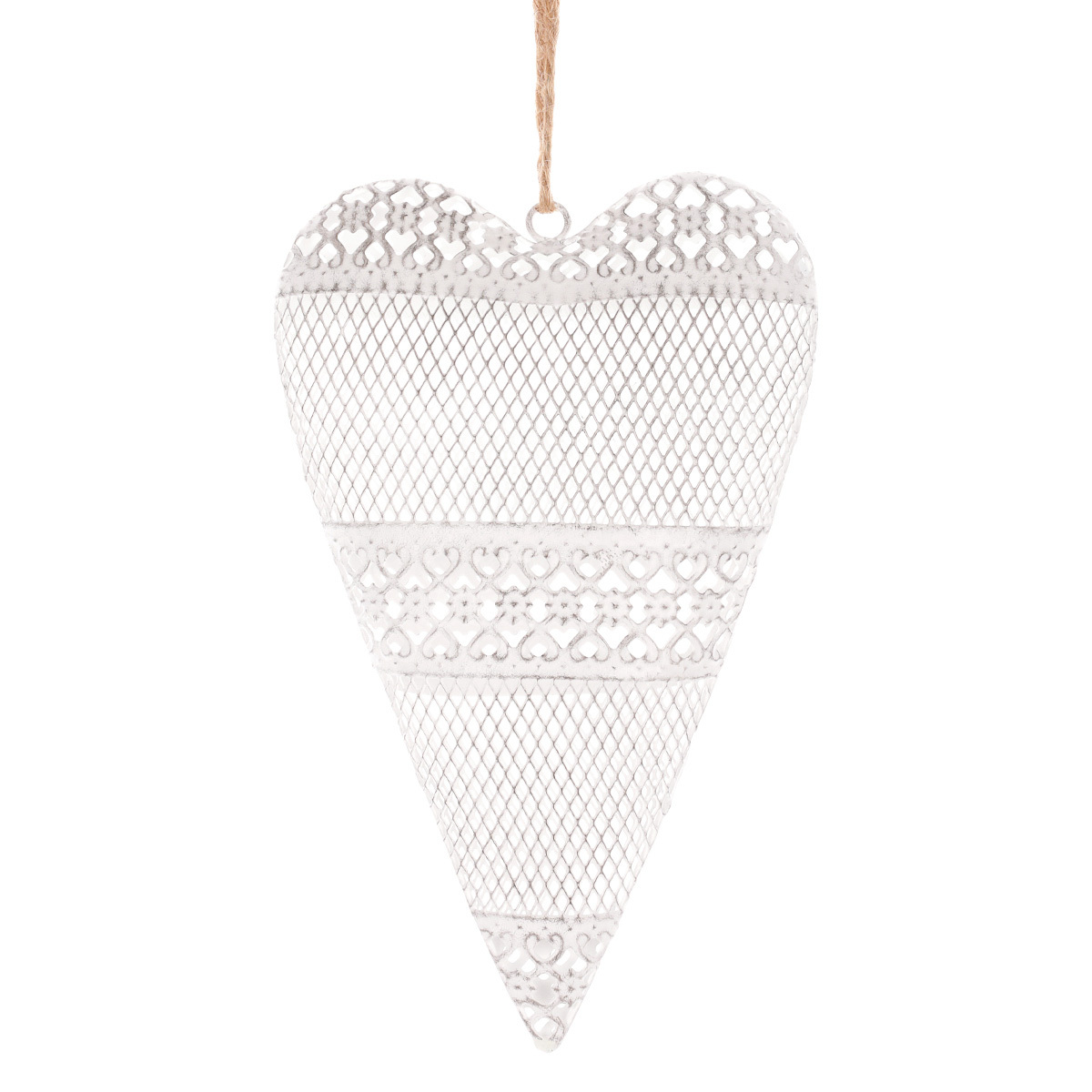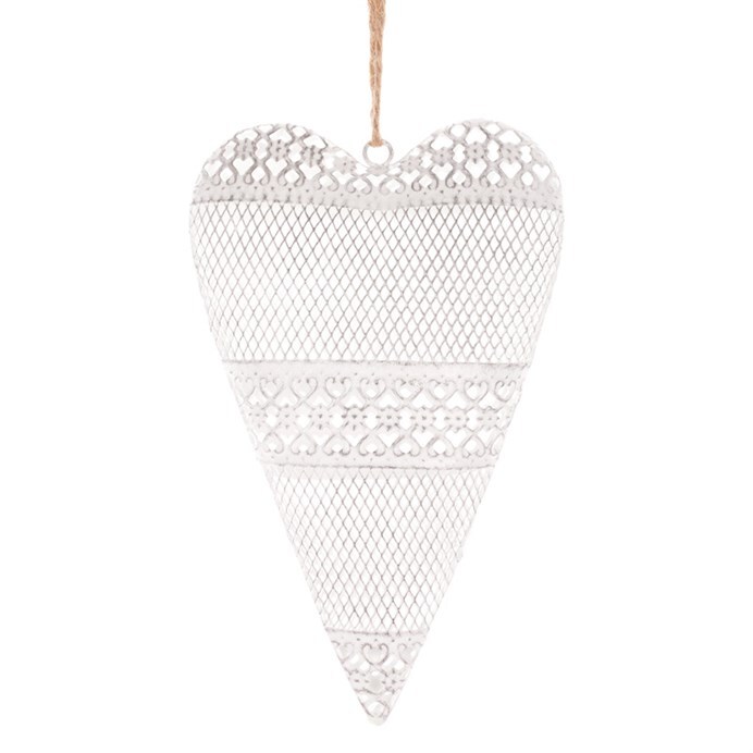 Středně velká kovová závěsná dekorace v podobě bílého srdce představuje mnohem více než jen vizuálně atraktivní ozdobu. Srdce je symbolem lásky, vášně a souznění, což tuto dekoraci činí mimořádně významnou. Jeho elegantní design a ozdobné provedení zvýrazňují krásu a jedinečnost srdce jako symbolu. Poutko na horní straně umožňuje provlečení provázku nebo řetízku. Vyberte mu takové místo, kde pro vás bude mít největší význam, a kde zároveň bude vynikat jeho půvab a význačnost. Taková dekorace může být výrazným prvkem ve vašem interiéru, ale také může sloužit jako nádherný dárek z lásky.