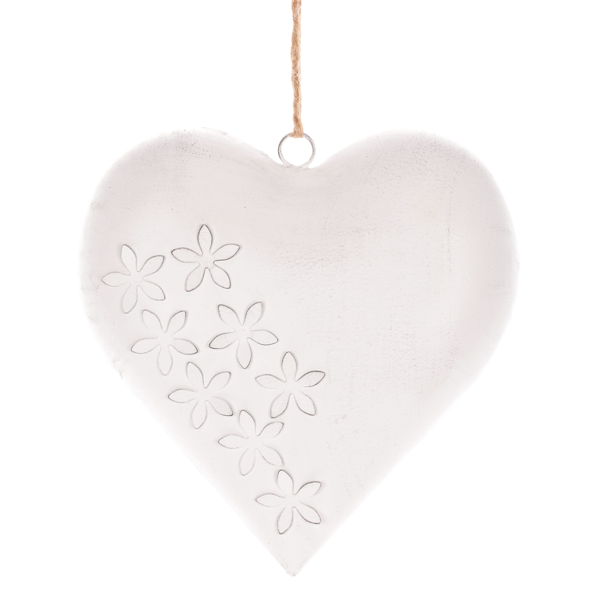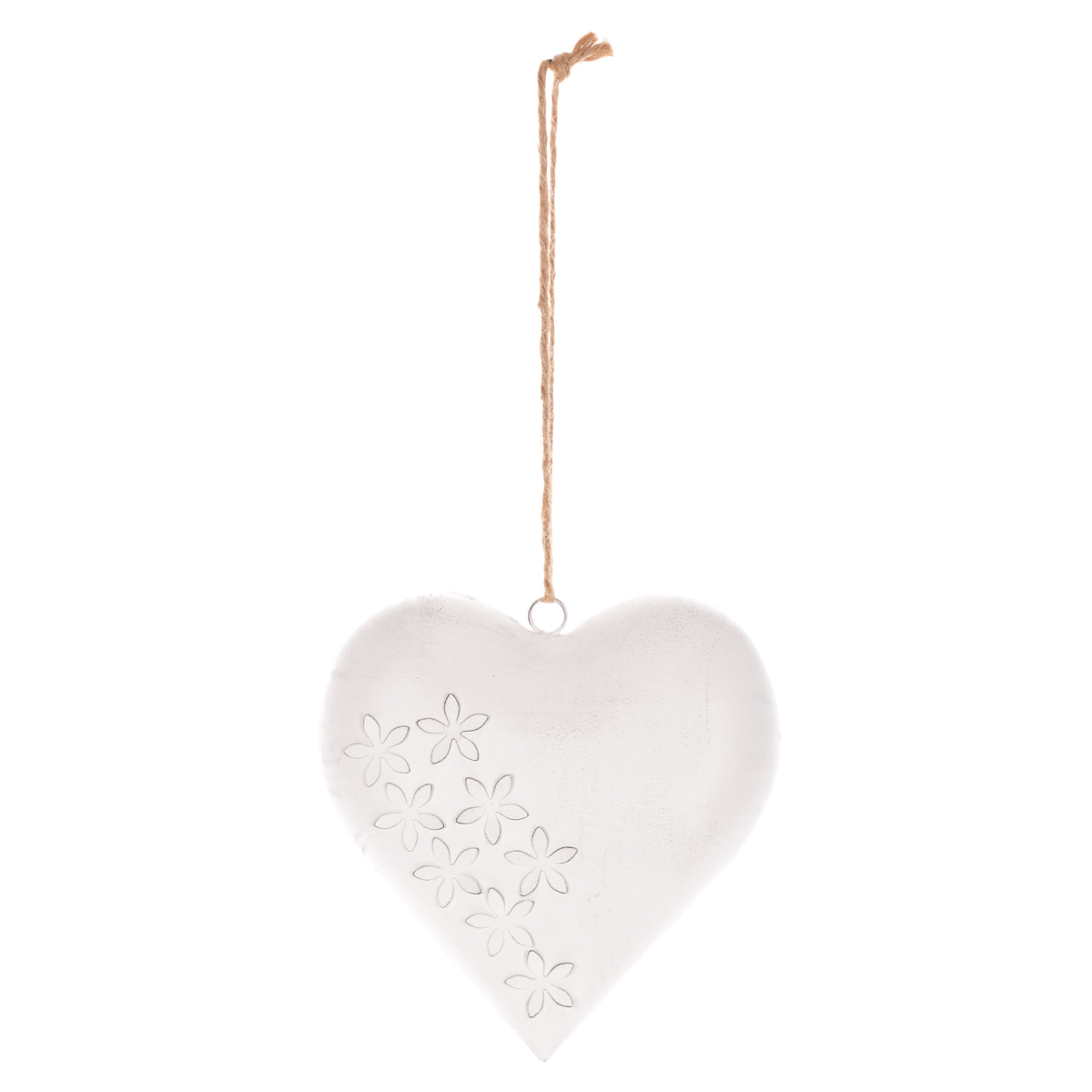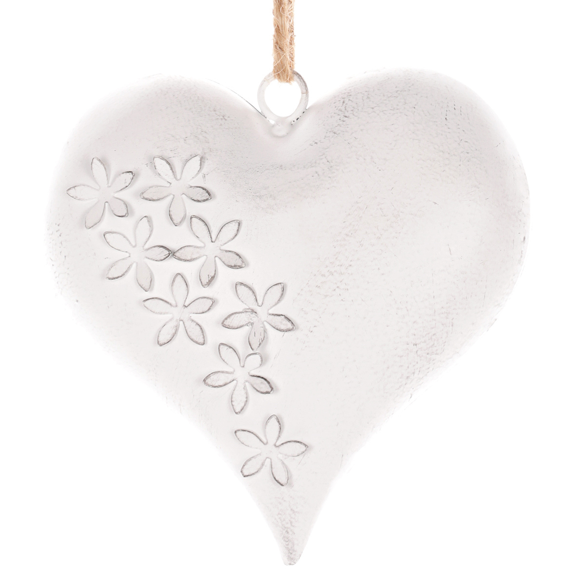 Tato kovová závěsná dekorace v podobě bílého srdce představuje mnohem více než jen vizuálně atraktivní ozdobu. Srdce je symbolem lásky, vášně a souznění, což tuto dekoraci činí mimořádně významnou. Jeho elegantní provedení s květinovým designem zvýrazňuje krásu a jedinečnost srdce jako symbolu. Poutko na horní straně umožňuje provlečení provázku nebo řetízku. Vyberte mu takové místo, kde pro vás bude mít největší význam, a kde zároveň bude vynikat jeho půvab a význačnost. Taková dekorace bude výrazným estetickým prvkem ve vašem interiéru, ale také může sloužit jako nádherný dárek z lásky.