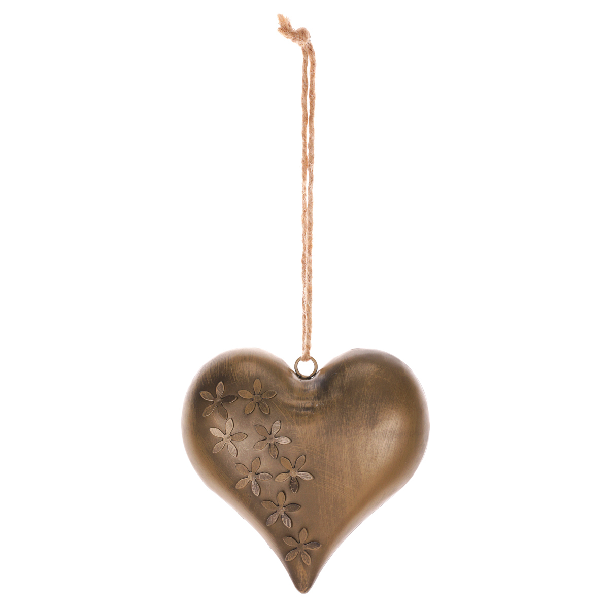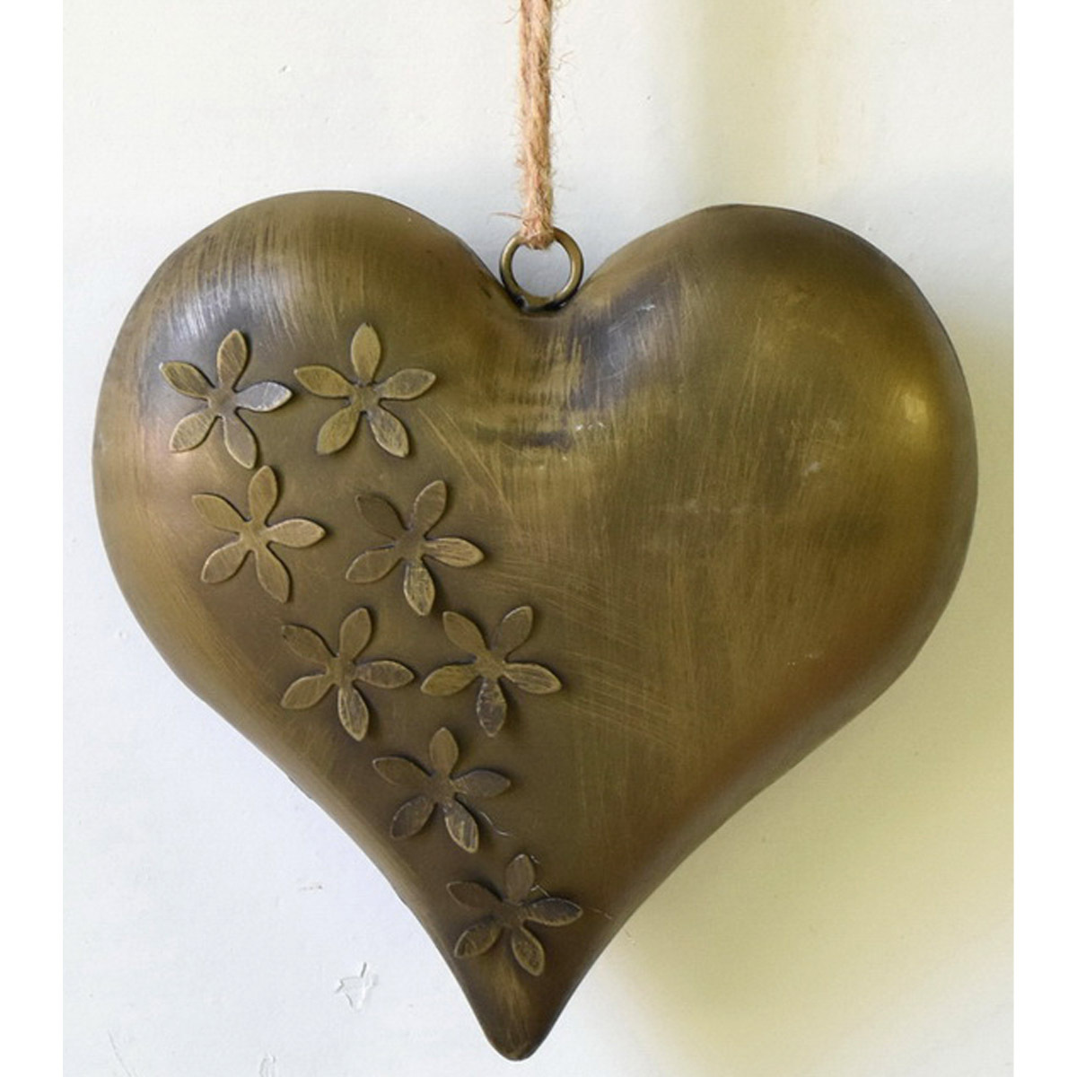 Kovová závěsná dekorace v podobě srdce měděné barvy představuje mnohem více než jen vizuálně atraktivní ozdobu. Srdce je symbolem lásky, vášně a souznění, což tuto dekoraci činí mimořádně významnou. Jeho elegantní provedení a květinový design zvýrazňují krásu a jedinečnost srdce jako symbolu. Poutko na horní straně umožňuje provlečení provázku nebo řetízku. Vyberte mu takové místo, kde pro vás bude mít největší význam, a kde zároveň bude vynikat jeho půvab a význačnost. Srdce v tomto provedení bude výrazným estetickým prvkem ve vašem interiéru, ale také může sloužit jako nádherný dárek z lásky.