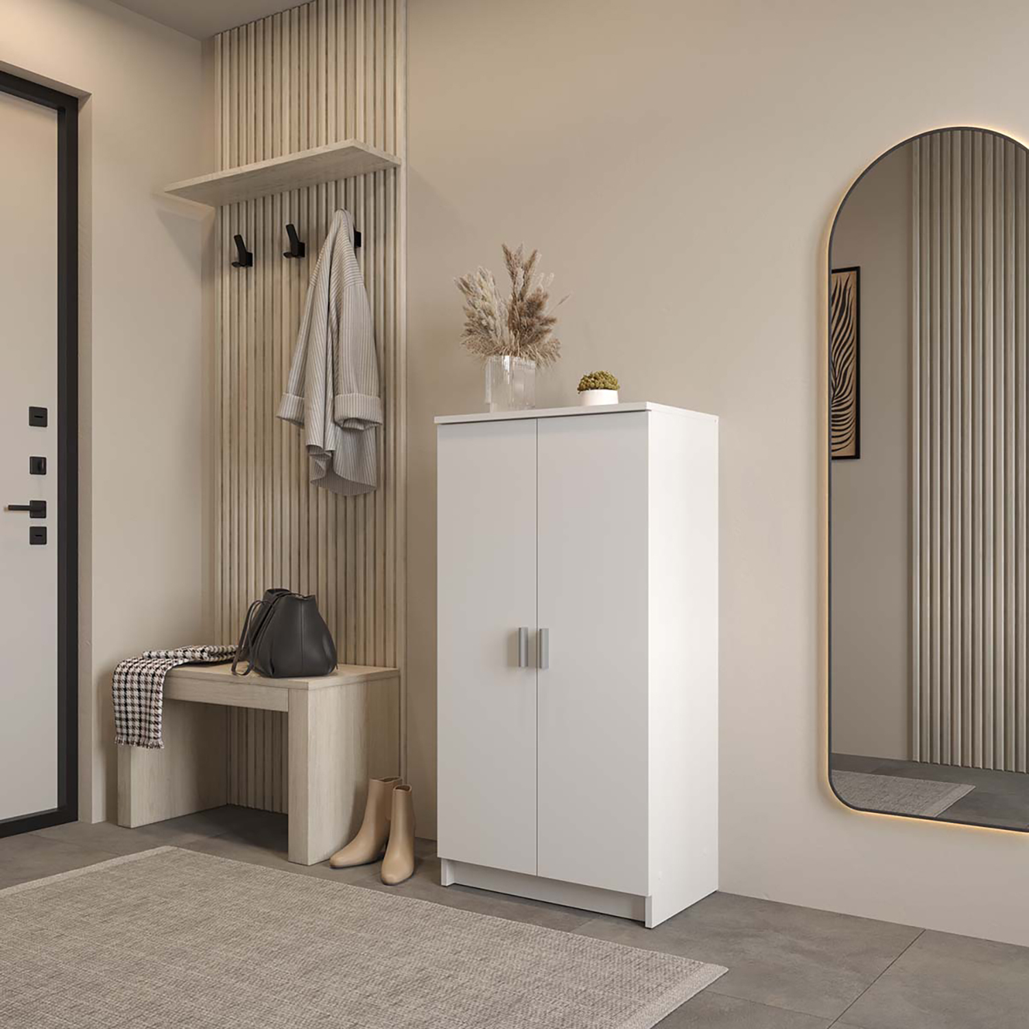 barevné provedení matná bílá 2 dveře, 6 variabilních polic, rozměr police (š/h) 51 × 29 cm kapacita až 21 párů bot