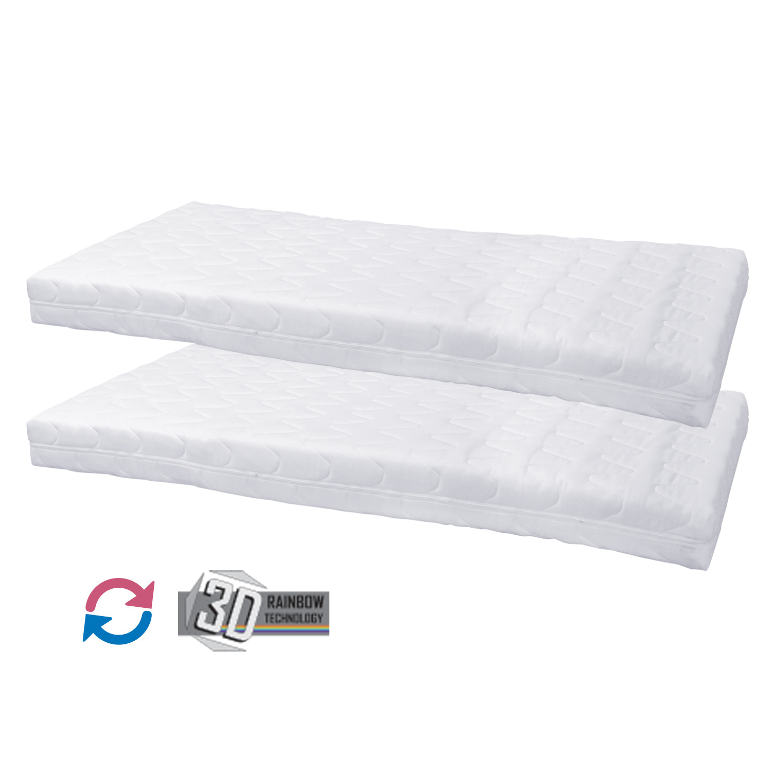 dvě matrace za cenu jedné 3D Rainbow technologie – speciální profilace na sendvičové vrstvě z kombinace Flexifoam pěn různých vlastností a tuhostí, která zajišťuje komfort, vzdušnost, ortopedické vlastnosti a dlouhou životnost anatomická zónová masážní profilace – 7 zón na obou stranách, jemná masáž v průběhu spánku rozdílná tuhost stran – zelenkavá měkčí strana tuhost 2 z 5, modrá tužší strana tuhost 2,5 z 5 vzdušný potah prošitý dutým vláknem, vyrobený ze 2 částí, snímatelný a pratelný do 60 °C doporučená nosnost do 120 kg, výška matrace 17 cm