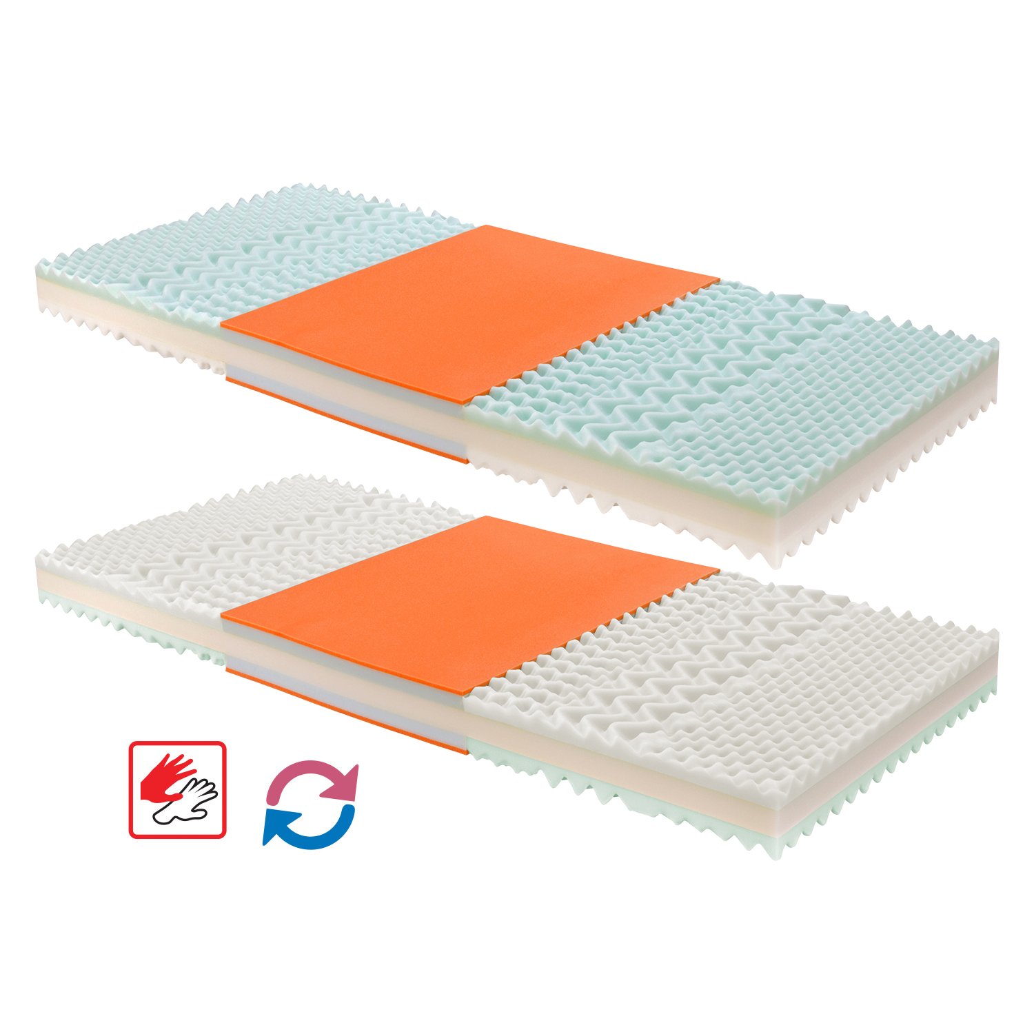 dvě matrace za cenu jedné paměťová pěna různých tuhostí v pánevních zónách pro odlehčení kloubům a celému pohybovému aparátu 7zónová anatomická masážní profilace přináší velmi jemnou masáž v průběhu spánku matrace s Visco pěnou a systémem rozdílné tuhosti stran vhodná pro všechny typy roštů potah snímatelný a pratelný do 40 °C doporučená nostnost do 120 kg