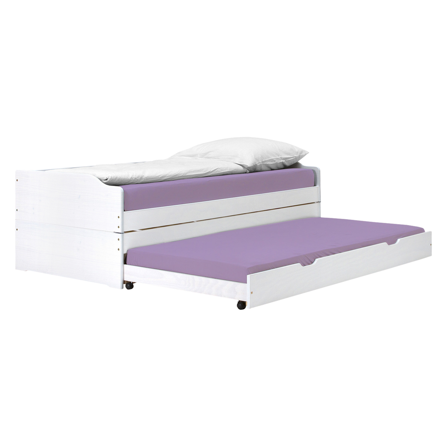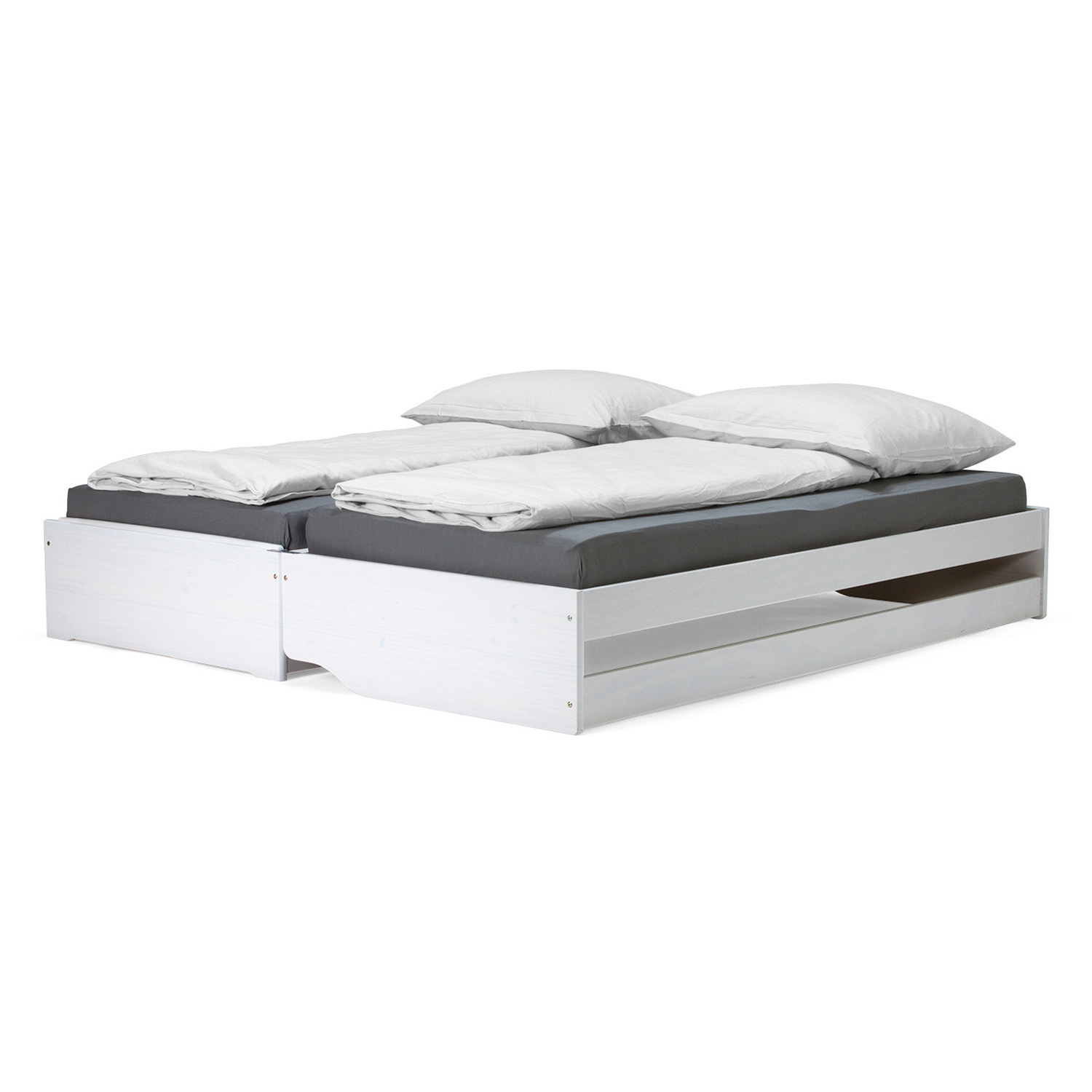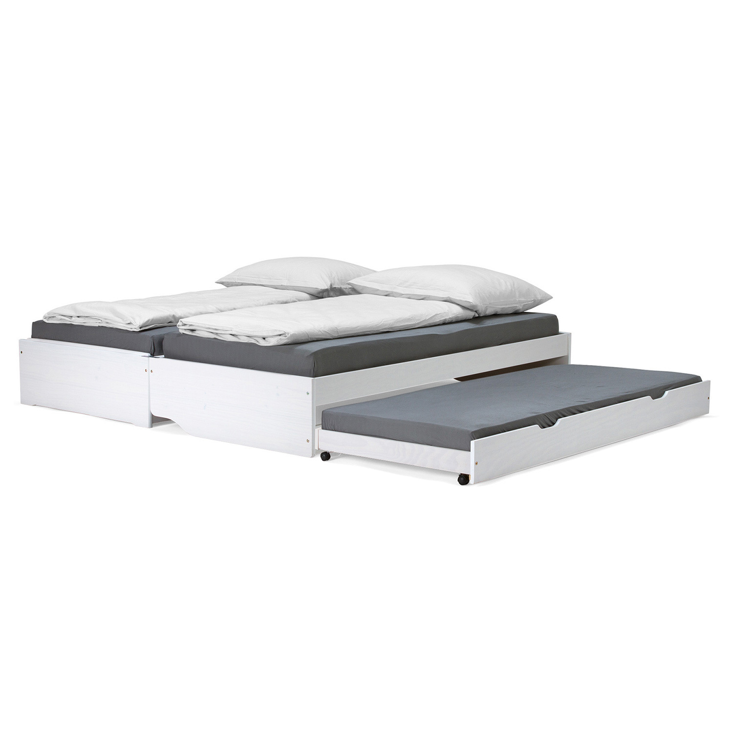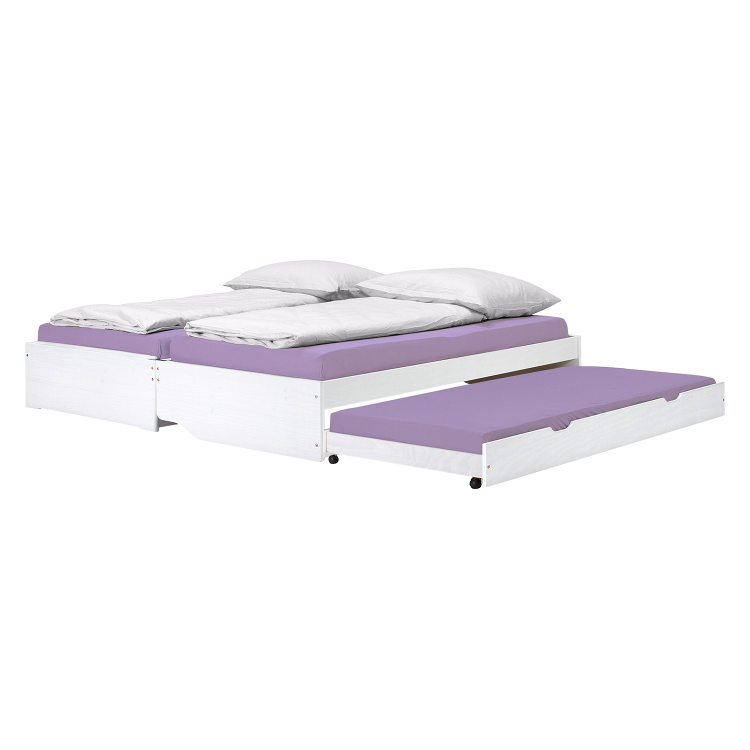 materiál masiv borovice, barevné provedení bílý lak rychle a snadno rozložitelná na dvě nebo tři lůžka dva laťkové rošty jsou součástí dodávky matrace nejsou v ceně, doporučený rozměr matrací 90 × 200 cm do rozložené pohovky Fenix je možno použít libovolně vysoké matrace, v případě složení postele doporučujeme použít do přídavných lůžek matrace do výšky 11 cm
