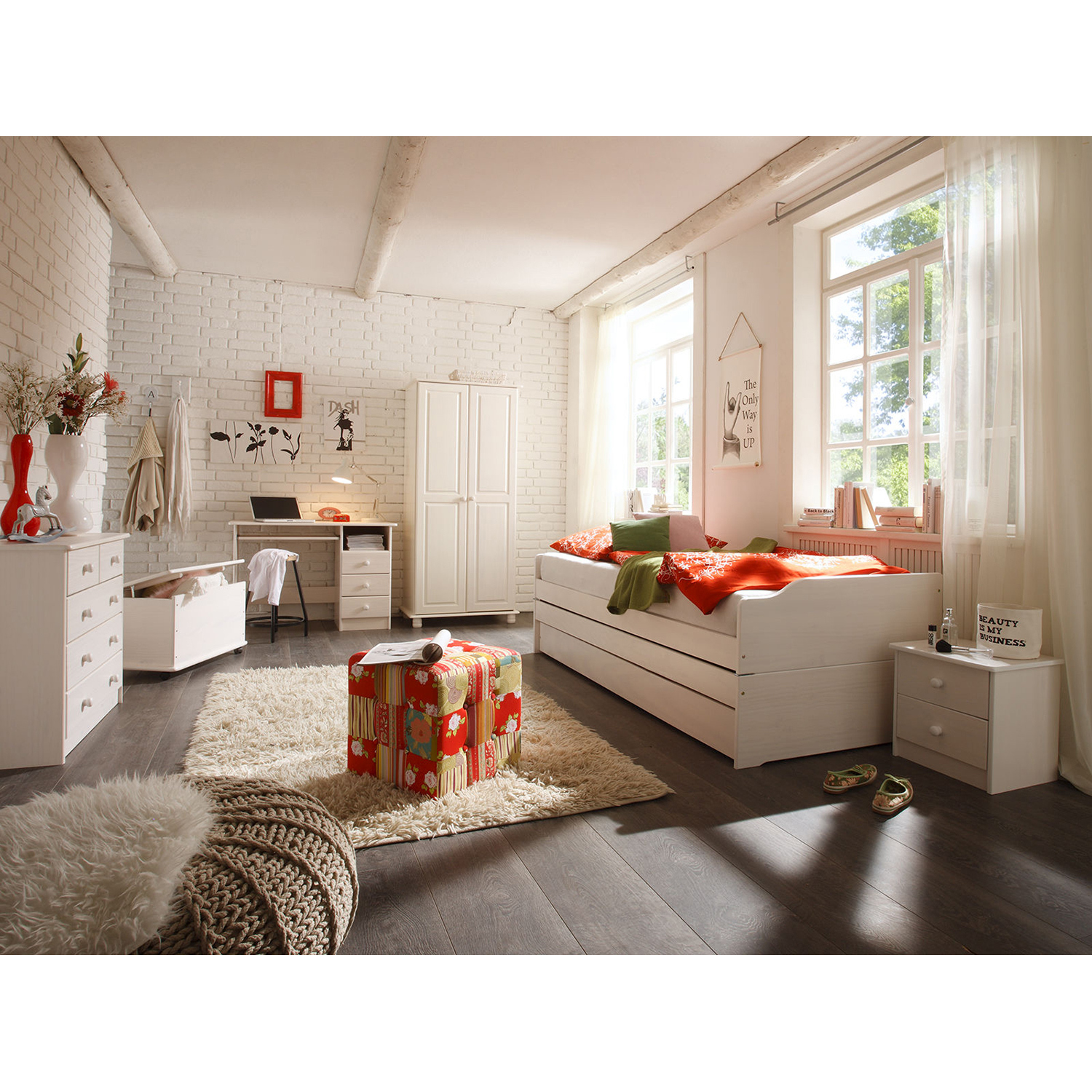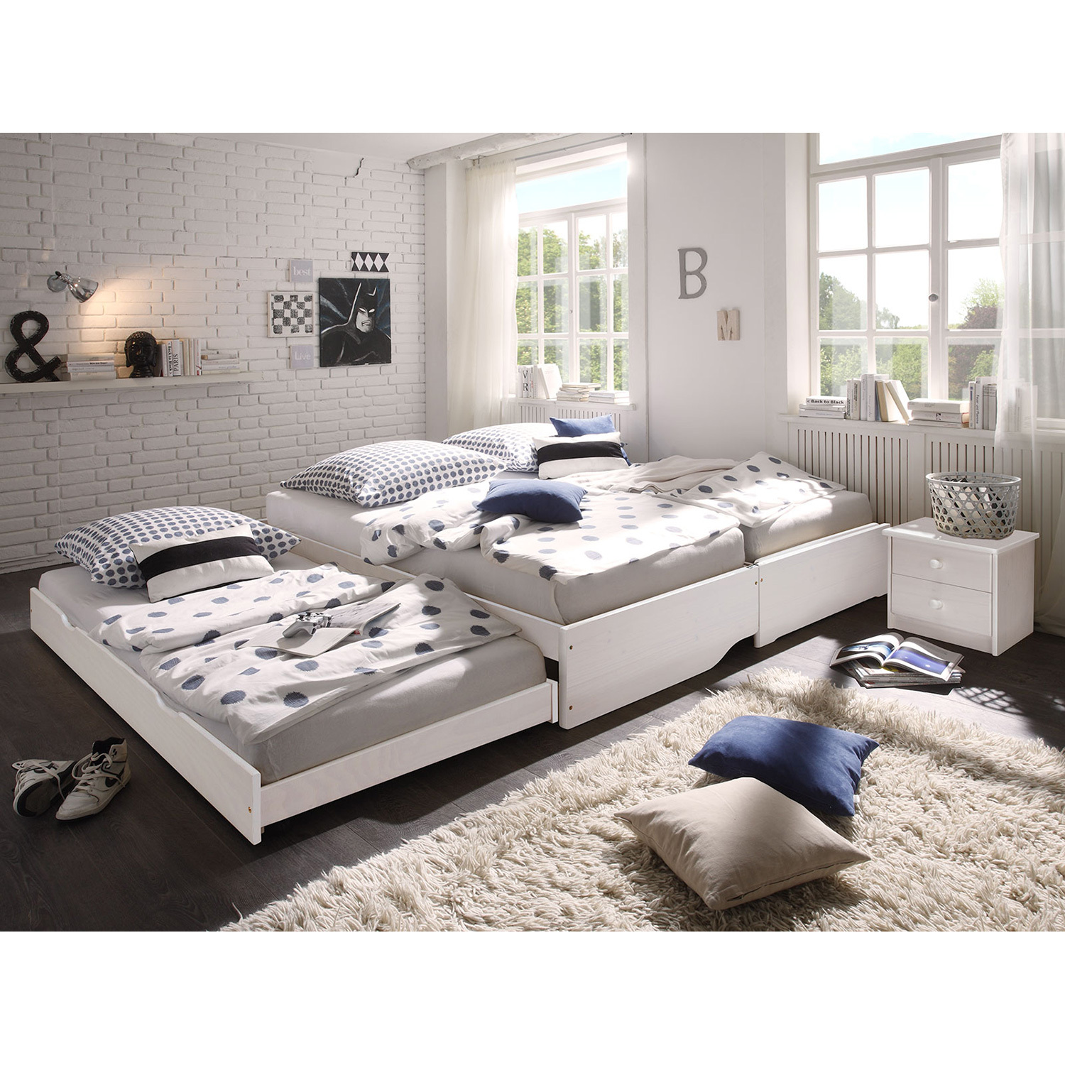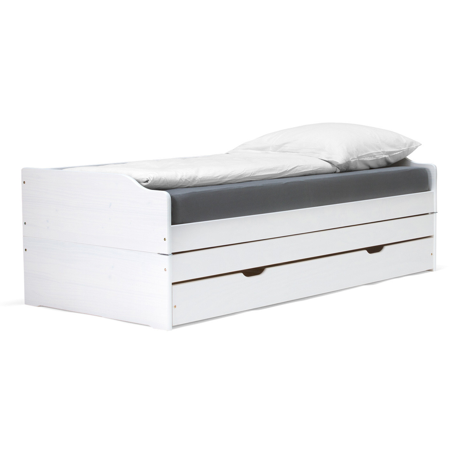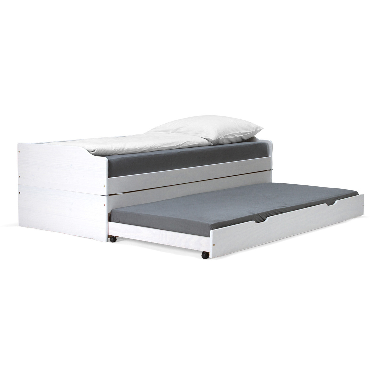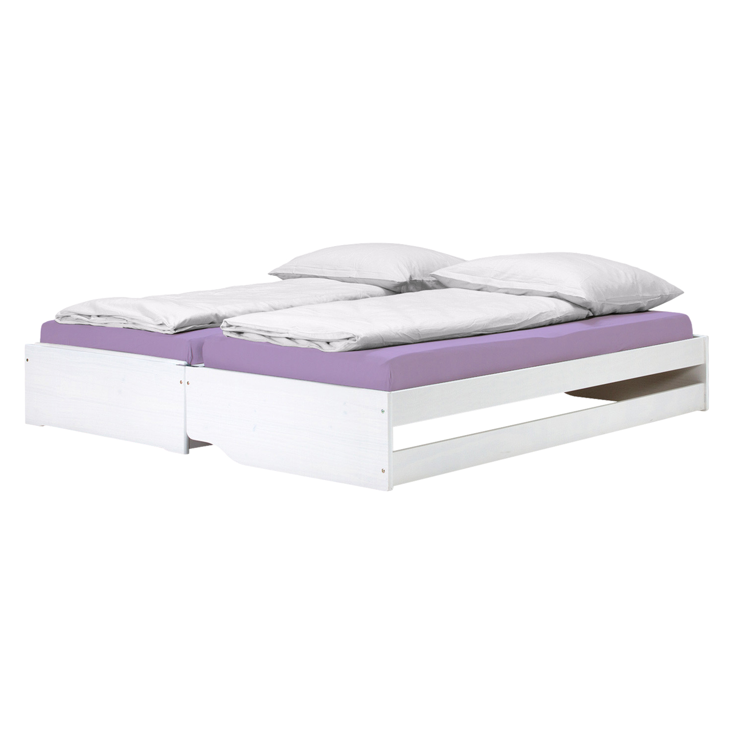 materiál masiv borovice, barevné provedení bílý lak rychle a snadno rozložitelná na dvě nebo tři lůžka dva laťkové rošty jsou součástí dodávky matrace nejsou v ceně, doporučený rozměr matrací 90 × 200 cm do rozložené pohovky Fenix je možno použít libovolně vysoké matrace, v případě složení postele doporučujeme použít do přídavných lůžek matrace do výšky 11 cm