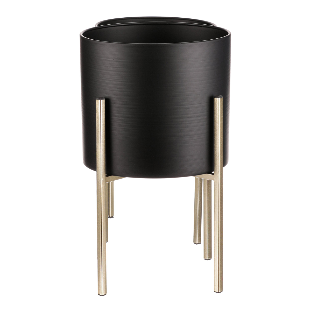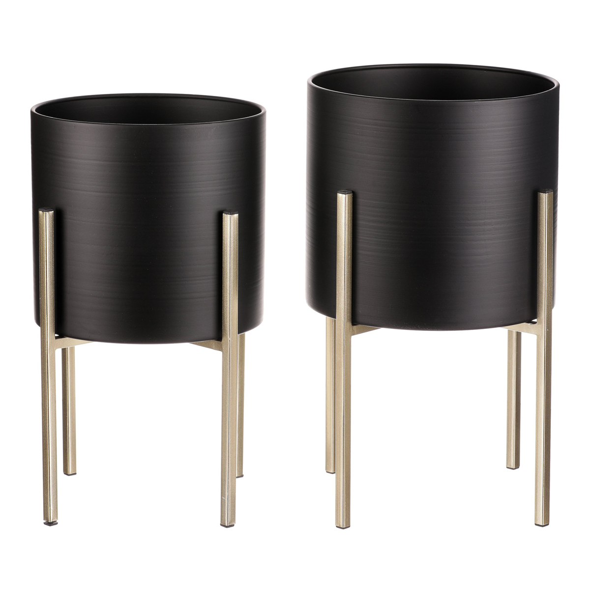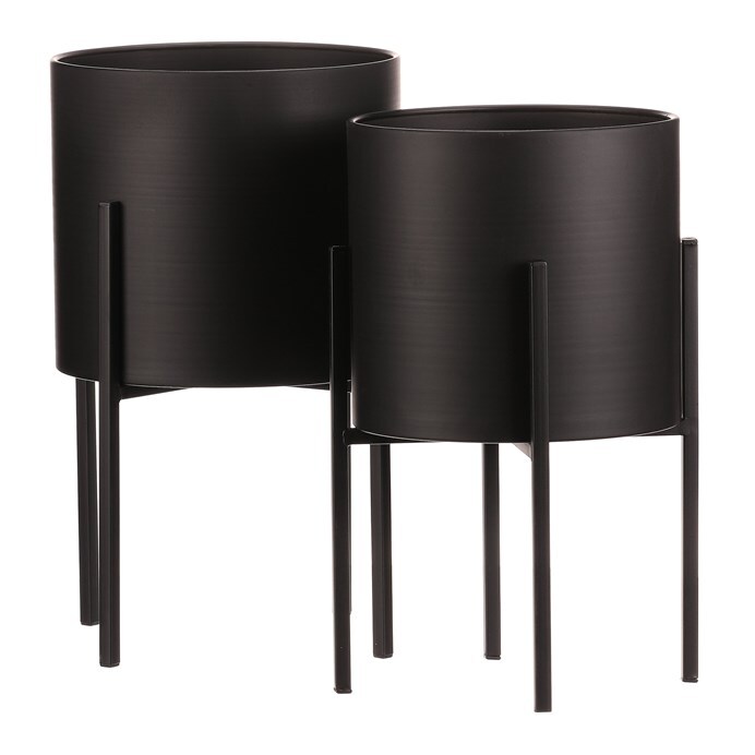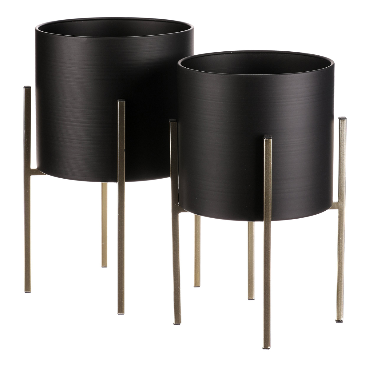 Set 2 ks kovových stojanů na květiny. interiérové provedení. Konstrukce a obal na květináč je kovový. Obal je v černém matu a nohy taktéž v černé matné barvě.
