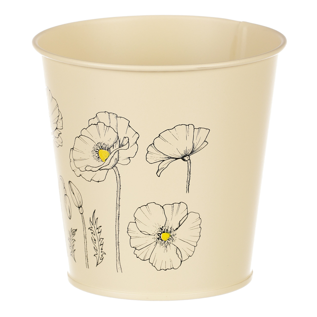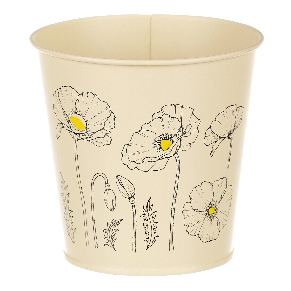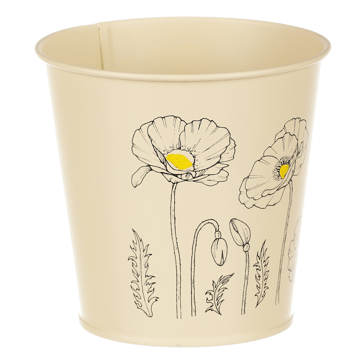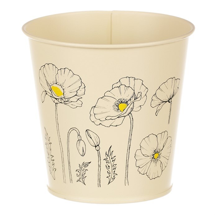 Chcete si udělat radost nevšedním vyzdobením vašeho oblíbeného prostoru květinami, a dochází vám nápady do čeho je vsadit? Zkuste sáhnout po této jedinečné dekoraci v podobě kovového obalu s obrázkem rozkvetlých máků ve žluté barvě a nebudete litovat. Díky svému tvaru a vzhledu se tento kovový obal stane okouzlujícím doplňkem pro vaše květiny. Kombinace krásných rostlin zasazených do takto zdobené a tvarované dekorace spolu vytvoří jedinečnou kompozici. Při pohledu na tuto vámi vytvořenou krásu budete na sebe hrdí a mít skvělý pocit z dobře odvedené práce. Přineste si do svého domova prvek originality s tímto nevšedním kovovým obalem na květiny, který okouzlí každého obdivovatele rostlin a skvěle oživí váš prostor.