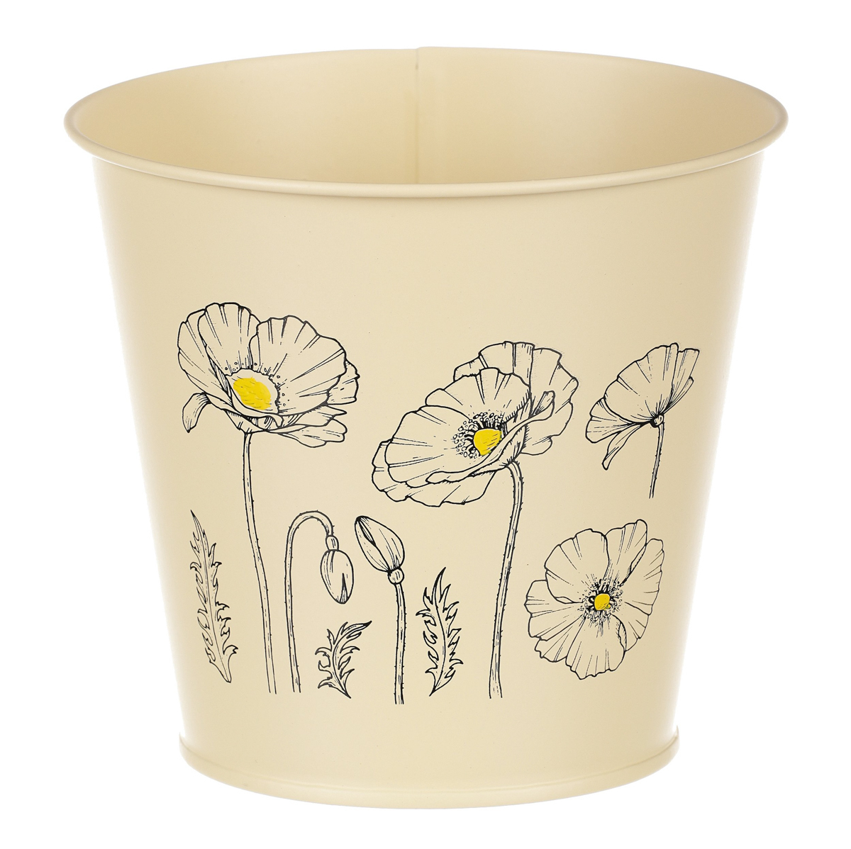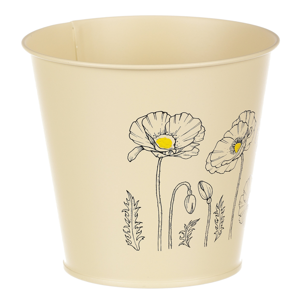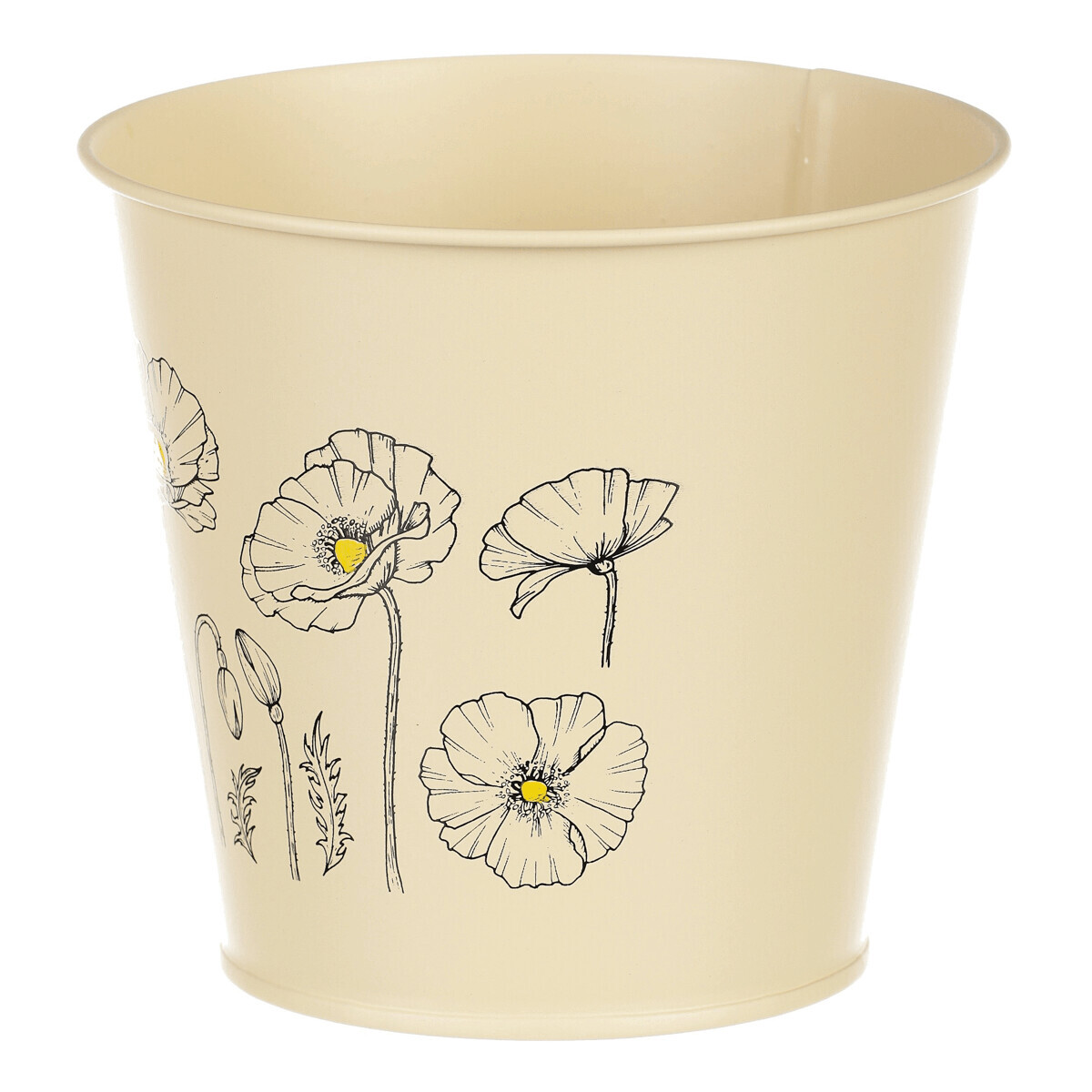 Chcete si udělat radost nevšedním vyzdobením vašeho oblíbeného prostoru květinami, a dochází vám nápady do čeho je vsadit? Zkuste sáhnout po této jedinečné dekoraci v podobě kovového obalu s obrázkem rozkvetlých máků ve žluté barvě a nebudete litovat. Díky svému tvaru a vzhledu se tento kovový obal stane okouzlujícím doplňkem pro vaše květiny. Kombinace krásných rostlin zasazených do takto zdobené a tvarované dekorace spolu vytvoří jedinečnou kompozici. Při pohledu na tuto vámi vytvořenou krásu budete na sebe hrdí a mít skvělý pocit z dobře odvedené práce. Přineste si do svého domova prvek originality s tímto nevšedním kovovým obalem na květiny, který okouzlí každého obdivovatele rostlin a skvěle oživí váš prostor.