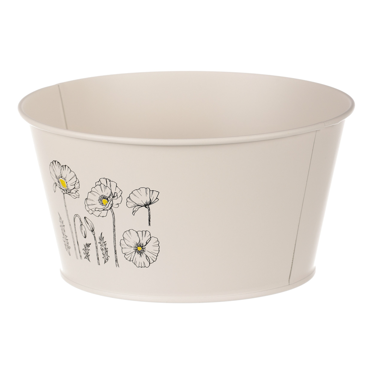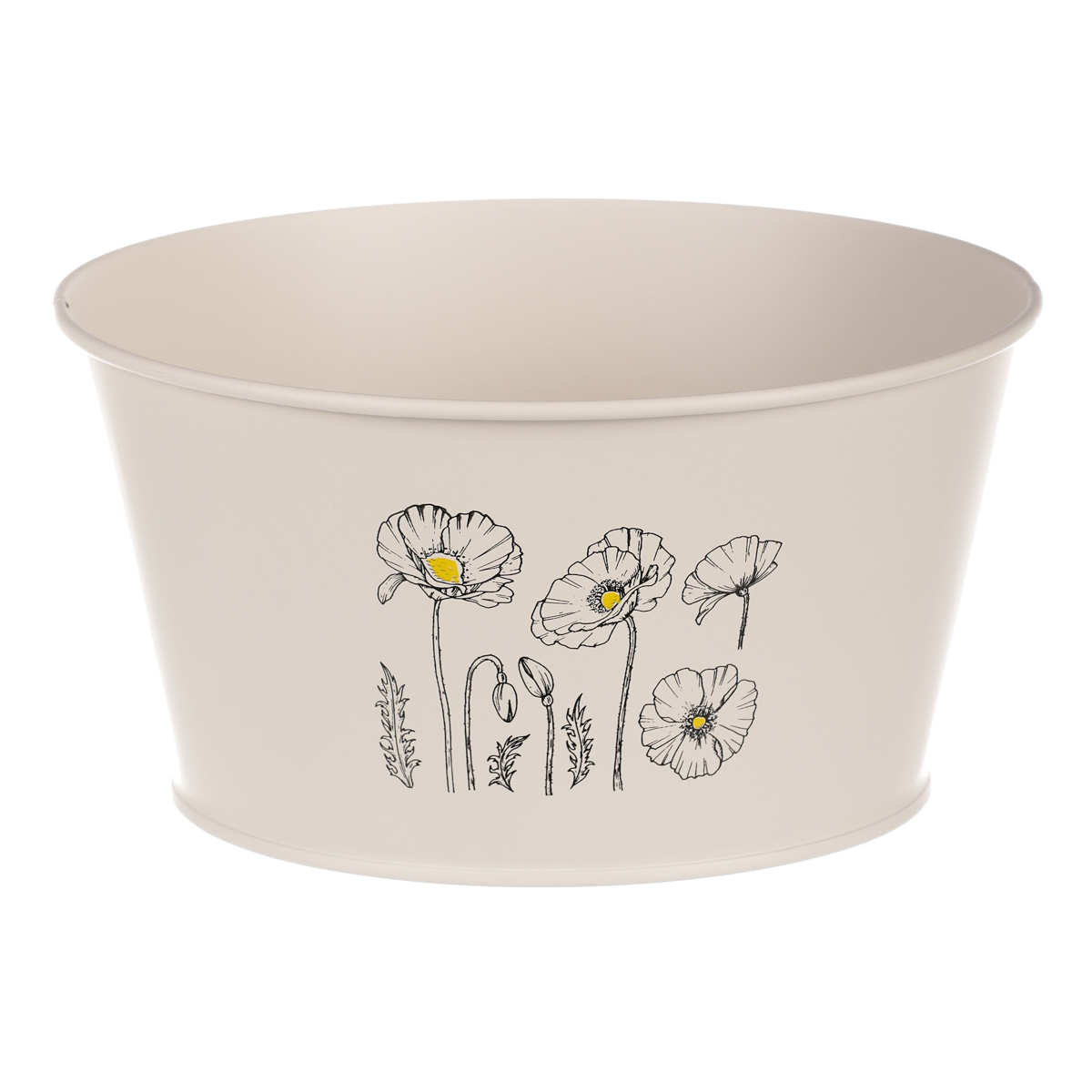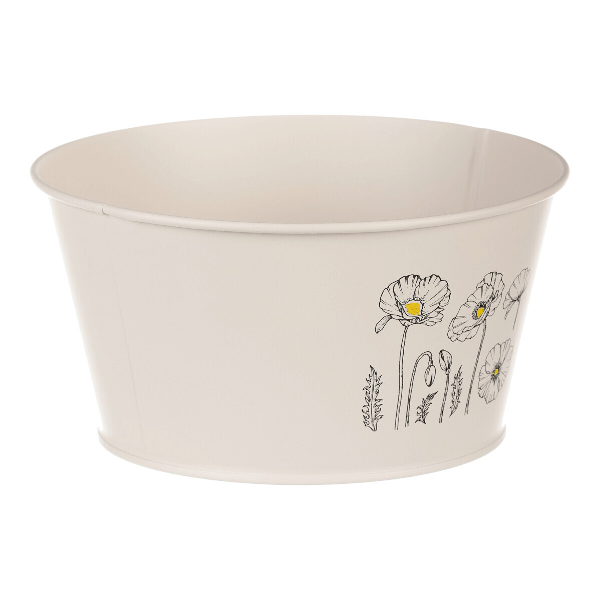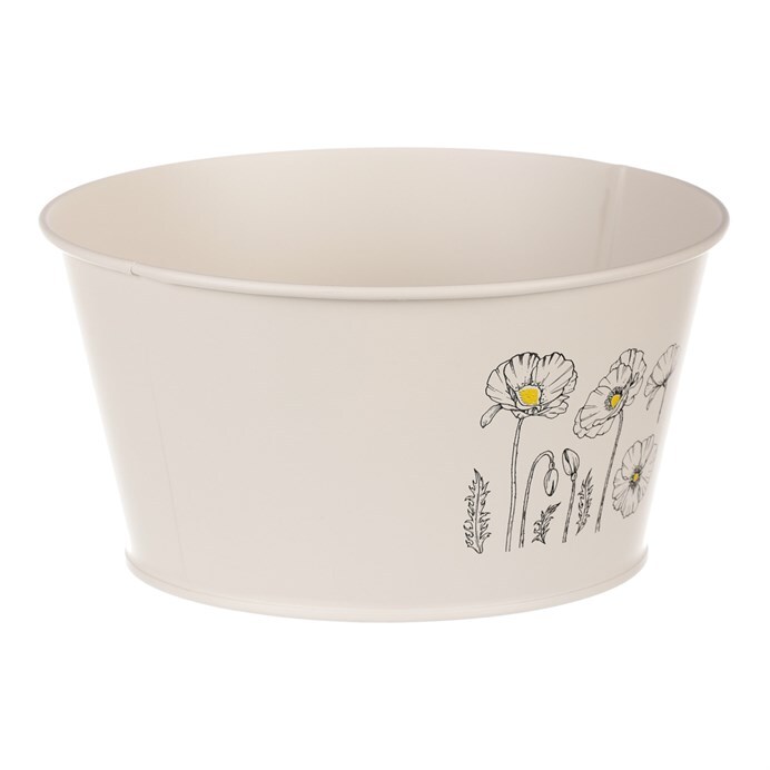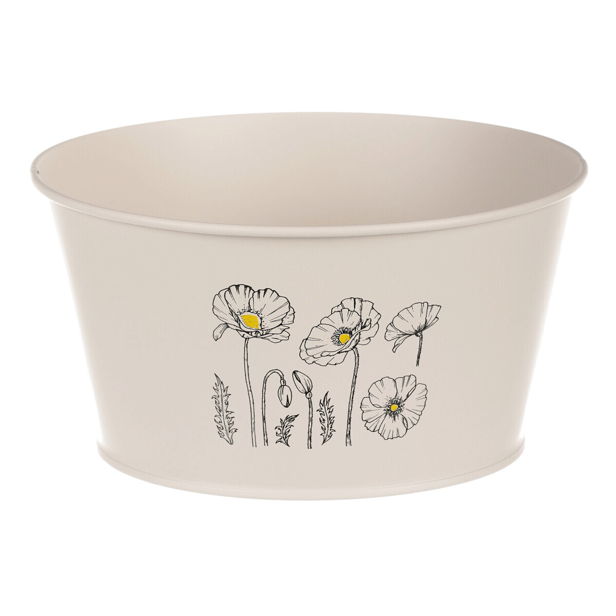 Chcete si udělat radost nevšedním vyzdobením vašeho oblíbeného prostoru květinami, a dochází vám nápady do čeho je vsadit? Zkuste sáhnout po této jedinečné dekoraci v podobě kovového obalu s obrázkem rozkvetlých máků v krémové barvě a nebudete litovat. Díky svému tvaru a vzhledu se tento kovový obal stane okouzlujícím doplňkem pro vaše květiny. Kombinace krásných rostlin zasazených do takto zdobené a tvarované dekorace spolu vytvoří jedinečnou kompozici. Při pohledu na tuto vámi vytvořenou krásu budete na sebe hrdí a mít skvělý pocit z dobře odvedené práce. Přineste si do svého domova prvek originality s tímto nevšedním kovovým obalem na květiny, který okouzlí každého obdivovatele rostlin a skvěle oživí váš prostor.