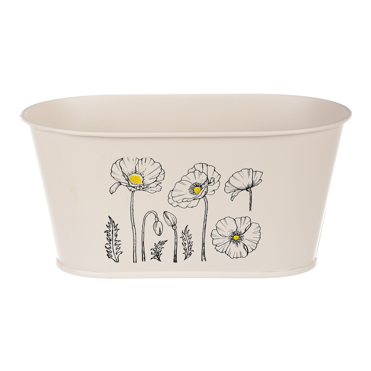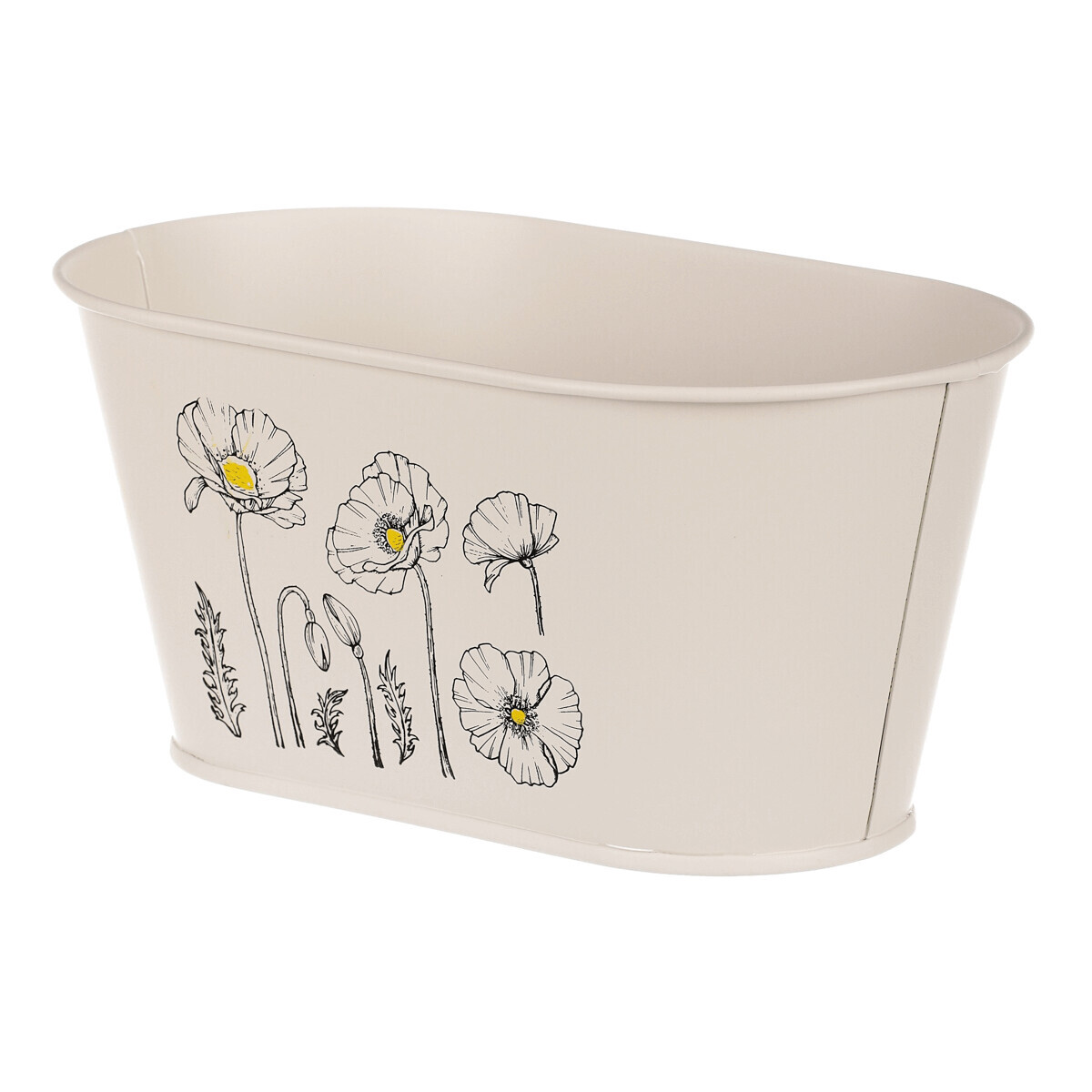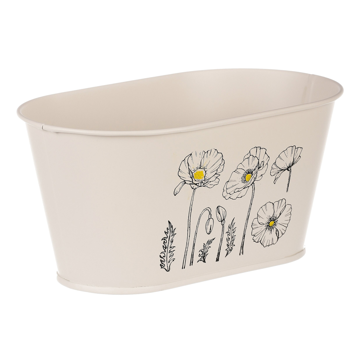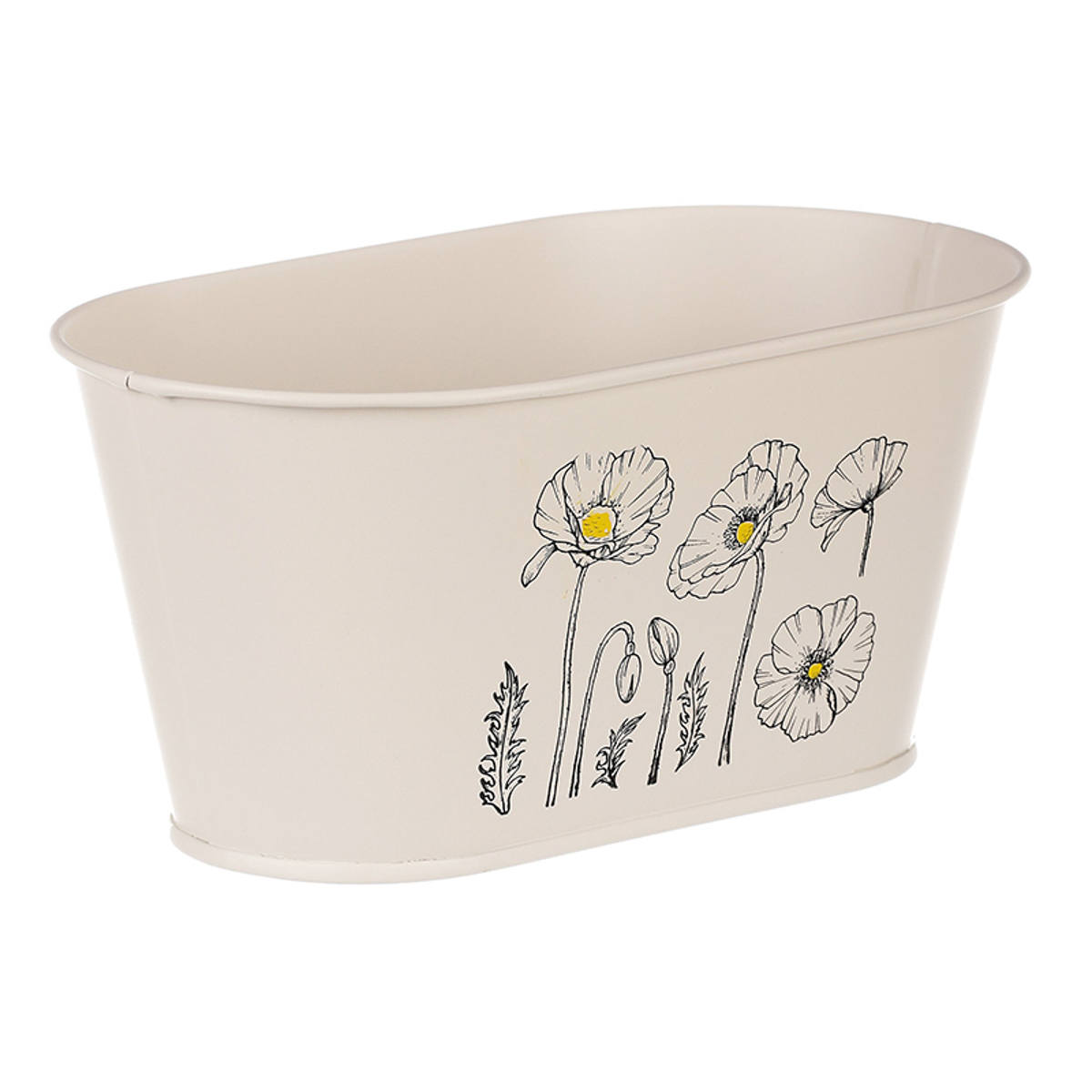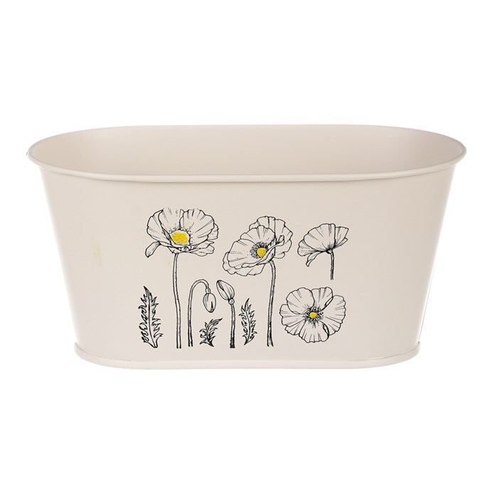 Chcete si udělat radost nevšedním vyzdobením vašeho oblíbeného prostoru květinami, a dochází vám nápady do čeho je vsadit? Zkuste sáhnout po této jedinečné dekoraci v podobě kovového truhlíku s obrázkem rozkvetlých máků v krémové barvě a nebudete litovat. Díky svému tvaru a vzhledu se tento kovový obal stane okouzlujícím doplňkem pro vaše květiny. Kombinace krásných rostlin zasazených do takto zdobené a tvarované dekorace spolu vytvoří jedinečnou kompozici. Při pohledu na tuto vámi vytvořenou krásu budete na sebe hrdí a mít skvělý pocit z dobře odvedené práce. Přineste si do svého domova prvek originality s tímto nevšedním kovovým obalem na květiny, který okouzlí každého obdivovatele rostlin a skvěle oživí váš prostor.