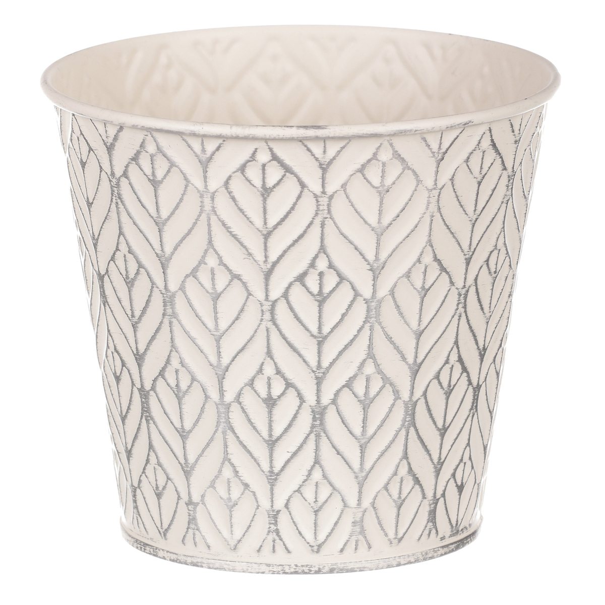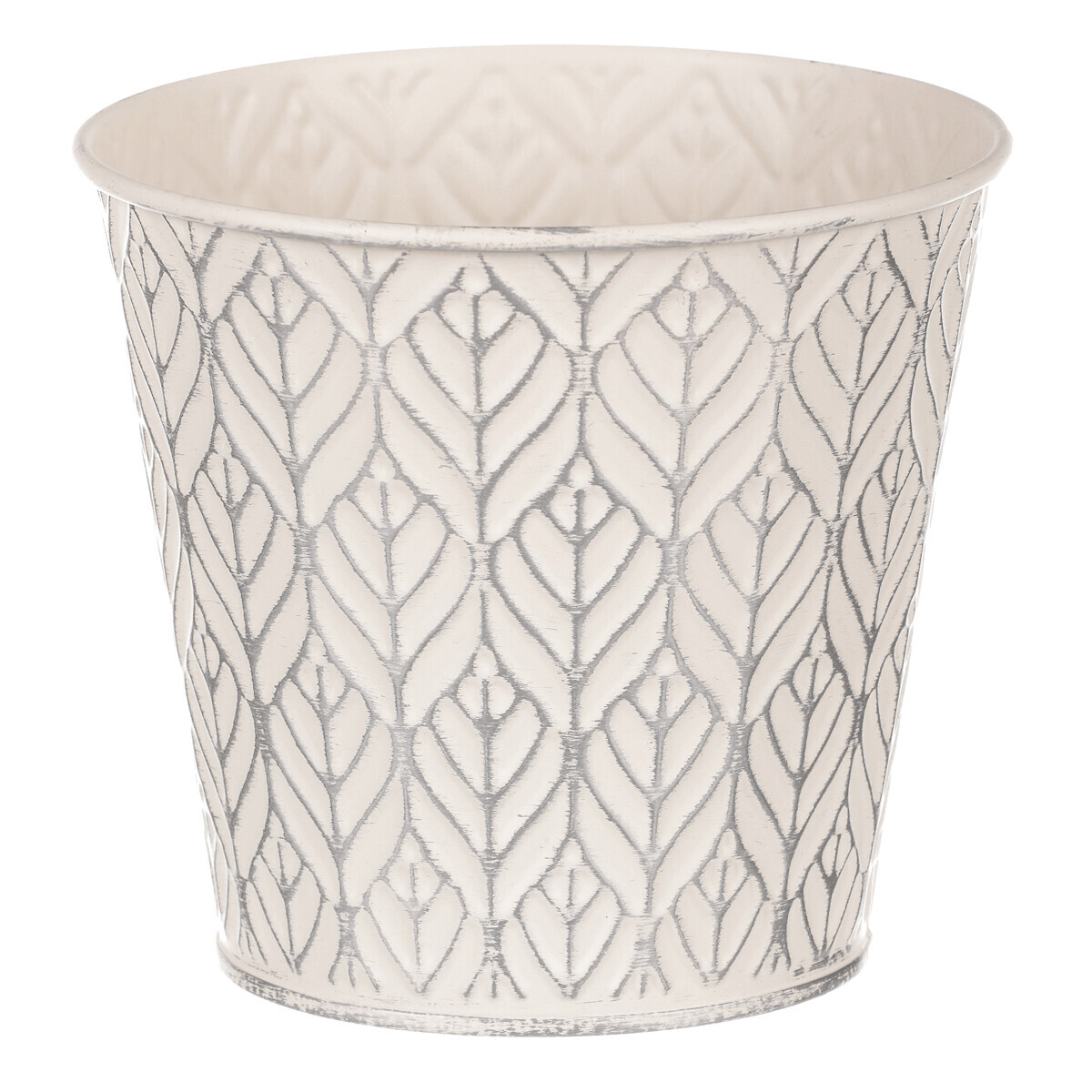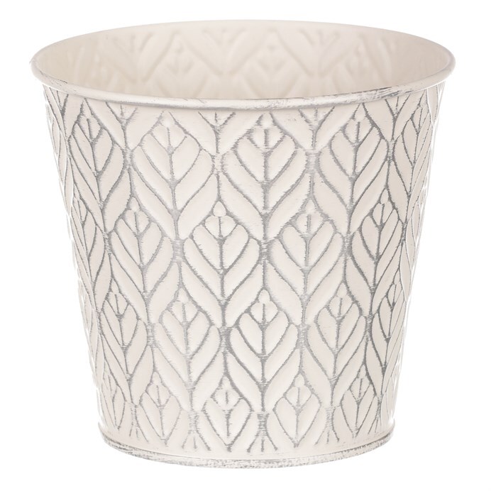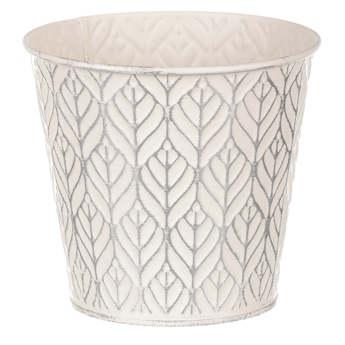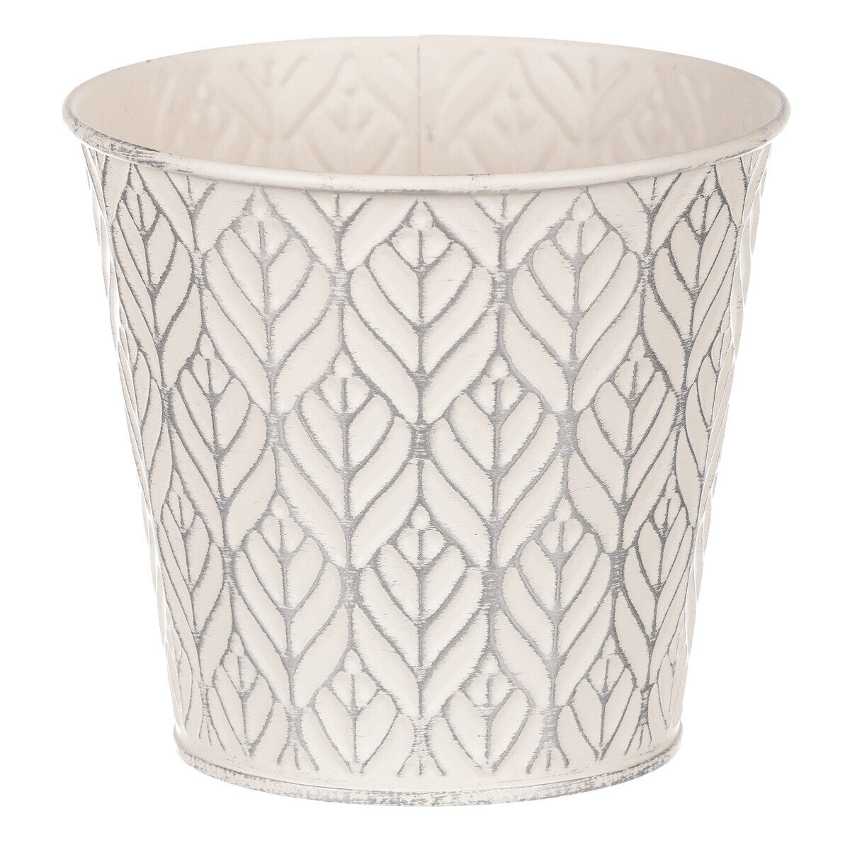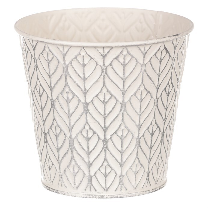 Chcete si udělat radost nevšedním vyzdobením vašeho oblíbeného prostoru květinami, a dochází vám nápady do čeho je vsadit? Zkuste sáhnout po této jedinečné dekoraci v podobě elegantního kovového obalu v krémové barvě se stříbrným vzorkováním a nebudete litovat. Díky svému tvaru a vzhledu se tento kovový obal stane okouzlujícím doplňkem pro vaše květiny. Kombinace krásných rostlin zasazených do takto zdobené a tvarované dekorace spolu vytvoří jedinečnou kompozici. Při pohledu na tuto vámi vytvořenou krásu budete na sebe hrdí a mít skvělý pocit z dobře odvedené práce. Přineste si do svého domova prvek originality s tímto nevšedním kovovým obalem na květiny, který okouzlí každého obdivovatele rostlin a skvěle oživí váš prostor.