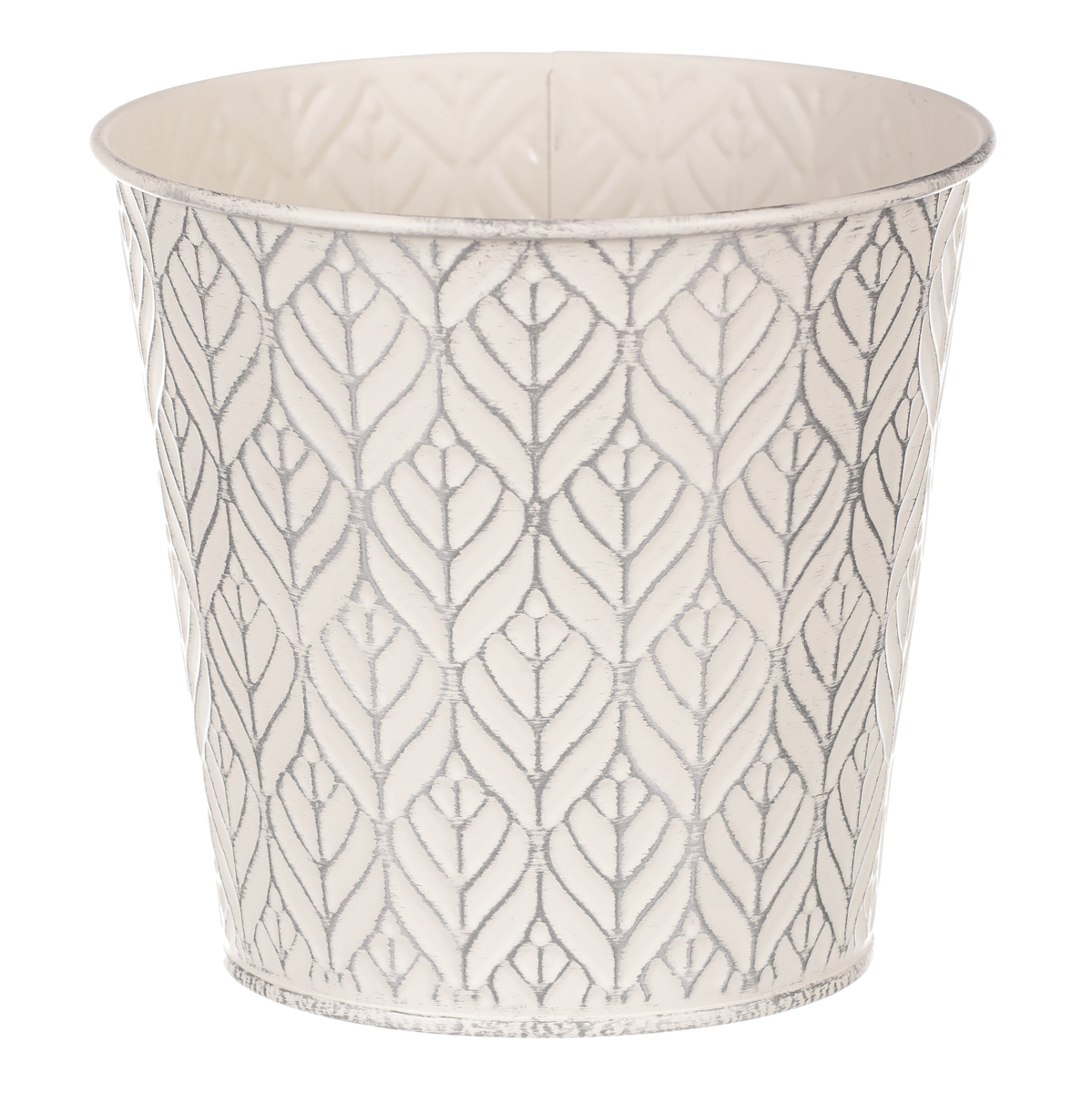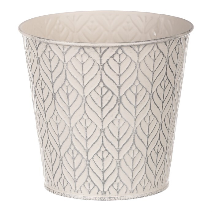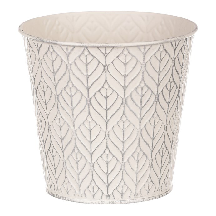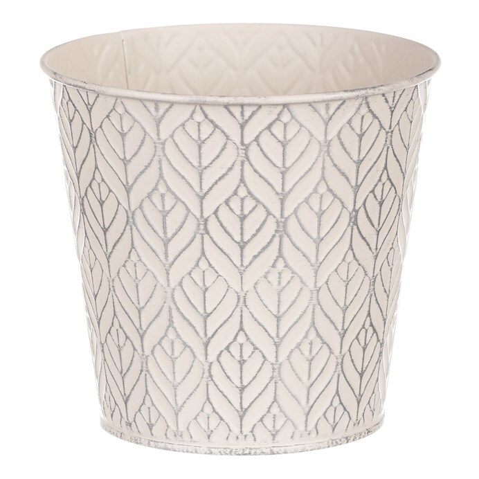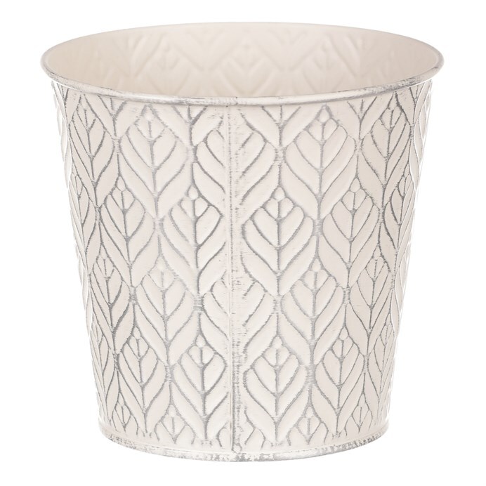 Chcete si udělat radost nevšedním vyzdobením vašeho oblíbeného prostoru květinami, a dochází vám nápady do čeho je vsadit? Zkuste sáhnout po této jedinečné dekoraci v podobě elegantního kovového obalu v krémové barvě se stříbrným vzorkováním a nebudete litovat. Díky svému tvaru a vzhledu se tento kovový obal stane okouzlujícím doplňkem pro vaše květiny. Kombinace krásných rostlin zasazených do takto zdobené a tvarované dekorace spolu vytvoří jedinečnou kompozici. Při pohledu na tuto vámi vytvořenou krásu budete na sebe hrdí a mít skvělý pocit z dobře odvedené práce. Přineste si do svého domova prvek originality s tímto nevšedním kovovým obalem na květiny, který okouzlí každého obdivovatele rostlin a skvěle oživí váš prostor.