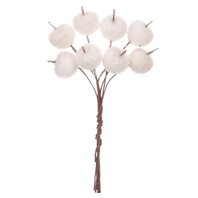 Drobné dekorační přízdoby v podobě bílých plastových mini jablíček, která vypadají jako omrznutá, jsou univerzálními doplňky zejména pro vánoční výzdobu. Mají široké uplatnění a je pouze a jen na vašich nápadech a fantazii, do jakých dekoračních projektů je zařadíte. Tyto drobnosti jsou ideální pro ty z vás, kteří si rádi zdobí svůj prostor do nejmenších detailů.