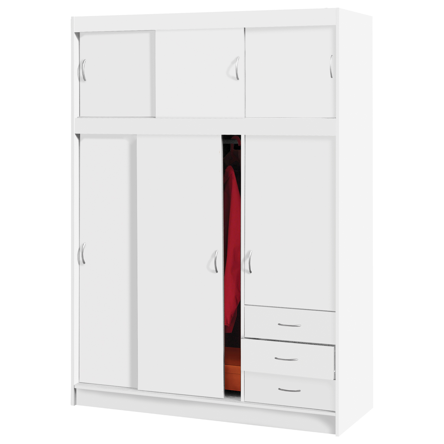 barevné provedení bílá posuvné dveře, cena včetně nástavce, prostor dělený v poměru 2:1 širší část šatní tyč, užší část 2 variabilní police, 3 zásuvky s kovovými pojezdy