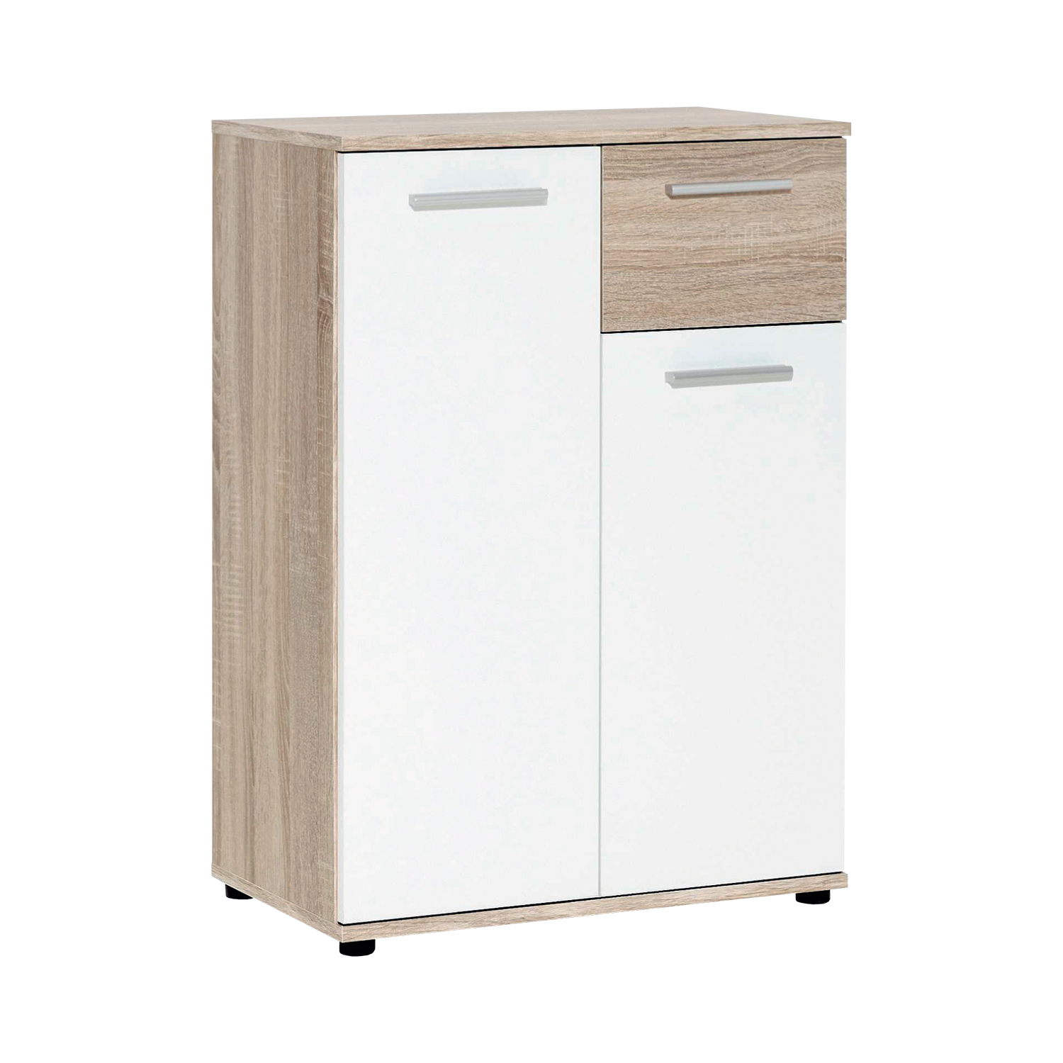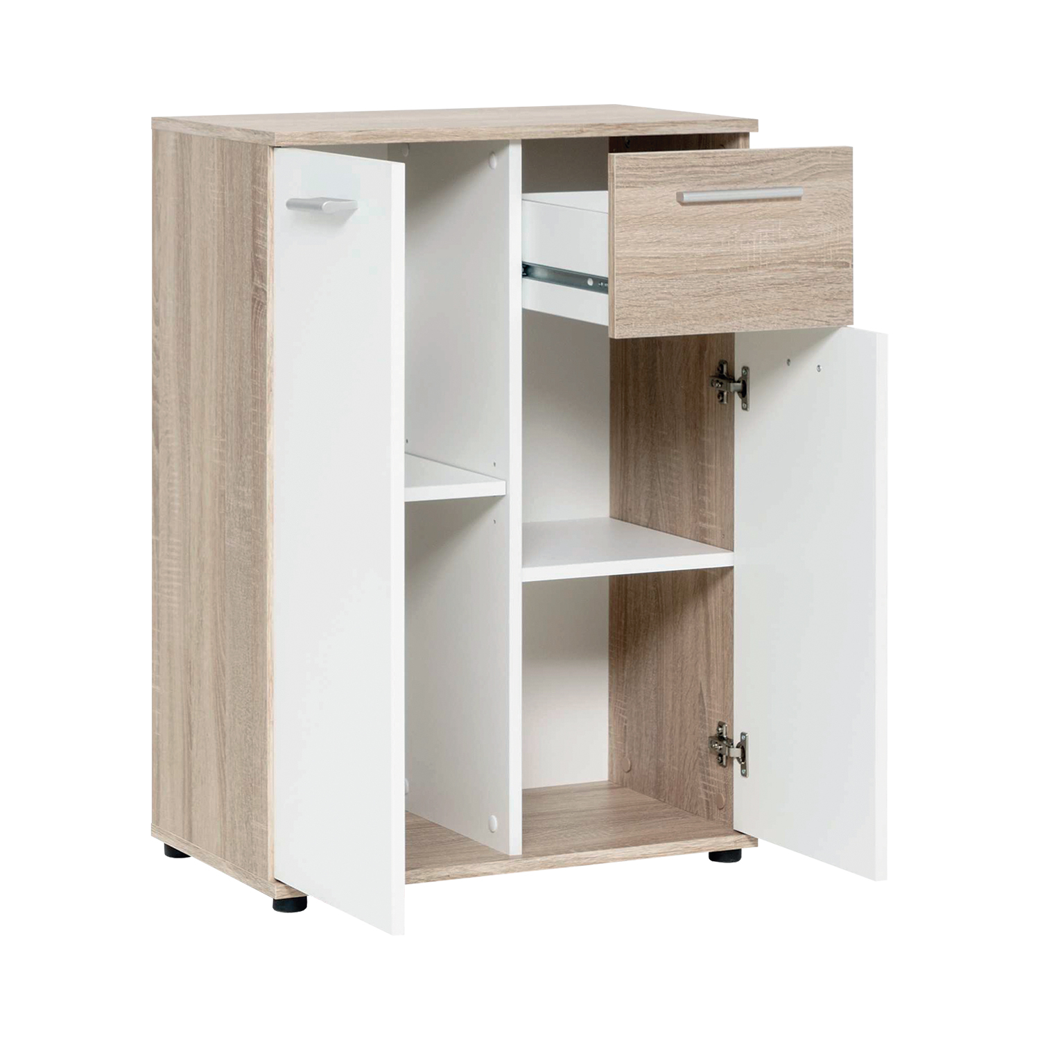 barevné provedení dub Sonoma / bílá 1 zásuvka s kovovými pojezdy malá a velká dvířka, 2 variabilní police