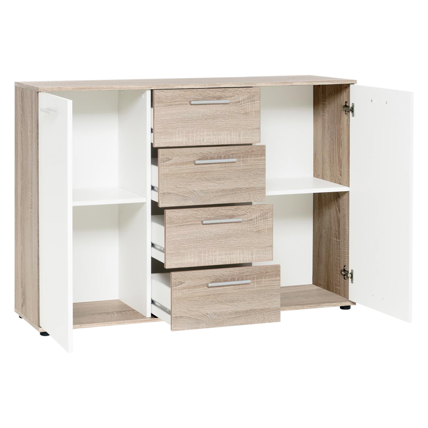 barevné provedení dub Sonoma / bílá 4 zásuvky s kovovými pojezdy 2 dvířka, 2 variabilní police