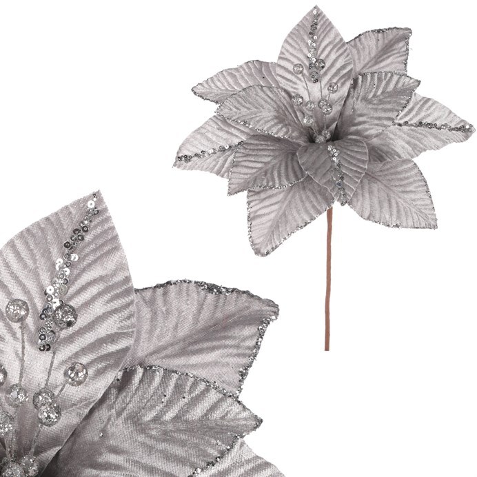 Rádi byste osvěžili vaši vánoční výzdobu novou květinovou dekorací, která vypadá působivě, dlouho vydrží a zároveň je svým barevným pojetím vhodná pro takové období? Elegantním řešením bude právě sametový stříbrný květ vánoční růže se třpytivým zdobením, která obohatí sváteční interiér svým originálním provedením a dekorem. Je skvělé, že tato nádherná umělá rostlina nikdy neuvadne a může přinášet potěšení svým půvabem ve stejné intenzitě každý rok. Nechte ji vyniknout třeba v krásné váze na svátečně prostřeném stole, či jiném viditelném místě, kde bude vynikat a dělat radost vám i vašim návštěvníkům. Naše nabídka zahrnuje mnoho dalších umělých květin v závislosti na druhu a barvě, což umožňuje nepřeberné množství variant pro aranžování, a tudíž je jen na fantazii a vkusu každého z nás jaké si vybere.