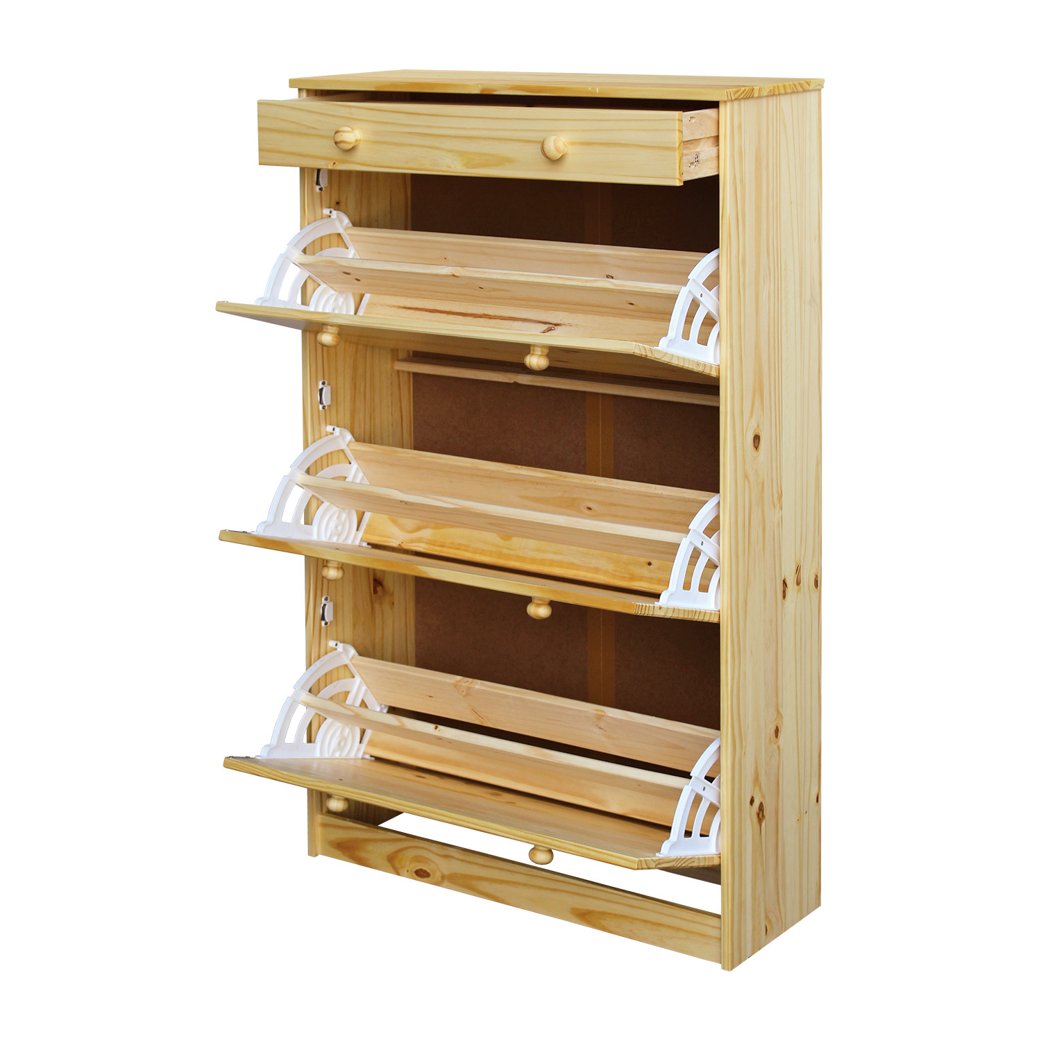 materiál masiv borovice, lakované provedení 1 nízká zásuvka, 3 dvouřadé výklopy