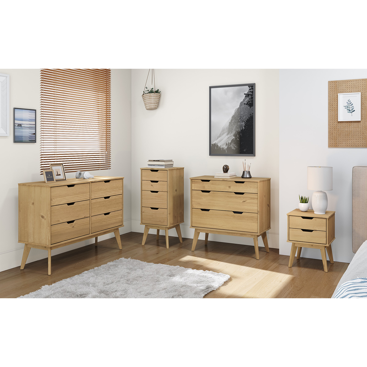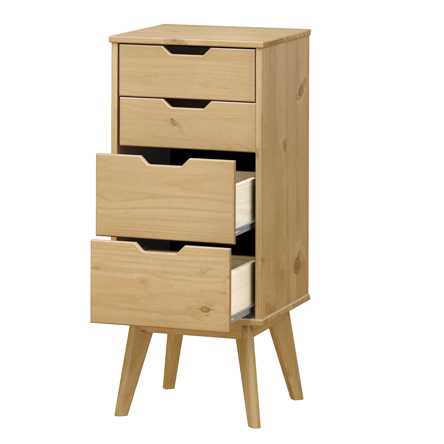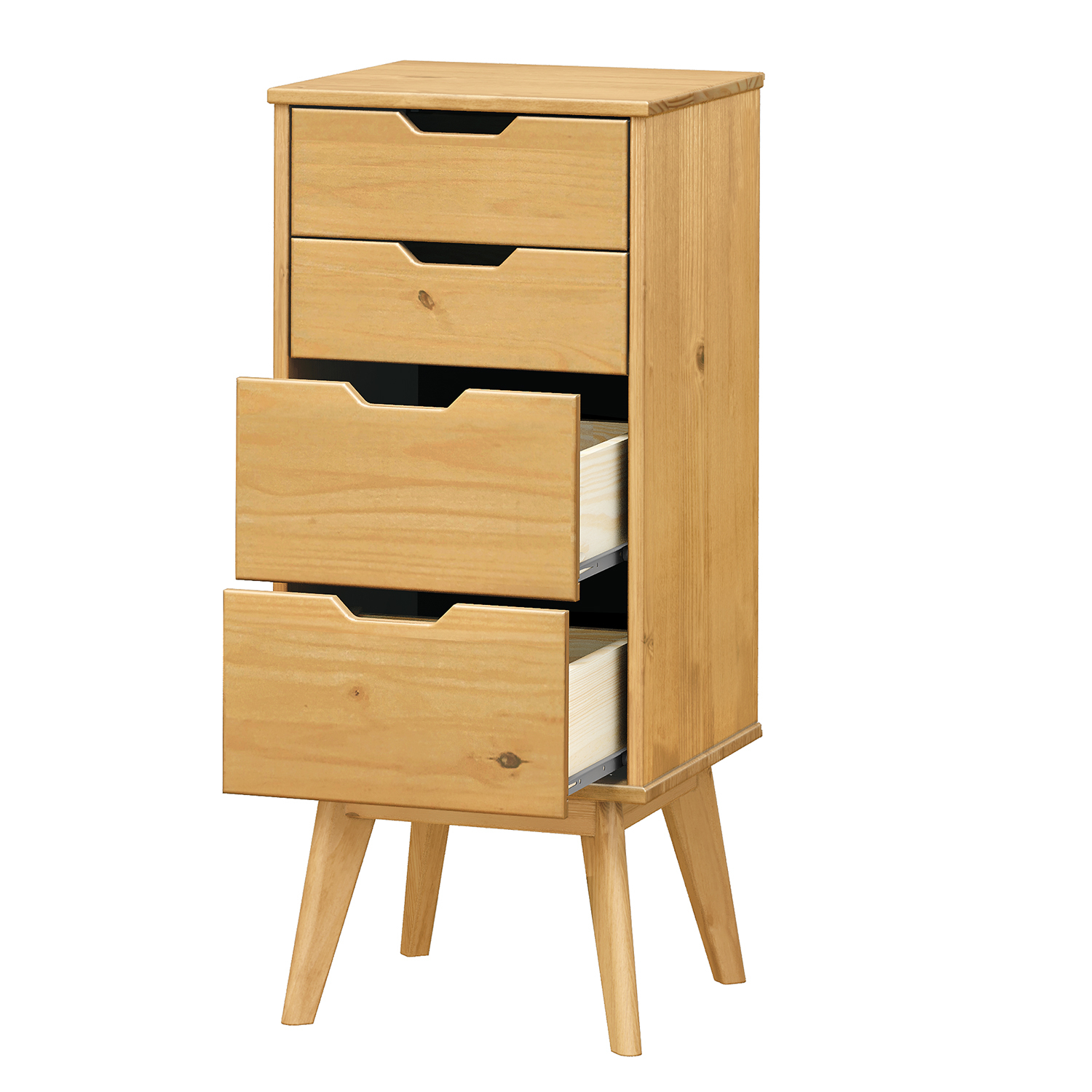 materiál masiv borovice voskovaná v medovém odstínu 2 menší a 2 větší zásuvky s kovovými pojezdy