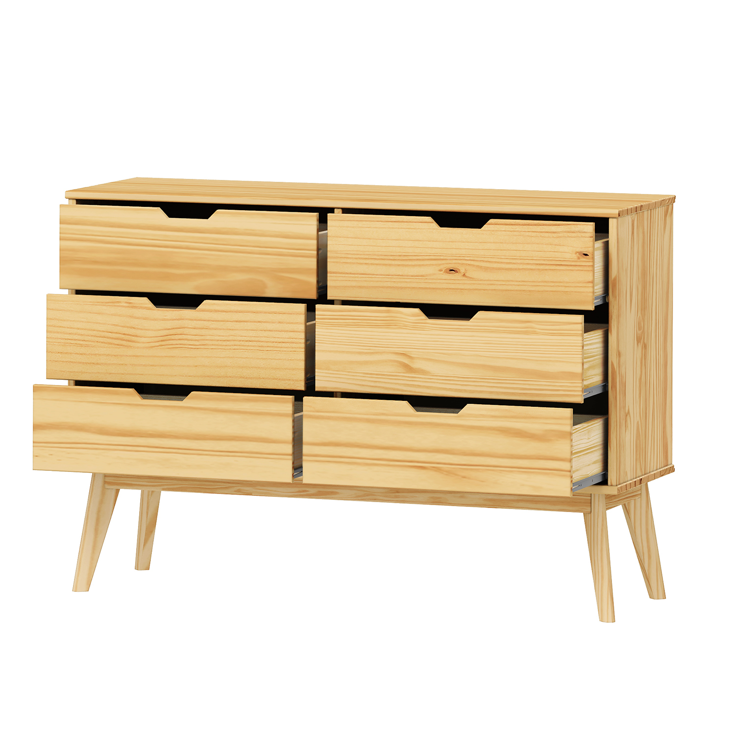 materiál masiv borovice, lakované provedení 6 zásuvek s kovovými pojezdy