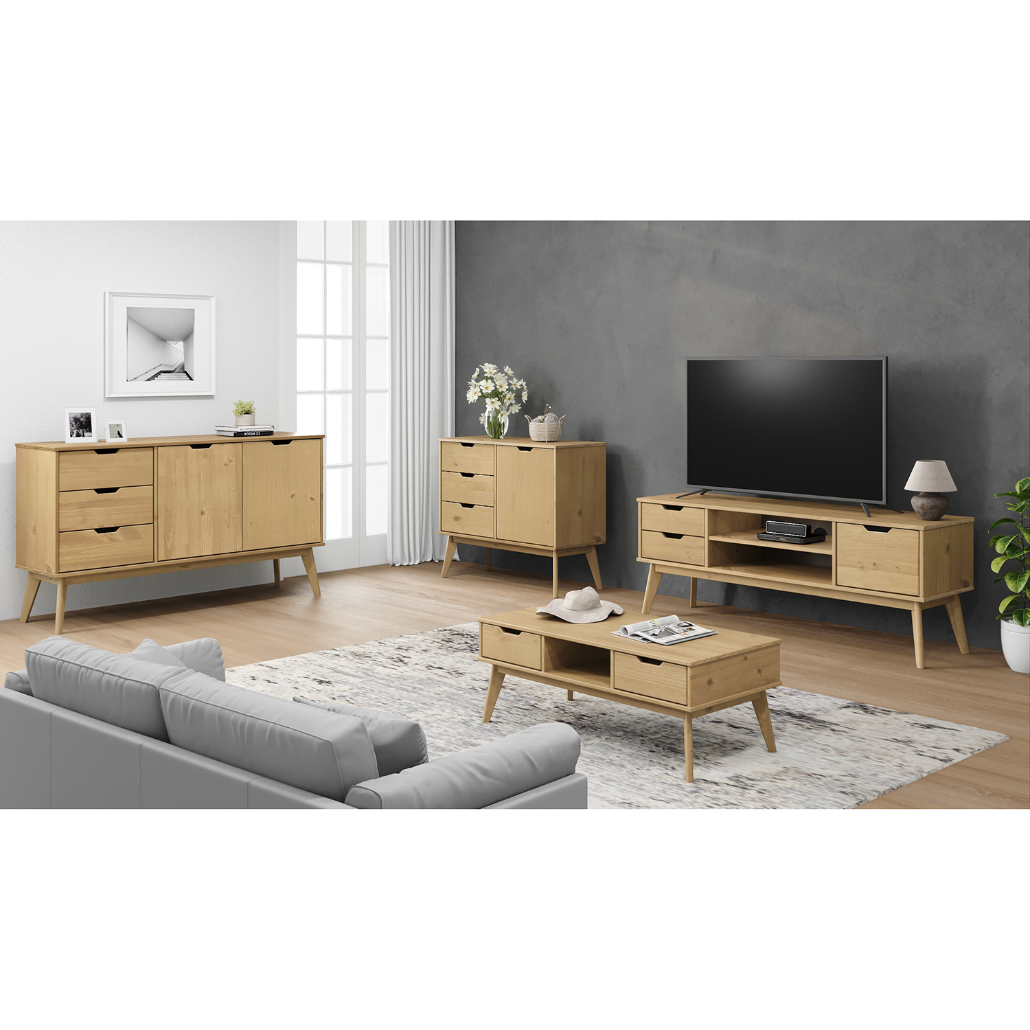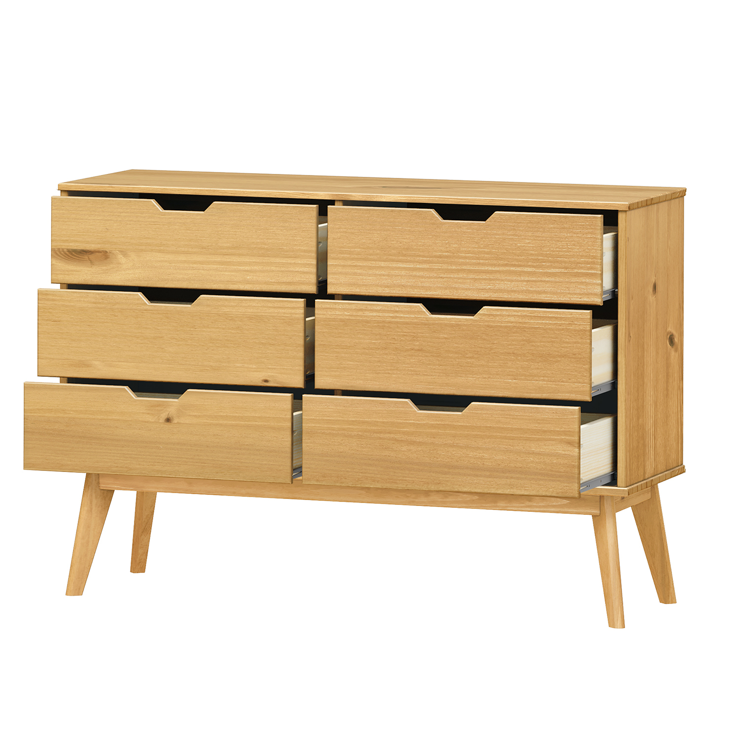 materiál masiv borovice voskovaná v medovém odstínu 6 zásuvek s kovovými pojezdy