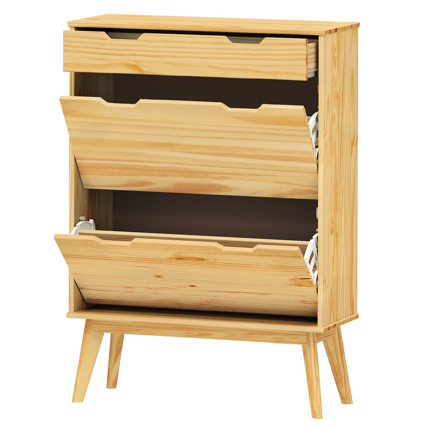 materiál masiv borovice, lakované provedení 1 zásuvka s kovovými pojezdy, 2 dvouřadé výklopy