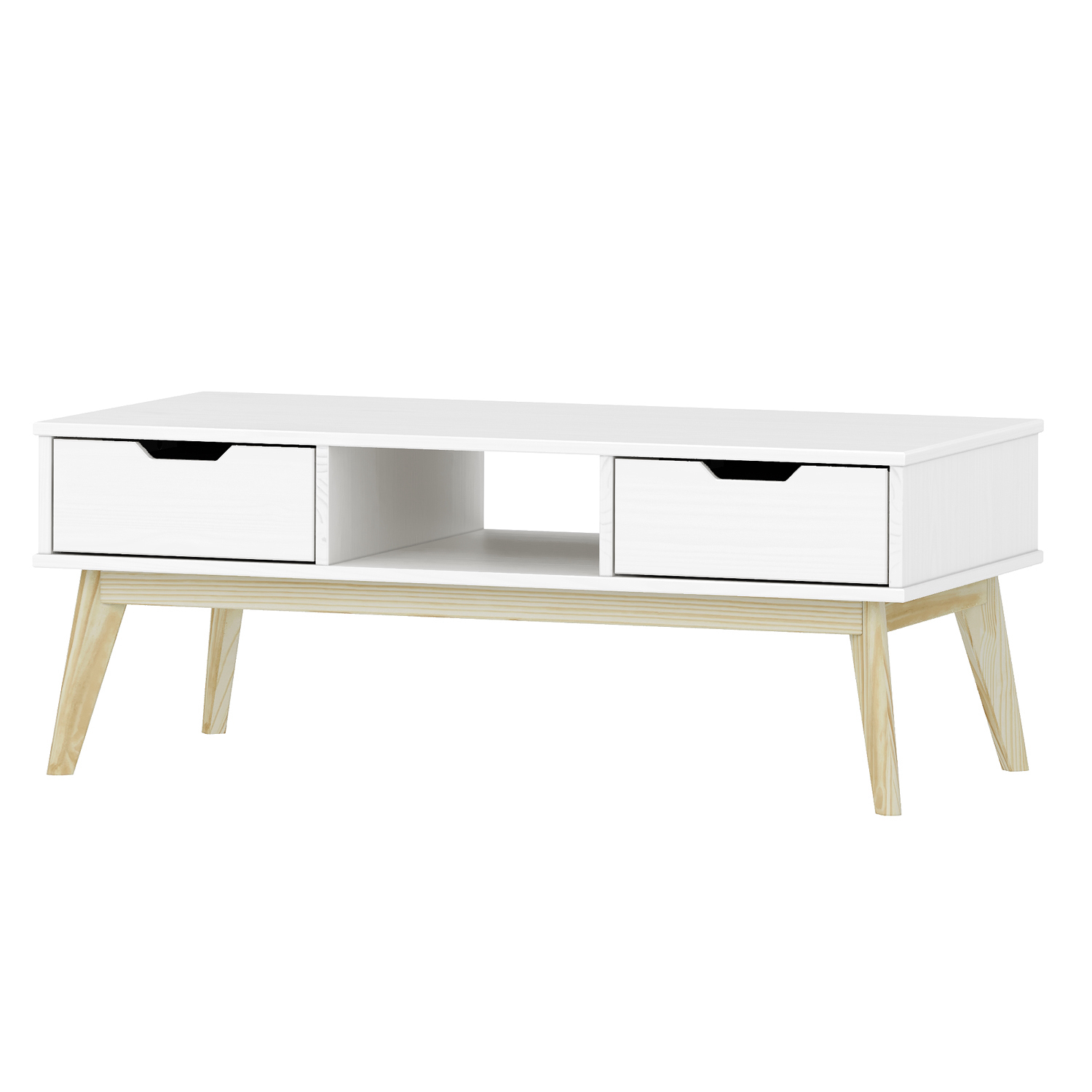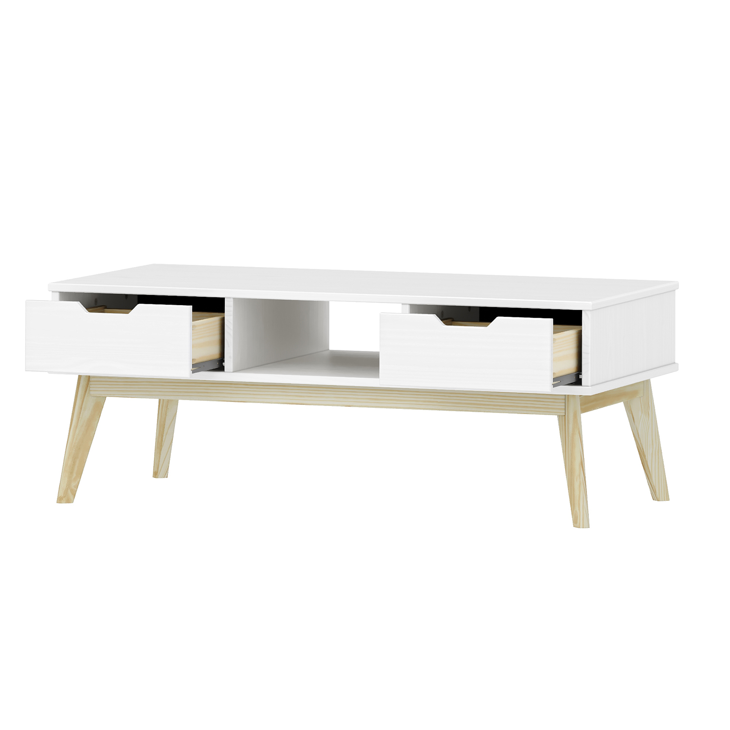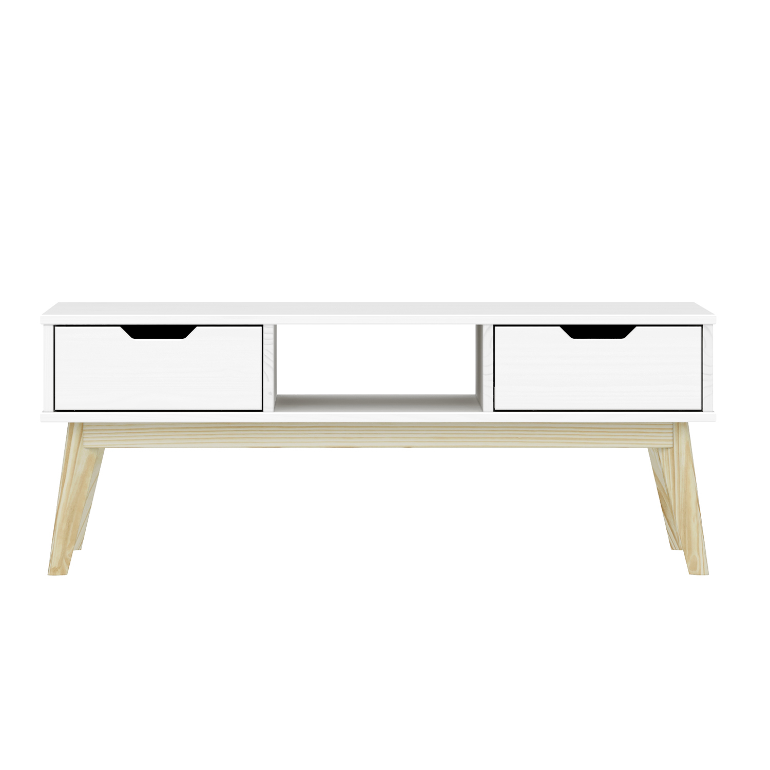 materiál masiv borovice, barevné provedení bílý lak 2 zásuvky s kovovými pojezdy