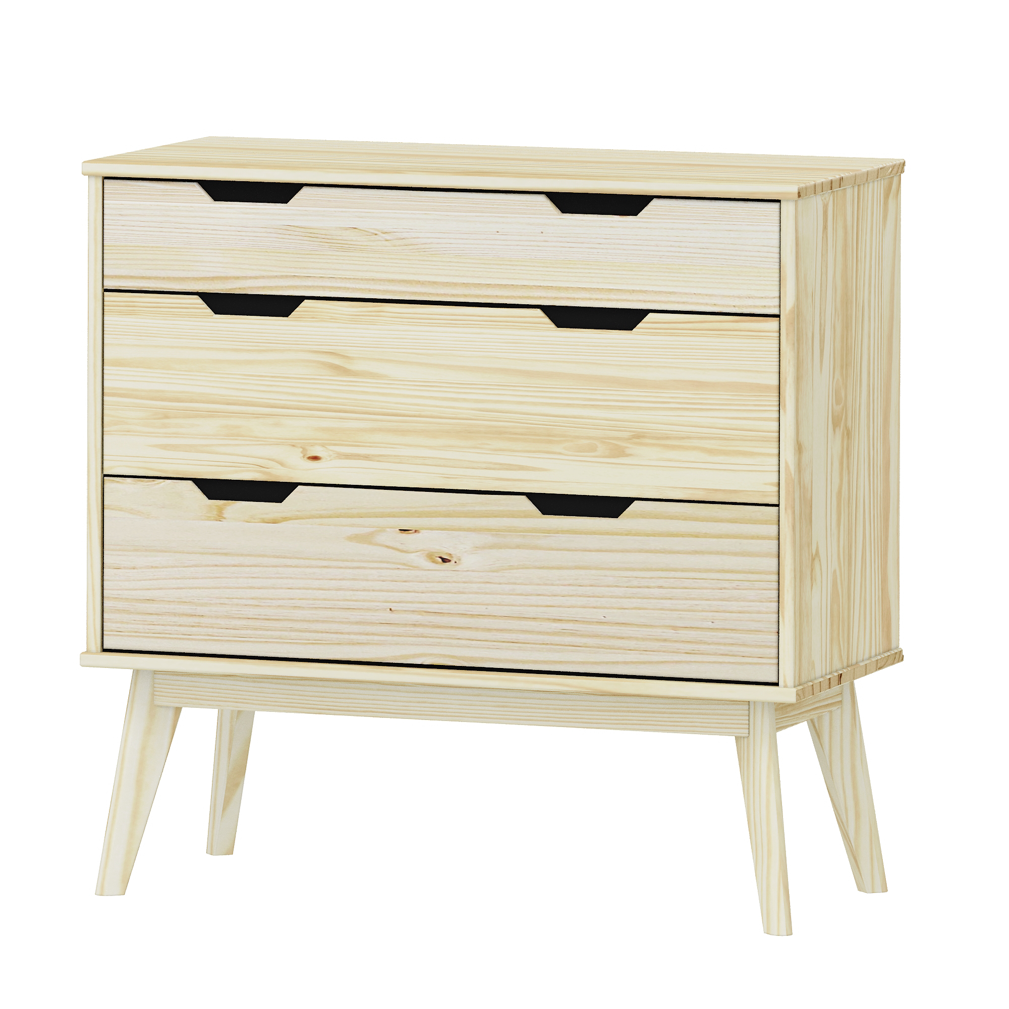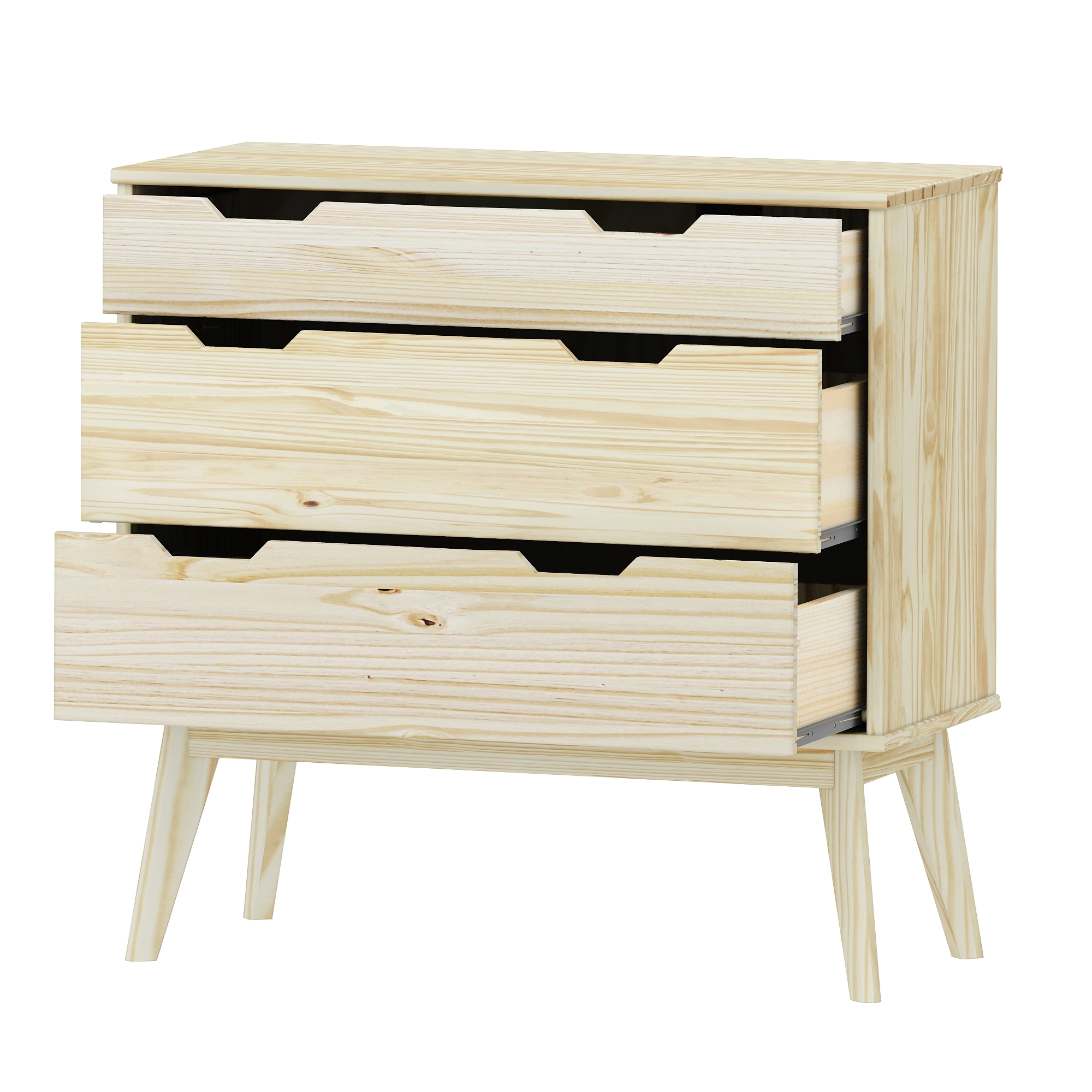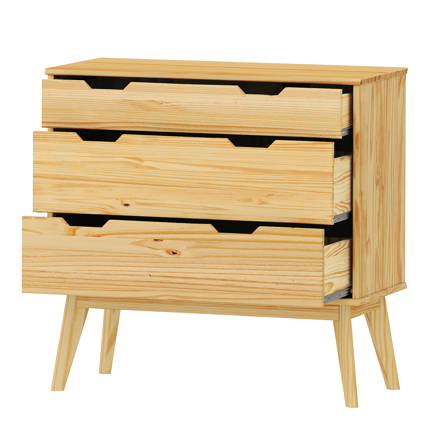 materiál masiv borovice, lakované provedení 1 menší a 2 větší zásuvky s kovovými pojezdy