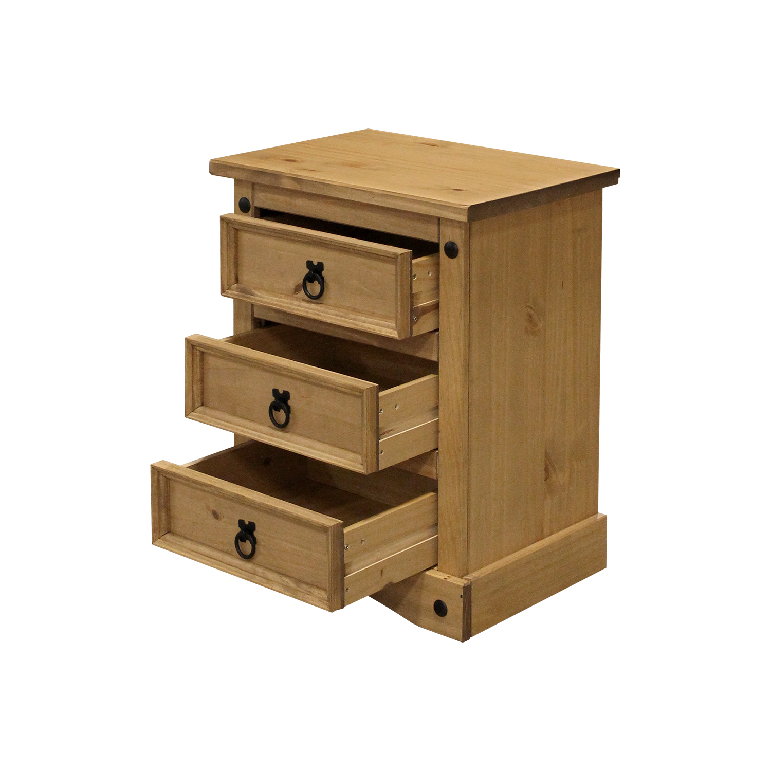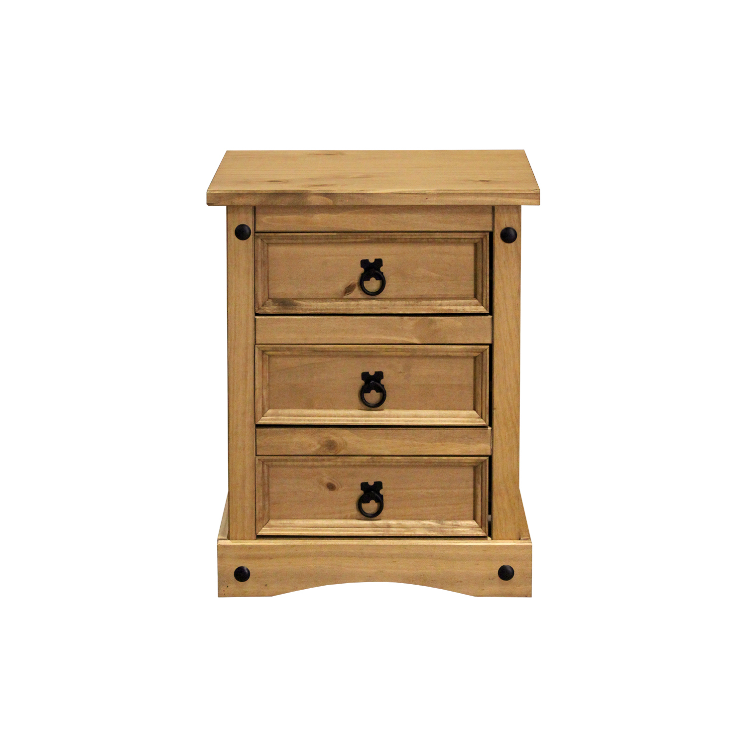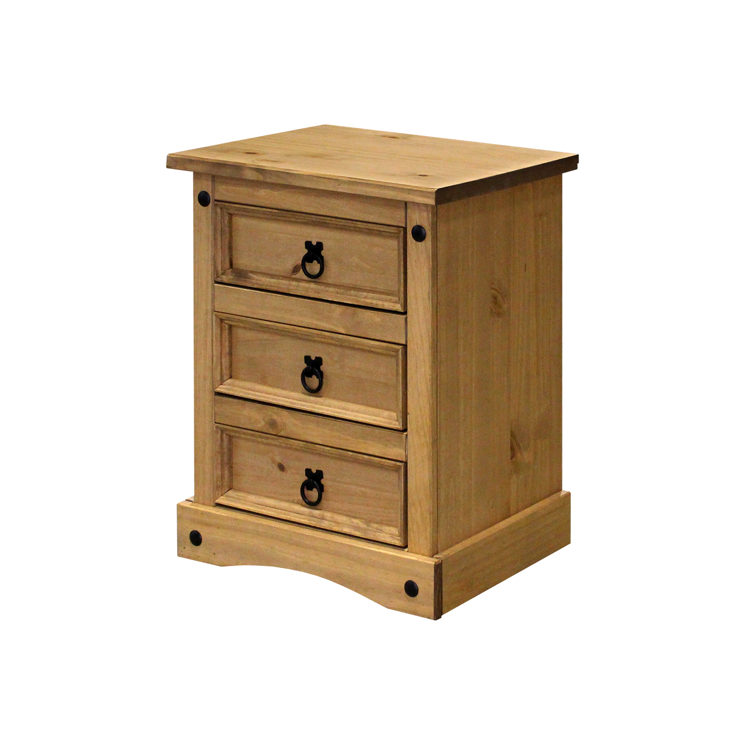 materiál masiv borovice voskovaná v medovém odstínu 3 zásuvky, kovové ozdobné úchytky součást sestavy Corona