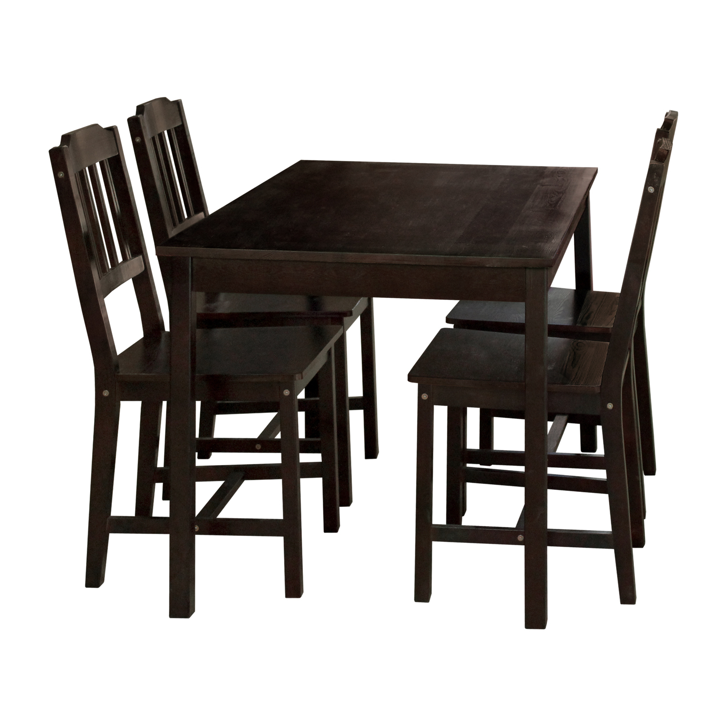 materiál masiv borovice, barevné provedení tmavě hnědý lak sestava obsahuje stůl a 4 židle, výška sedu židle 45 cm rozměr stolu (š/h/v) 118 × 75 × 73 cm rozměr židle (š/h/v) 41 × 42 × 86 cm