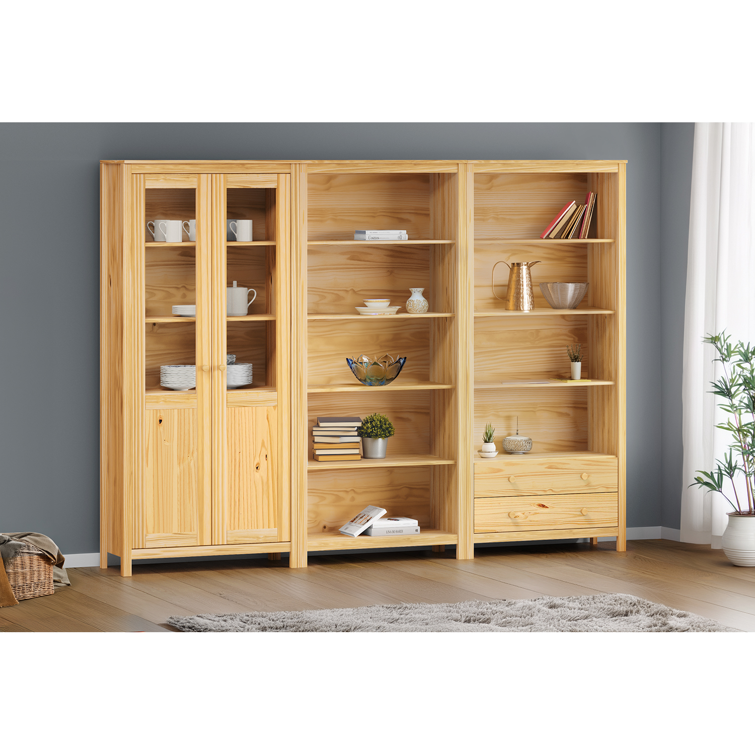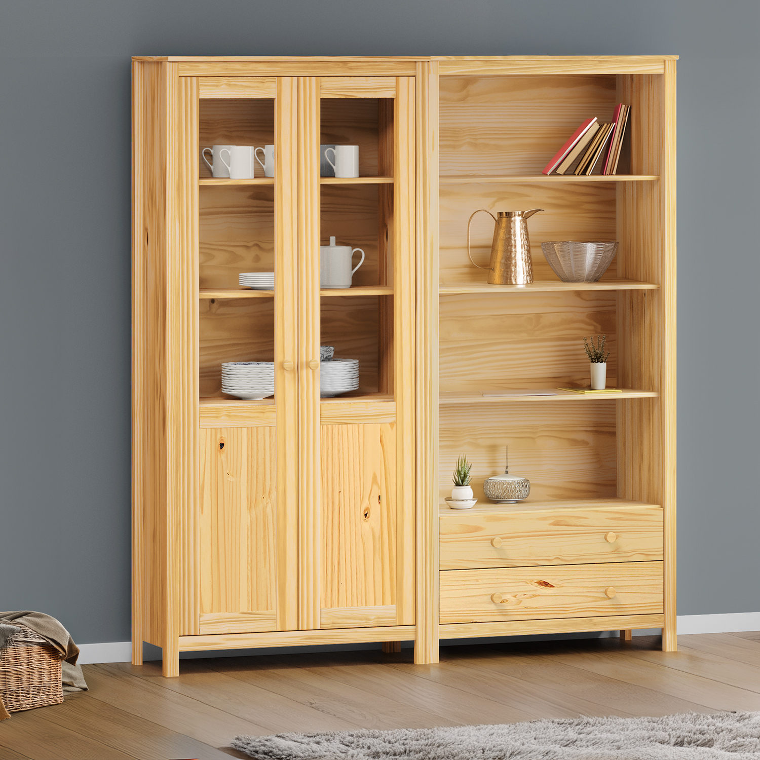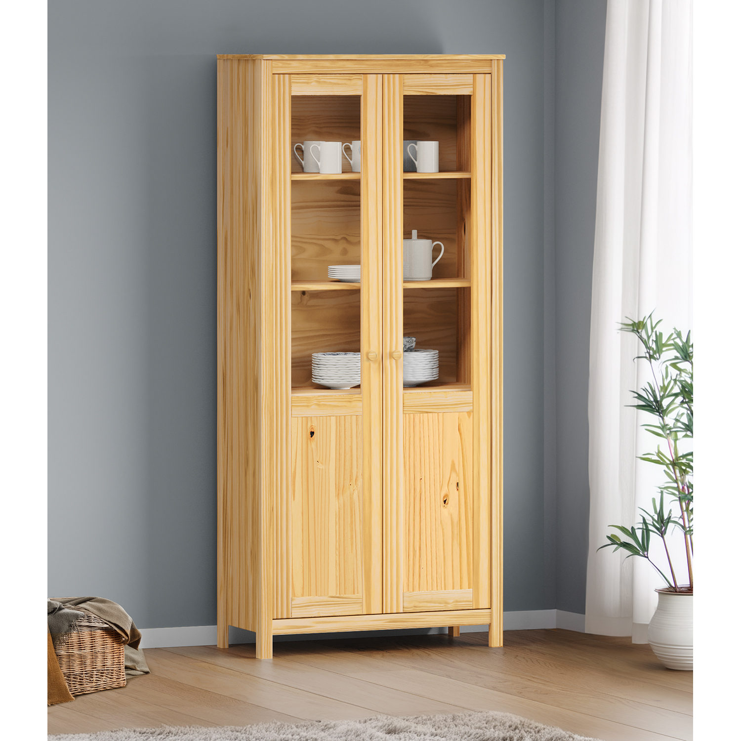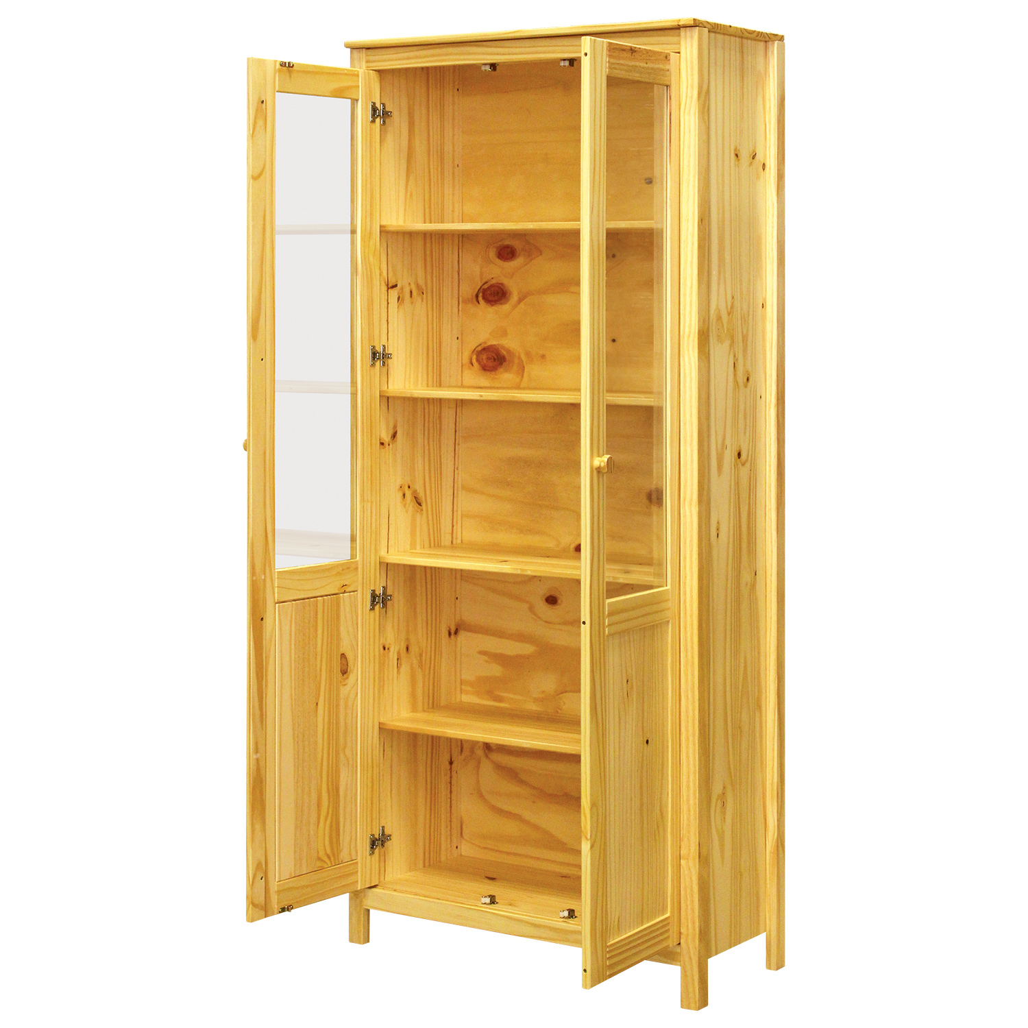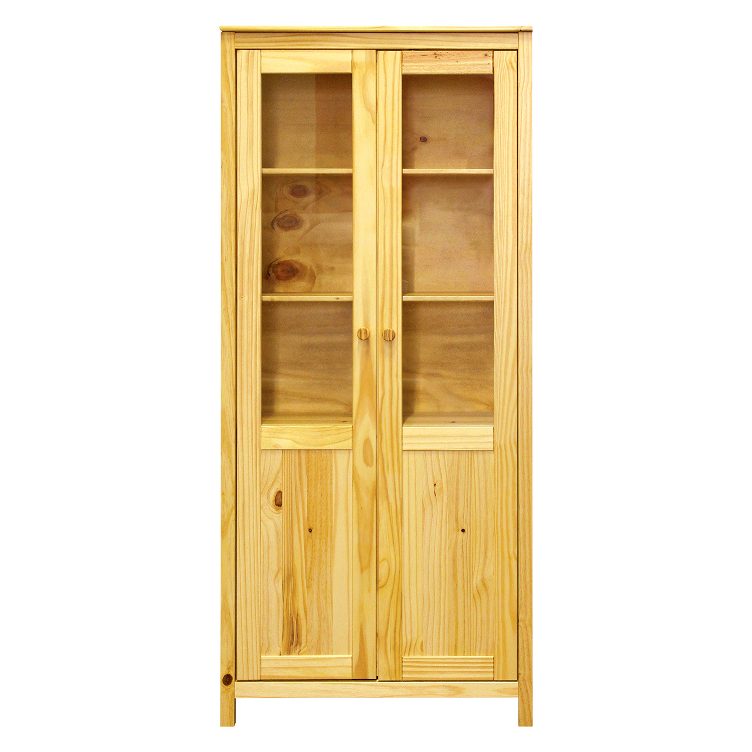 materiál masiv borovice, lakované provedení dvoje částečně prosklené dveře, čtyři police