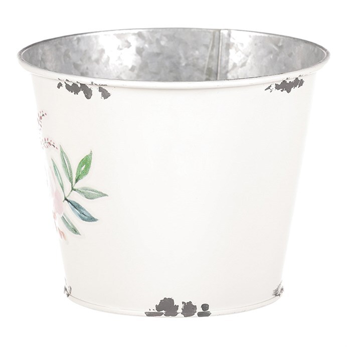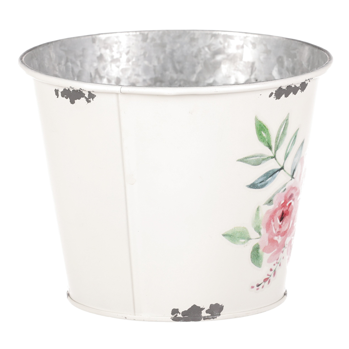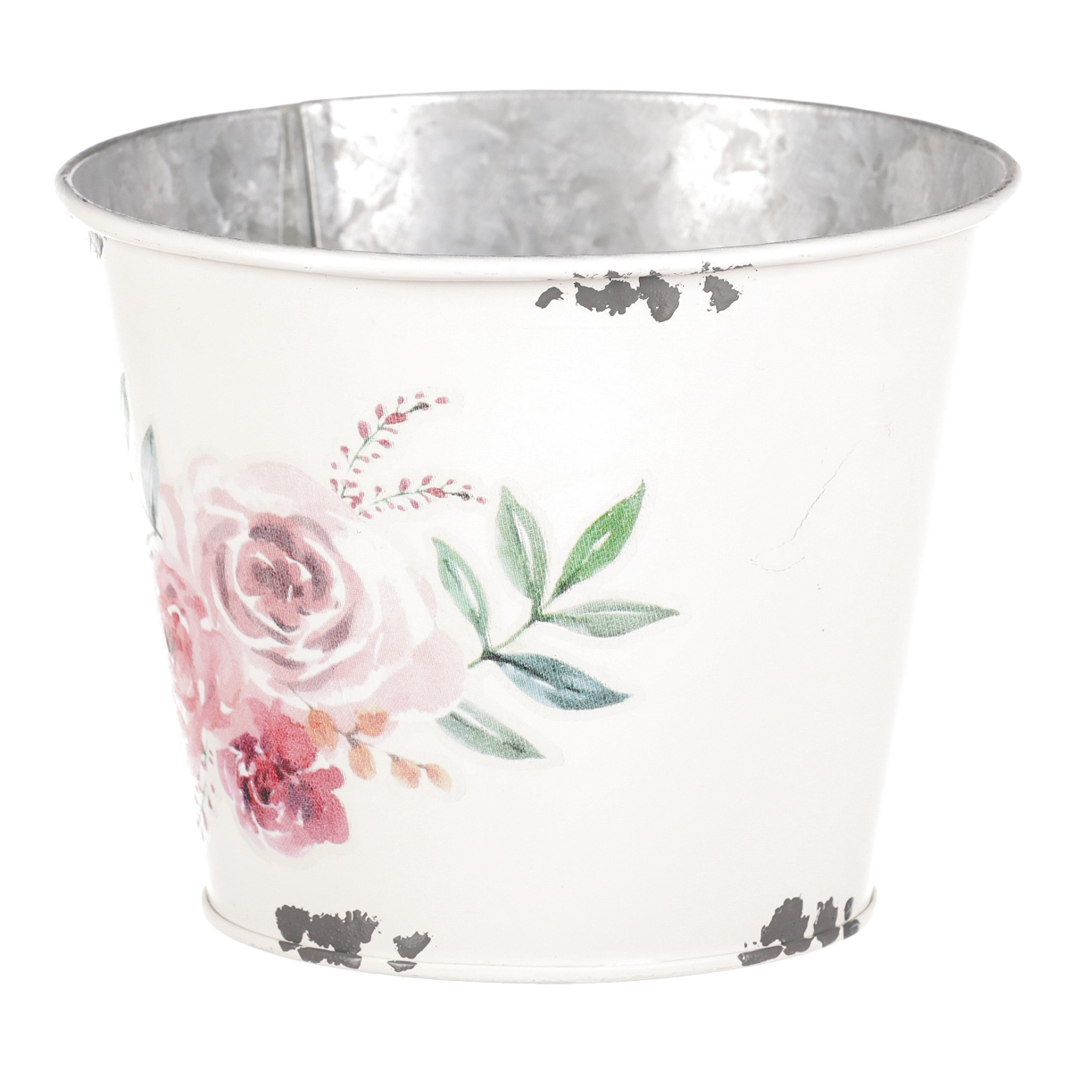Tento krásný kovový obal na květiny bude skvělým a netradičním doplňkem pro výzdobu vašeho oblíbeného prostoru. Svým vzhledem se hodí nejlépe pro jarní nebo letní sezónu, ale v podstatě jej můžete využívat celoročně. Je v bílé barvě a má kruhový tvar. Na boku je barevný obrázek růží a jeho rozměr umožňuje zasazení spíše menších rostlinek nebo sukulentů.