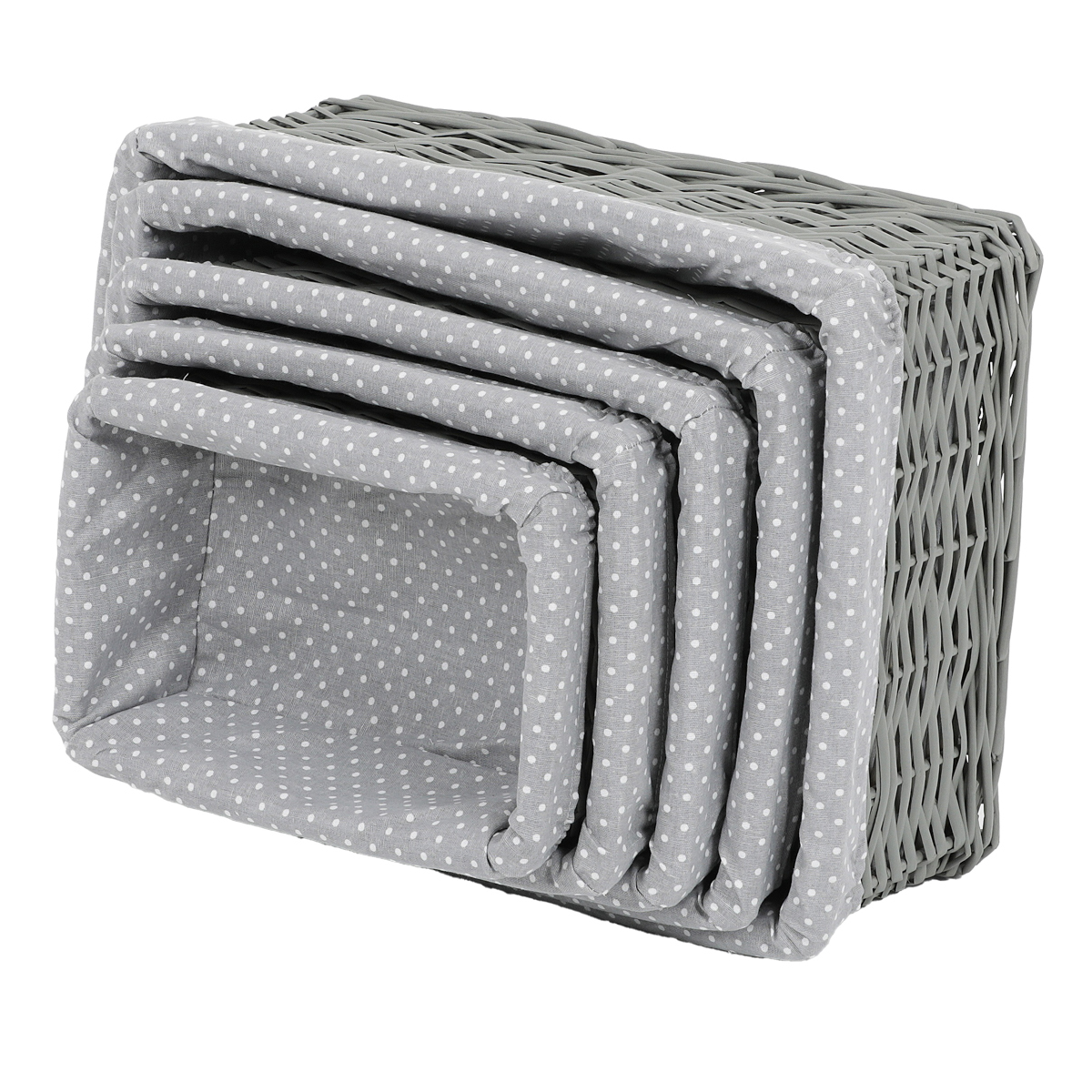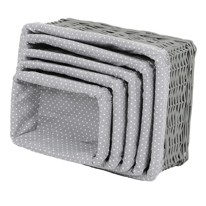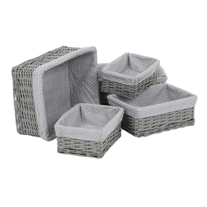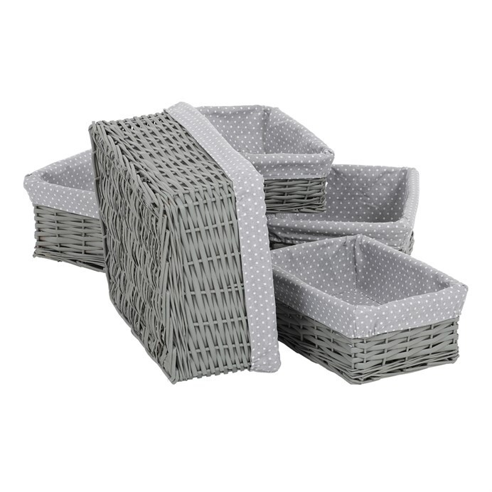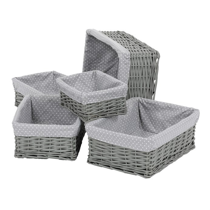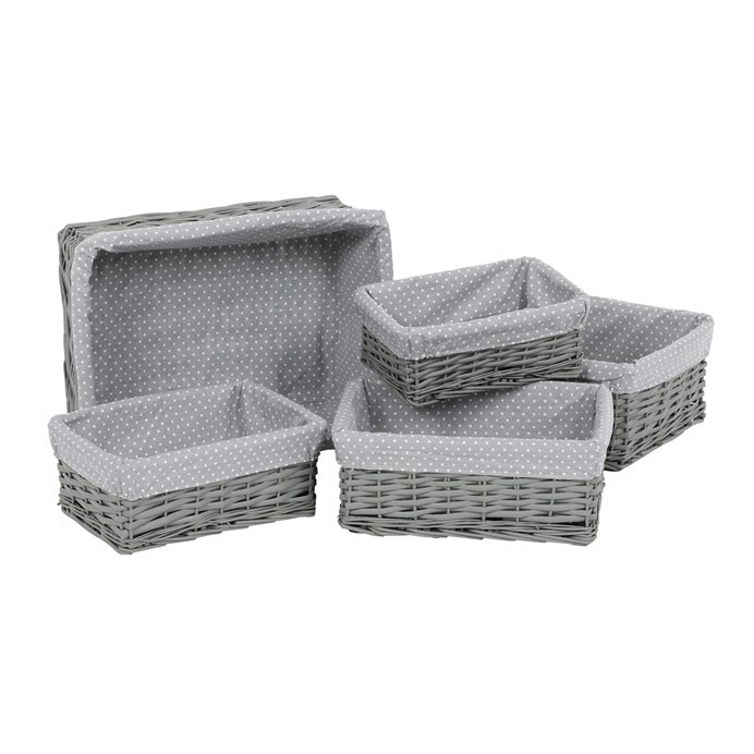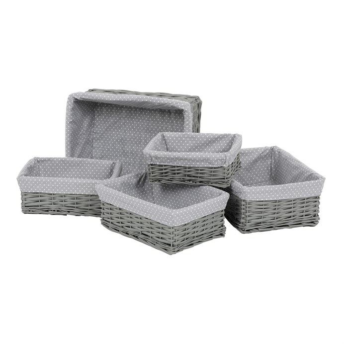 Tento proutěný košík vystlaný látkou je výborným pomocníkem pro milovníky přírodních materiálů, kteří se snaží udržovat pořádek v regálech a na poličkách. Je v neutrální šedé barvě a k dostání v sadě pěti kusů odlišných rozměrů. Díky svému jednoduchému a přirozenému designu se dokonale hodí do různých typů interiérů. Můžete jej využít k uskladnění a uspořádání různých věcí, od knih a hraček po textilie a různé drobnosti konče. Tento košík vám nejen pomůže udržovat nastolený pořádek, ale také přinese do vašeho prostoru příjemný nádech přírodní elegance.