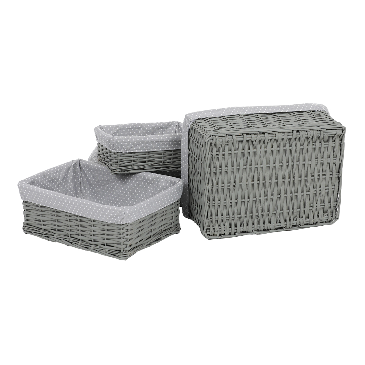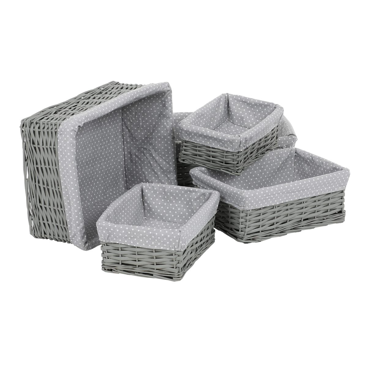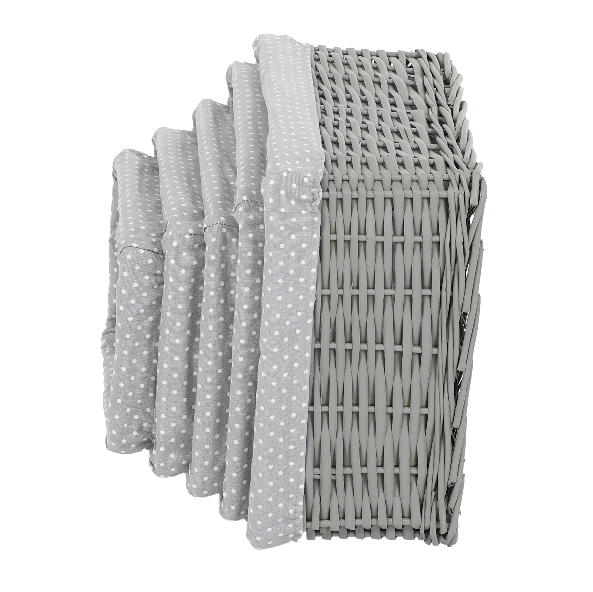 Tento proutěný košík vystlaný látkou je výborným pomocníkem pro milovníky přírodních materiálů, kteří se snaží udržovat pořádek v regálech a na poličkách. Je v neutrální šedé barvě a k dostání v sadě pěti kusů odlišných rozměrů. Díky svému jednoduchému a přirozenému designu se dokonale hodí do různých typů interiérů. Můžete jej využít k uskladnění a uspořádání různých věcí, od knih a hraček po textilie a různé drobnosti konče. Tento košík vám nejen pomůže udržovat nastolený pořádek, ale také přinese do vašeho prostoru příjemný nádech přírodní elegance.