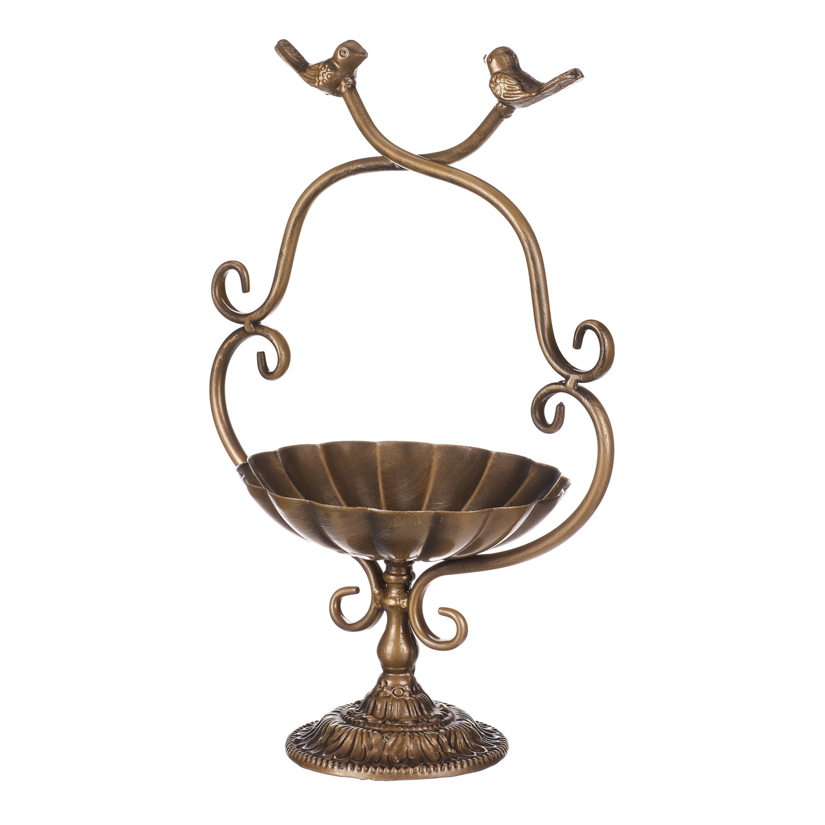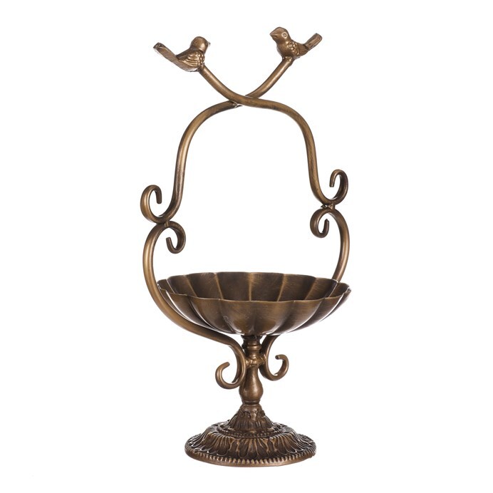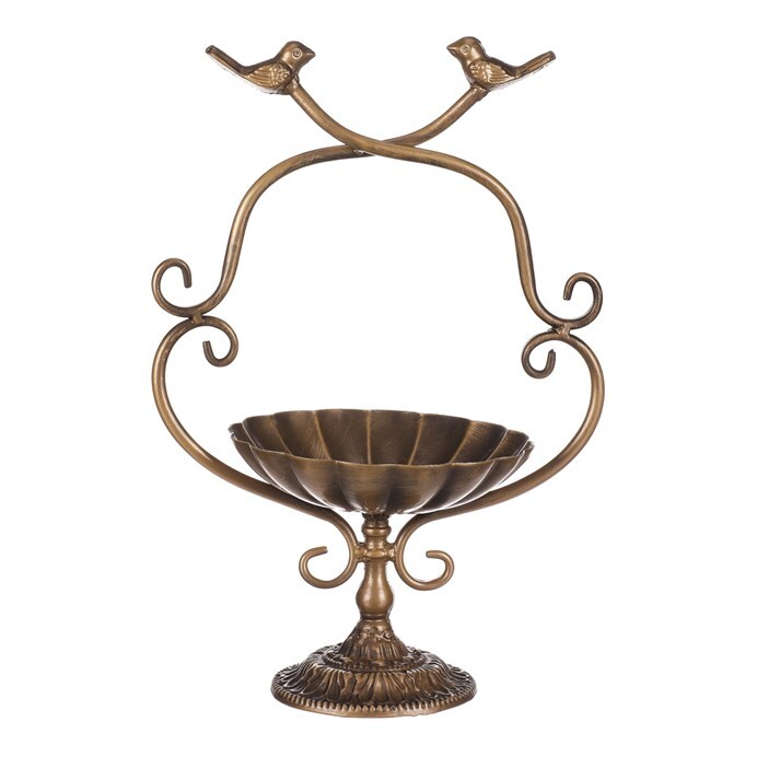 Udělejte radost ptačím návštěvníkům vaší zahrady a obohaťte tento prostor o zdobené kovové krmítko na stojanu v měděné barvě. Je svým provedením uzpůsobeno na postavení, přičemž na vrcholu je miska, nad kterou jsou siluety dvou pěvců. Pořízením této dekorace získáte působivou ozdobu a zároveň přilákáte spoustu ptáčků, kteří by k vám jinak nezavítali. Budou se totiž mít kam vracet a vy budete mít radost z toho, jak vaše zahrádka a okolí domu bují životem a barvami. Důležité už jen bude vybrat to správné místo, kde tato dekorace vynikne sama o sobě, a ideálně na které budete dobře vidět.