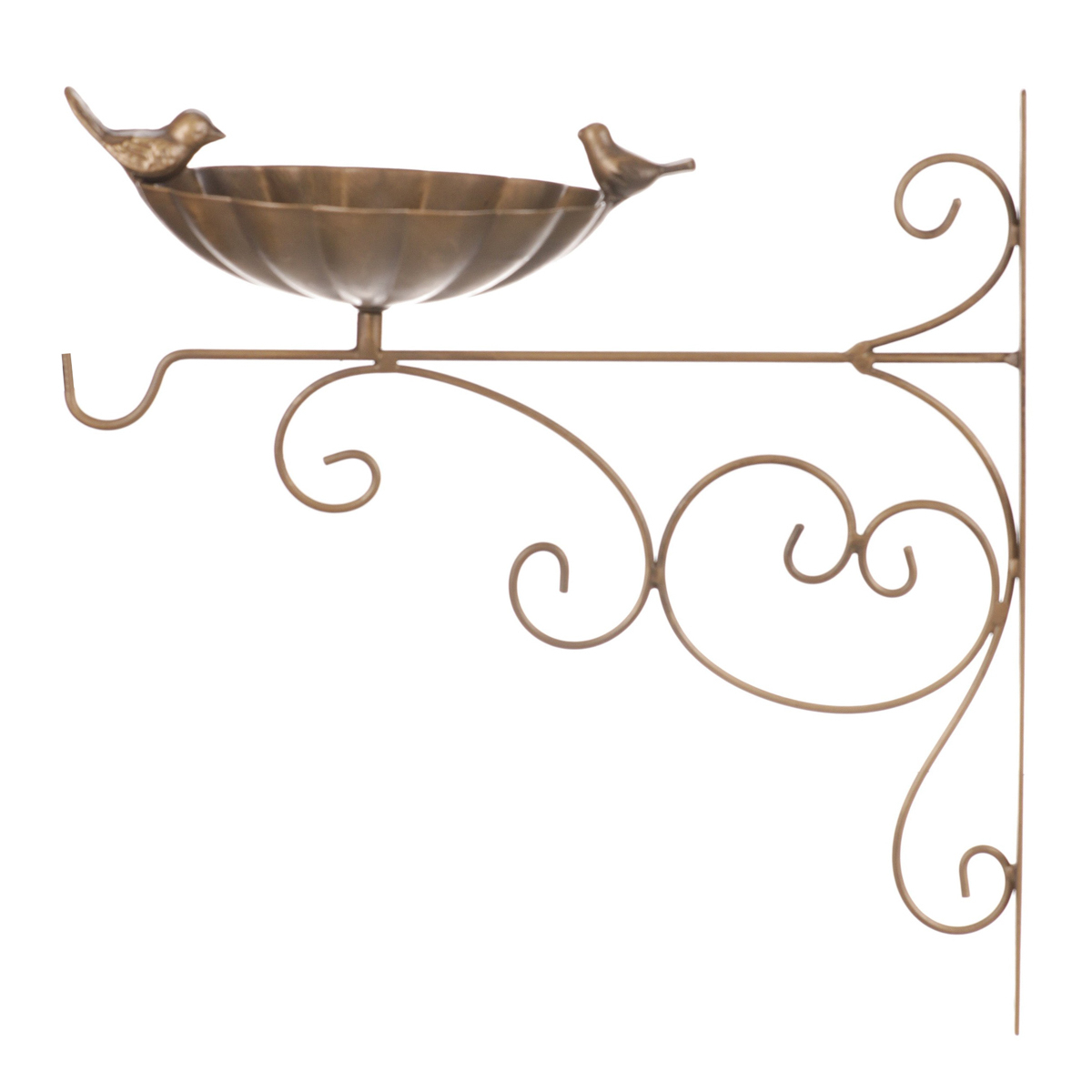 Potěšte sami sebe i své ptačí návštěvníky pořízením závěsného krmítka z kovu v měděné barvě. Díky ozdobné konstrukci jej snadno připevníte z boku na stěnu. Samotné krmítko je ve tvaru misky připomínající ozdobný list. Na jeho okraji jsou siluety dvou drobných pěvců. Jedná se o unikátní ozdobný prvek pro zahradu, terasu nebo jiné vhodné místo s praktickým využitím. Miskou plnou dobrot přilákáte k sobě spoustu ptáčků, kteří by k vám jinak nezavítali, a tím skvěle oživíte prostor okolo domu. Krmítko k bočnímu připevnění poskytuje i velkou míru bezpečí pro vaše opeřené strávníky, neboť na ně ze země jen tak něco nezaútočí.