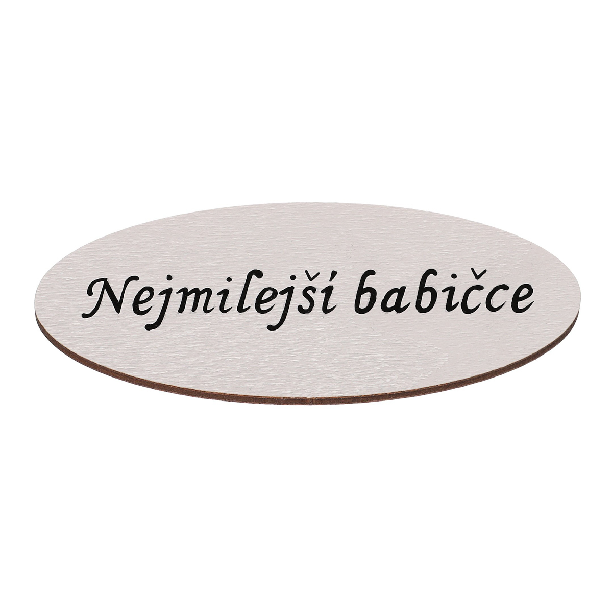 Chystáte se udělat své babičce radost hezkým dárkem a rádi máte věci promyšlené do nejmenších detailů? V tom případě by i tyto drobné cedulky s nápisy neměly chybět ve vaší sbírce dekorací. Právě tato oválná dřevěná bílá cedulka s černým nápisem „Nejmilejší babičce“ bude milým důkazem, že ji máte rádi.