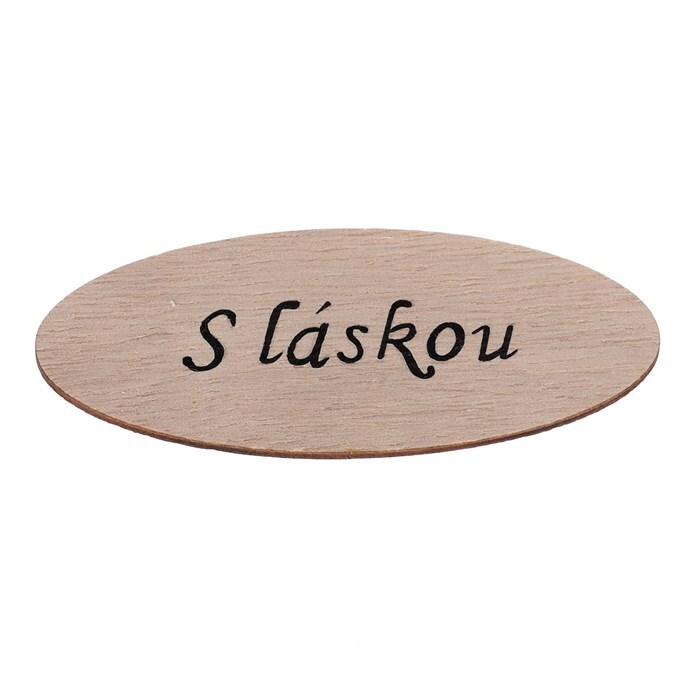 Chystáte se udělat radost své milované osobě hezkým dárkem a rádi máte věci promyšlené do nejmenších detailů? V tom případě by i drobné cedulky s nápisy a věnováním neměly chybět ve vaší sbírce dekorací. Právě tato oválná dřevěná cedulka se zdobným nápisem „S láskou“ bude milým důkazem vašich citů k dané osobě.