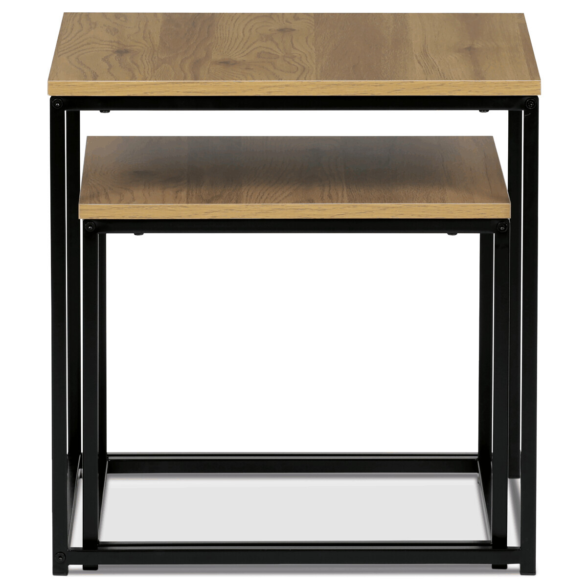 Sada 2 odkládacích stolků Autronic je mnohem víc než pouhé odkládací stolky - ztělesňuje harmonii praktičnosti, stylu a sofistikovanosti. Tyto stolky s dekorem divokého dubu, který zdobí jejich robustní povrch z materiálu MDF, poskytují vynikající kombinaci estetického potěšení a funkčnosti pro každé prostředí. Deska stolku dokresluje přírodní vibrace dekoru divokého dubu a dodá vašemu pokoji nebo kanceláři klidnou atmosféru. Inspirace designu Autronic vychází z motivů industriálního stylu. Stoly se pyšní černými kovovými nohami kruhového tvaru, které nejen zajišťují stabilitu, ale také přispívají k odvážnému a průkopnickému vizuálnímu dojmu ze soupravy. Deska čtvercového tvaru poskytuje velkorysý úložný prostor a zároveň vyzařuje moderní a špičkový vzhled. Investice do kusů nábytku Autronic je zárukou bezkonkurenční kvality a dlouhé životnosti. Ať už zařizujete firemní prostory, nebo zvelebujete svůj domov, tyto univerzální kousky od společnosti Autronic zaručeně skvěle uspokojí vaše potřeby.