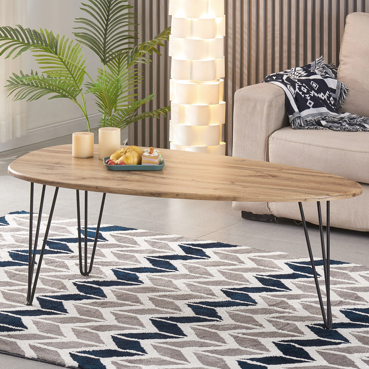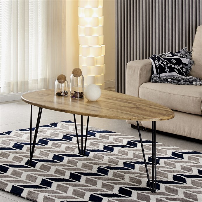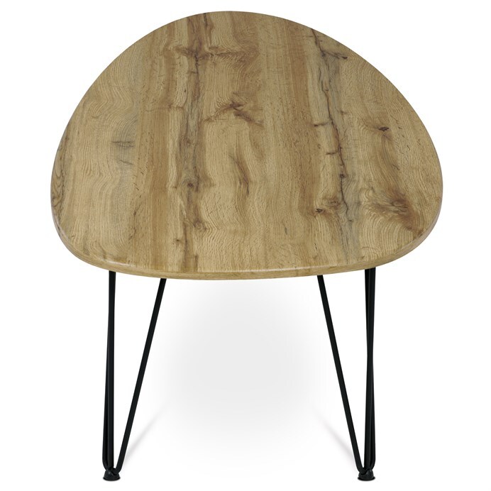 Vyzkoušejte podstatu třídy a stylu s naším industriálním konferenčním stolkem Autronic. Tento konferenční stolek prosycený moderní sofistikovaností v sobě snoubí sytě hnědý dekor divokého dubu z materiálu MDF s moderní siluetou atypického tvaru horní desky a podnože na třech nohách. Dynamická architektonická podnož je vyrobena z černého, vysoce kvalitního kovu, který dokonale doplňuje odstín naší horní desky v barvě divokého dubu.